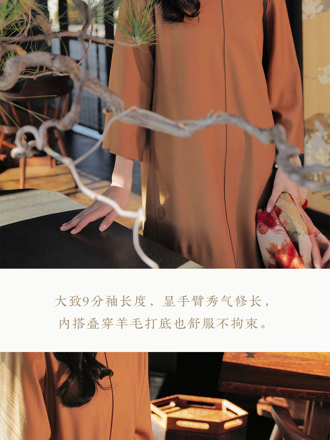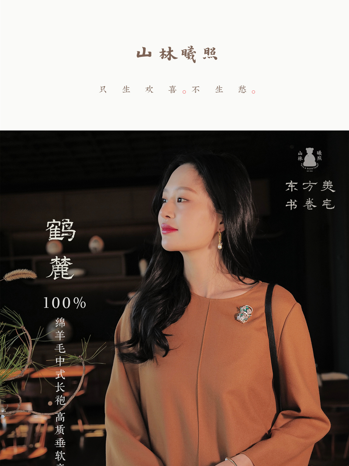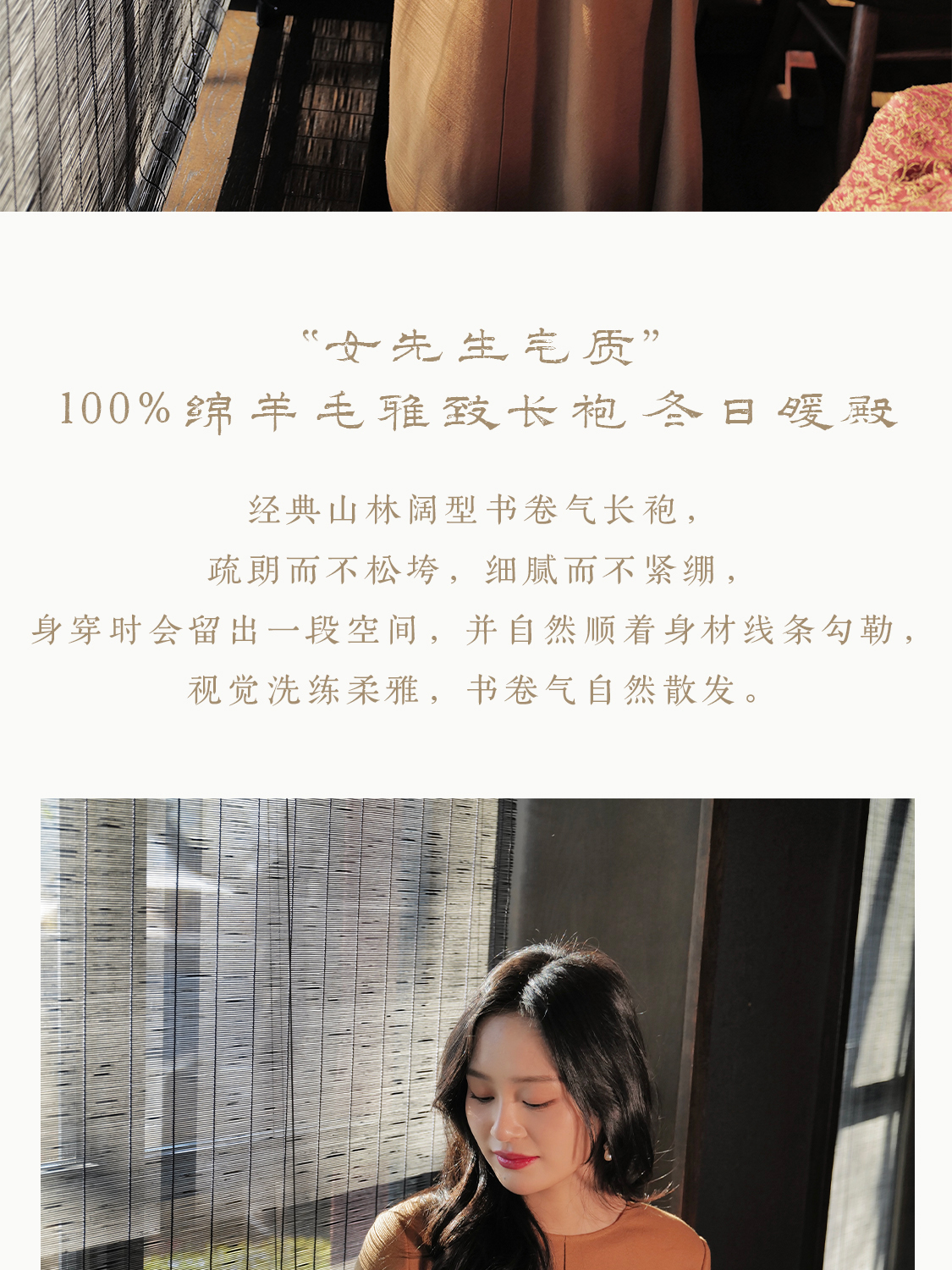 鹤麓 100%绵羊毛中式长袍 高质垂软亲肤 山林曦照