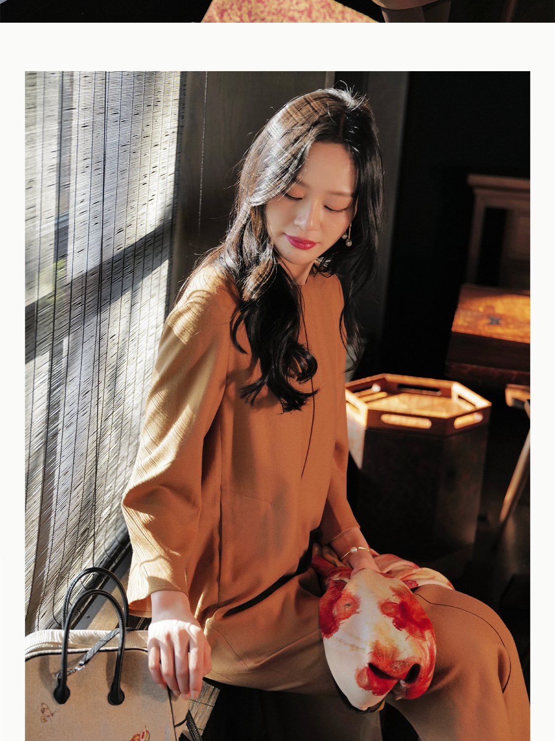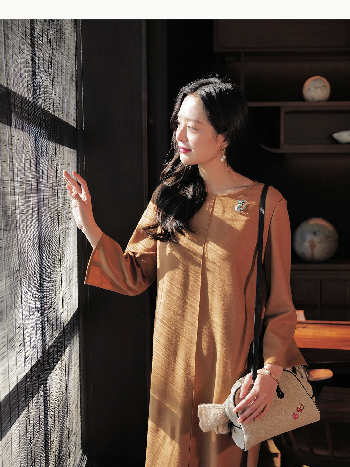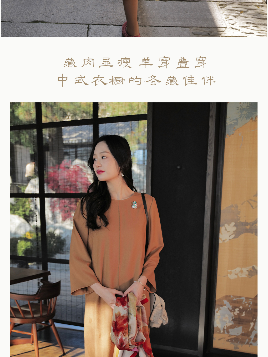 鹤麓 100%绵羊毛中式长袍 高质垂软亲肤 山林曦照