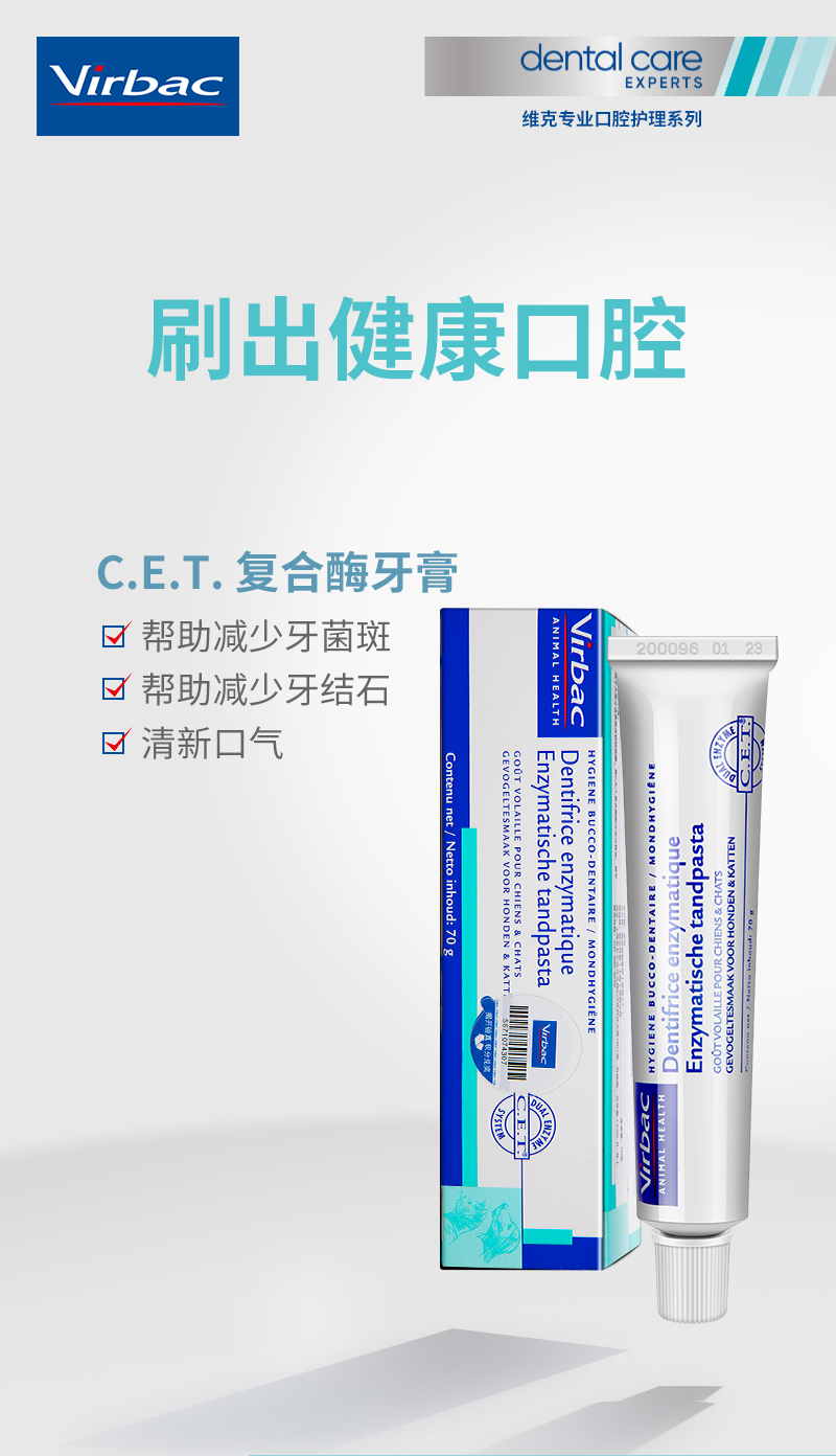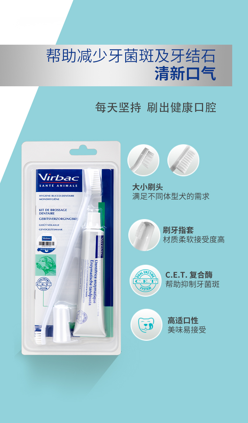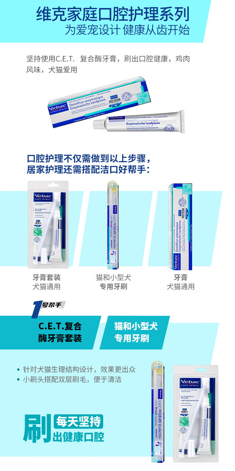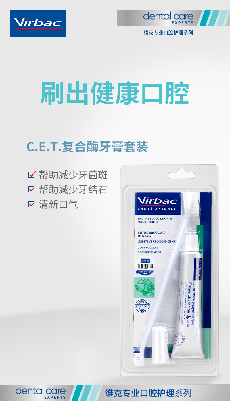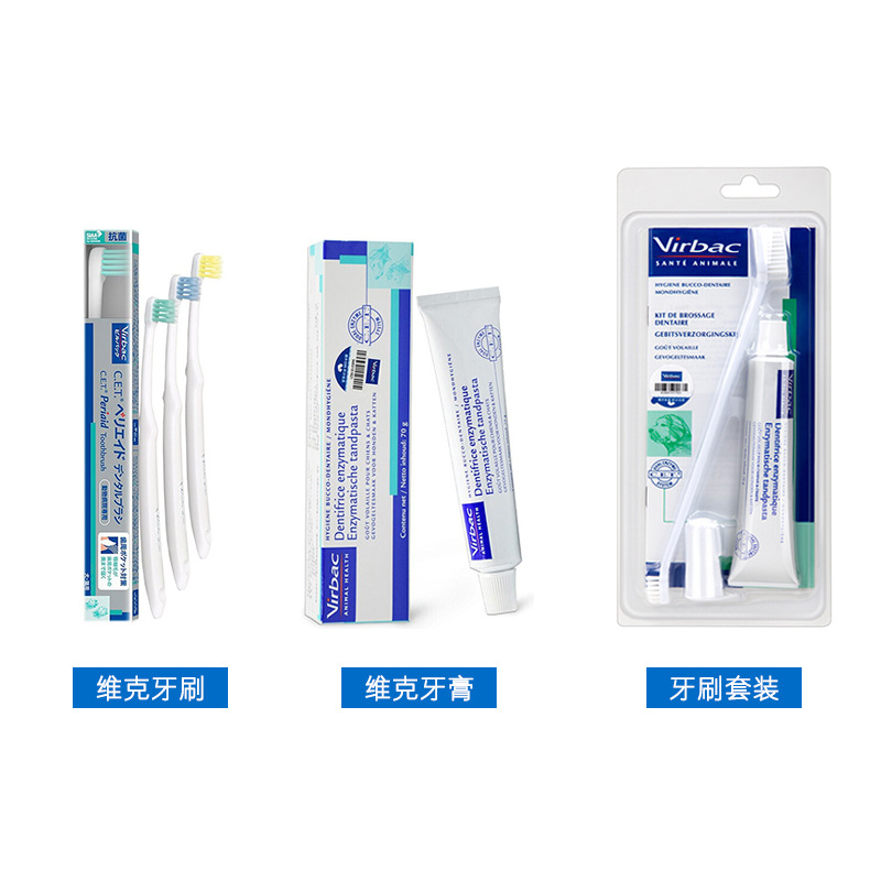 【官方防伪】维克CET犬猫牙膏牙膏套装 单牙刷 免洗鸡肉味牙膏70g