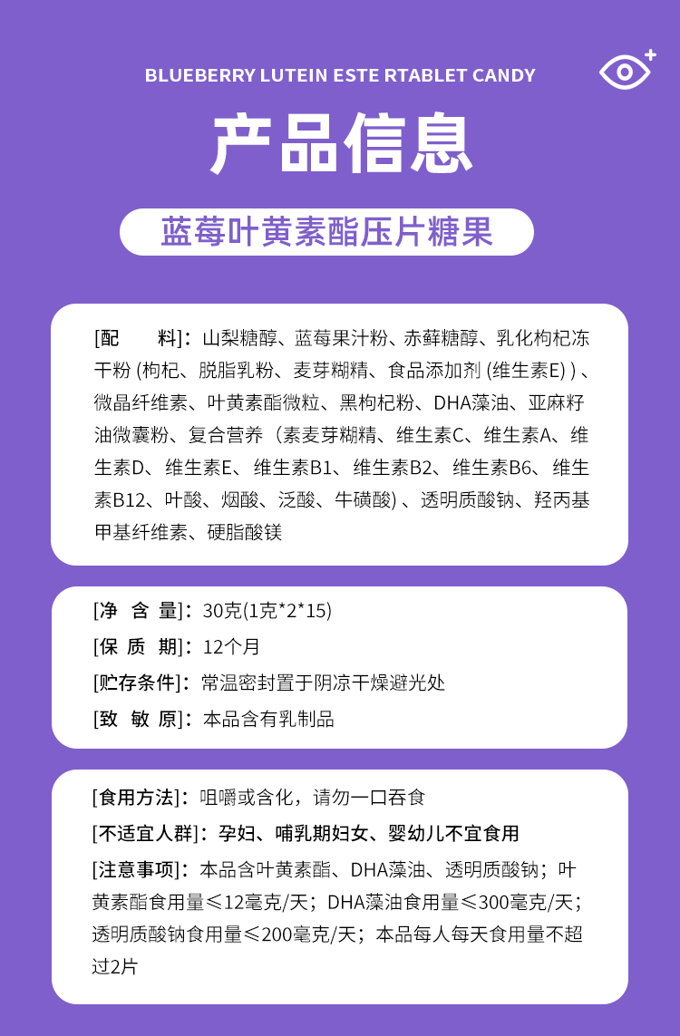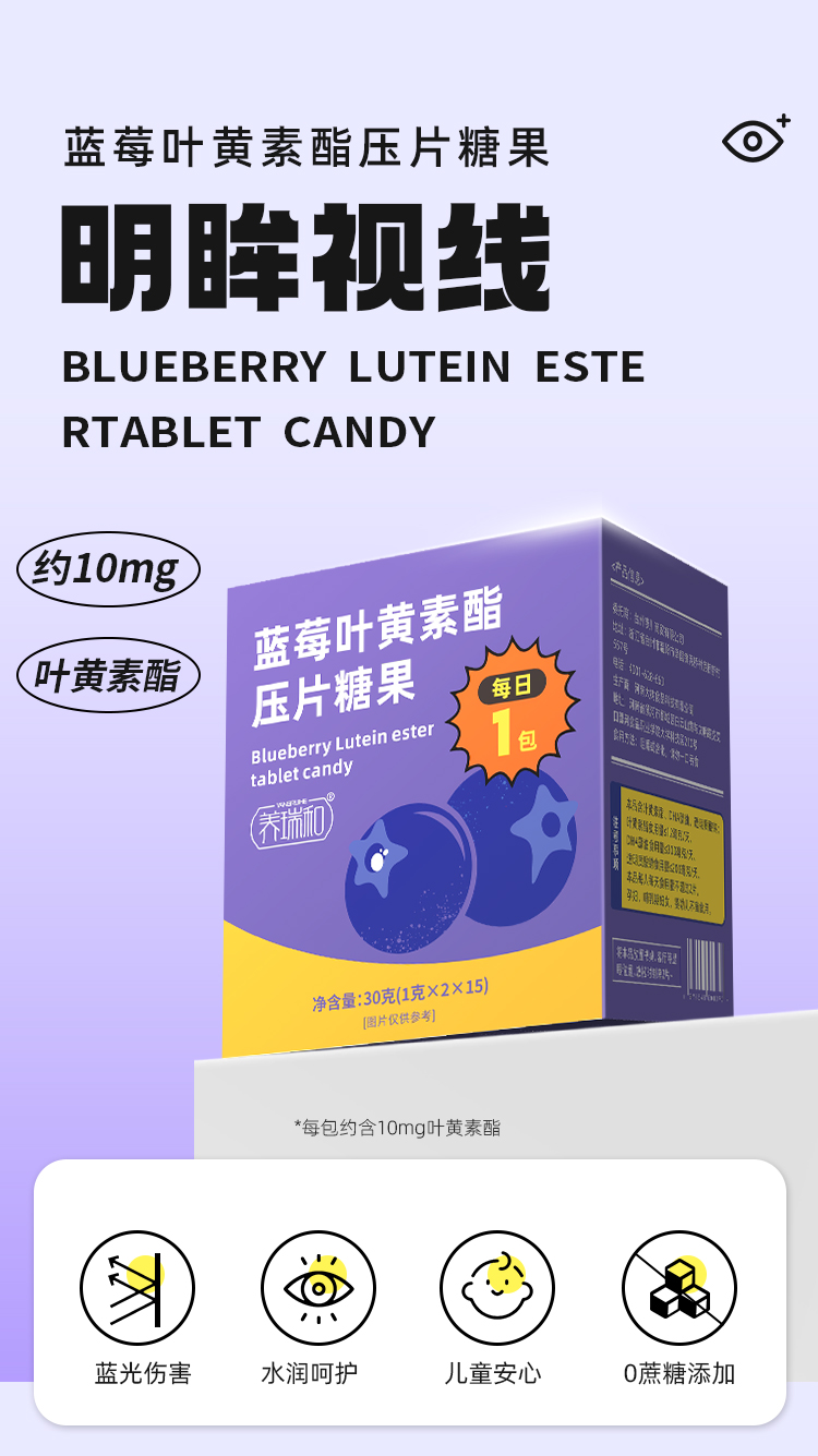 养瑞和丨蓝莓叶黄素酯压片糖果·30g·15包/盒·水润明眸·视力·眼睛儿童也能吃