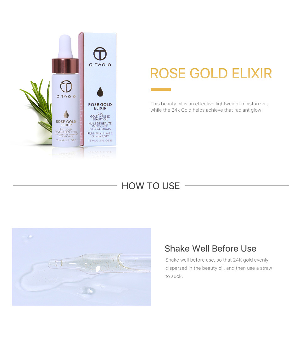 【化妆品】O.TWO.O 亚马逊爆款底妆 美妆24K玫瑰金箔保湿精华液精油