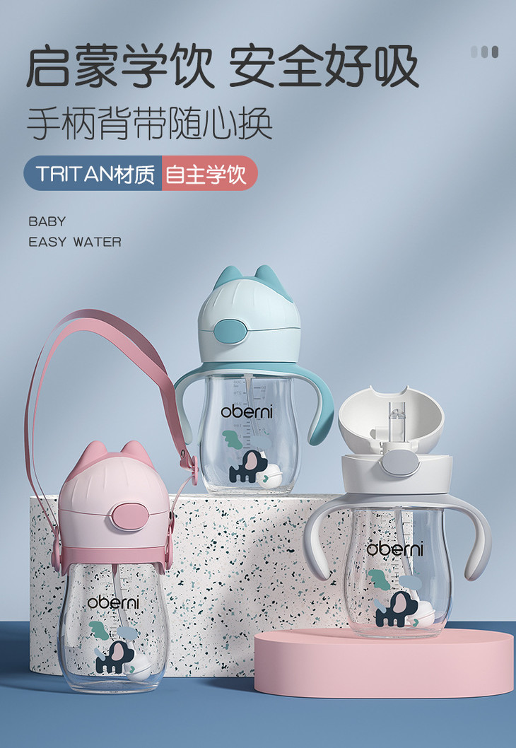 【婴儿用品】*宝宝学饮吸管杯密封防漏耐摔 tritan婴幼儿童水杯母婴