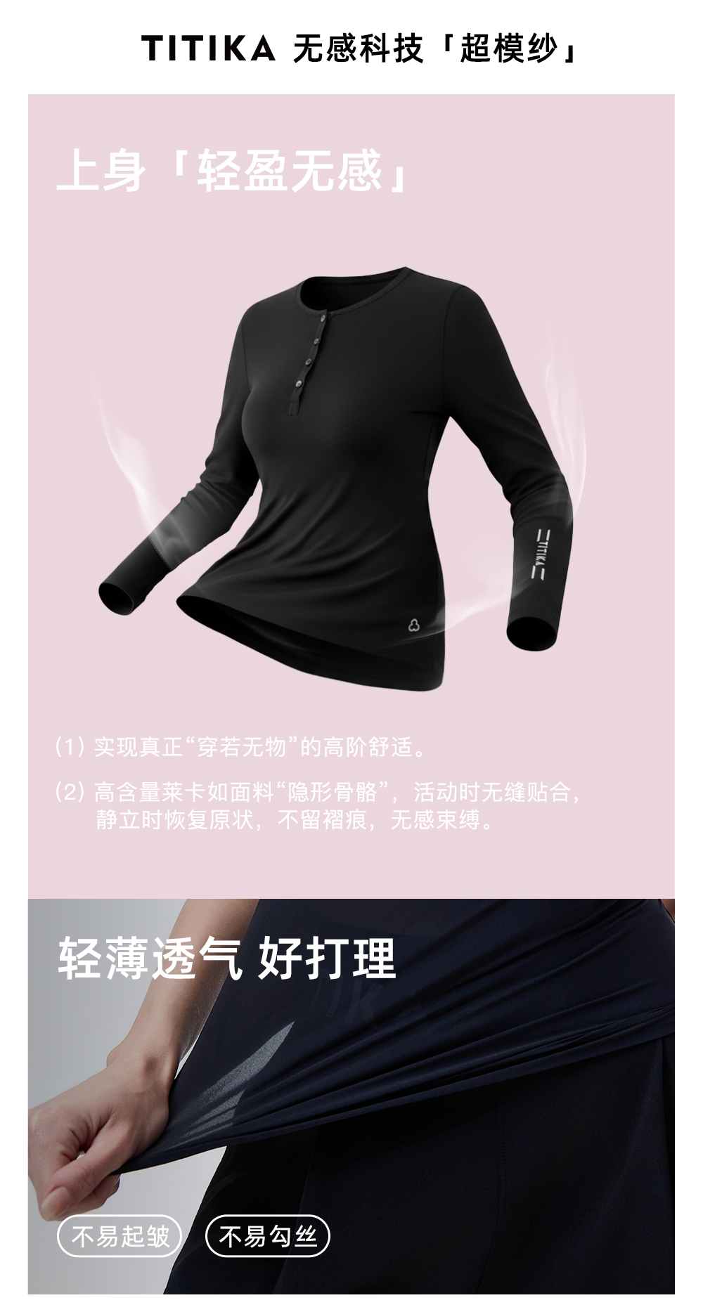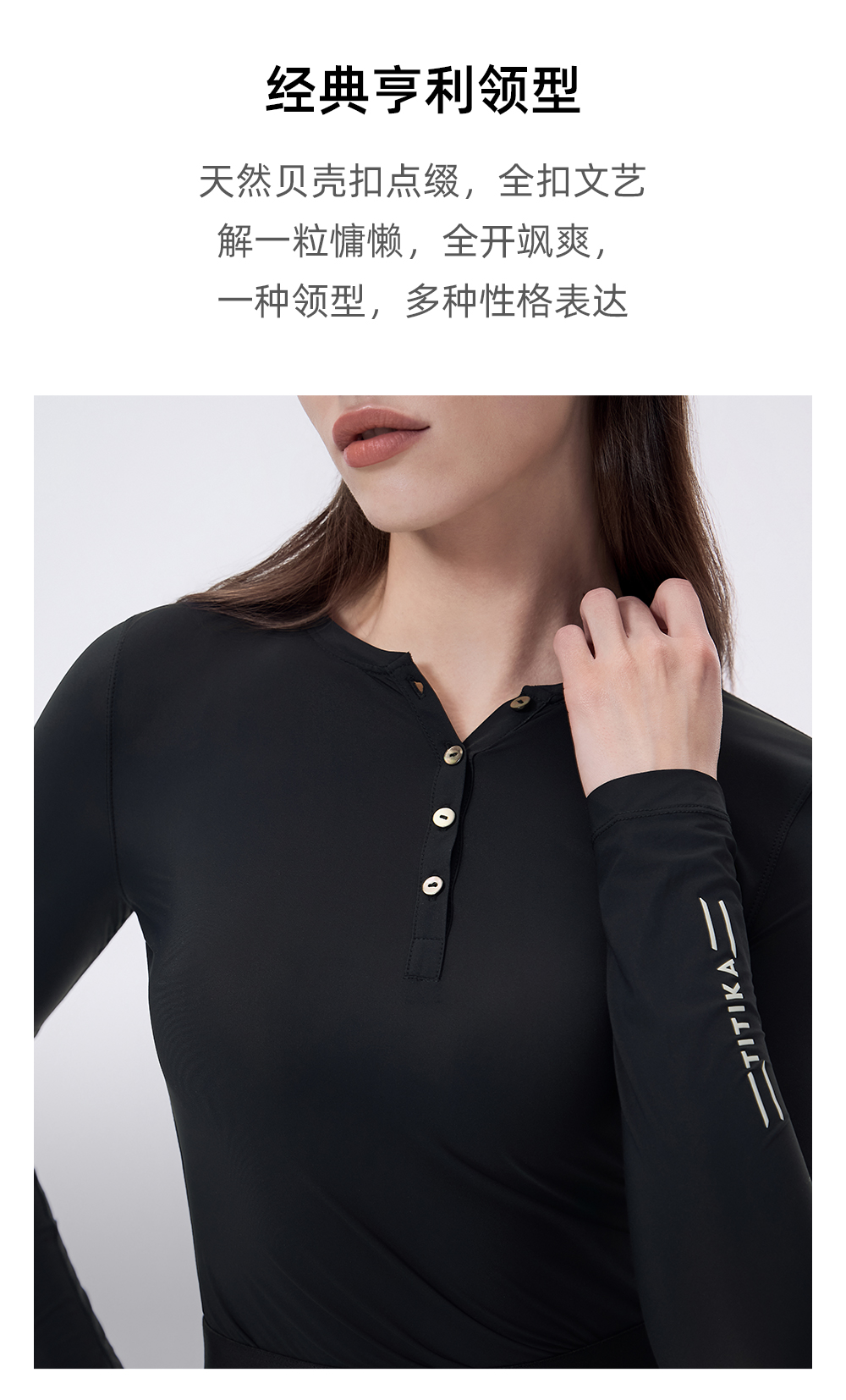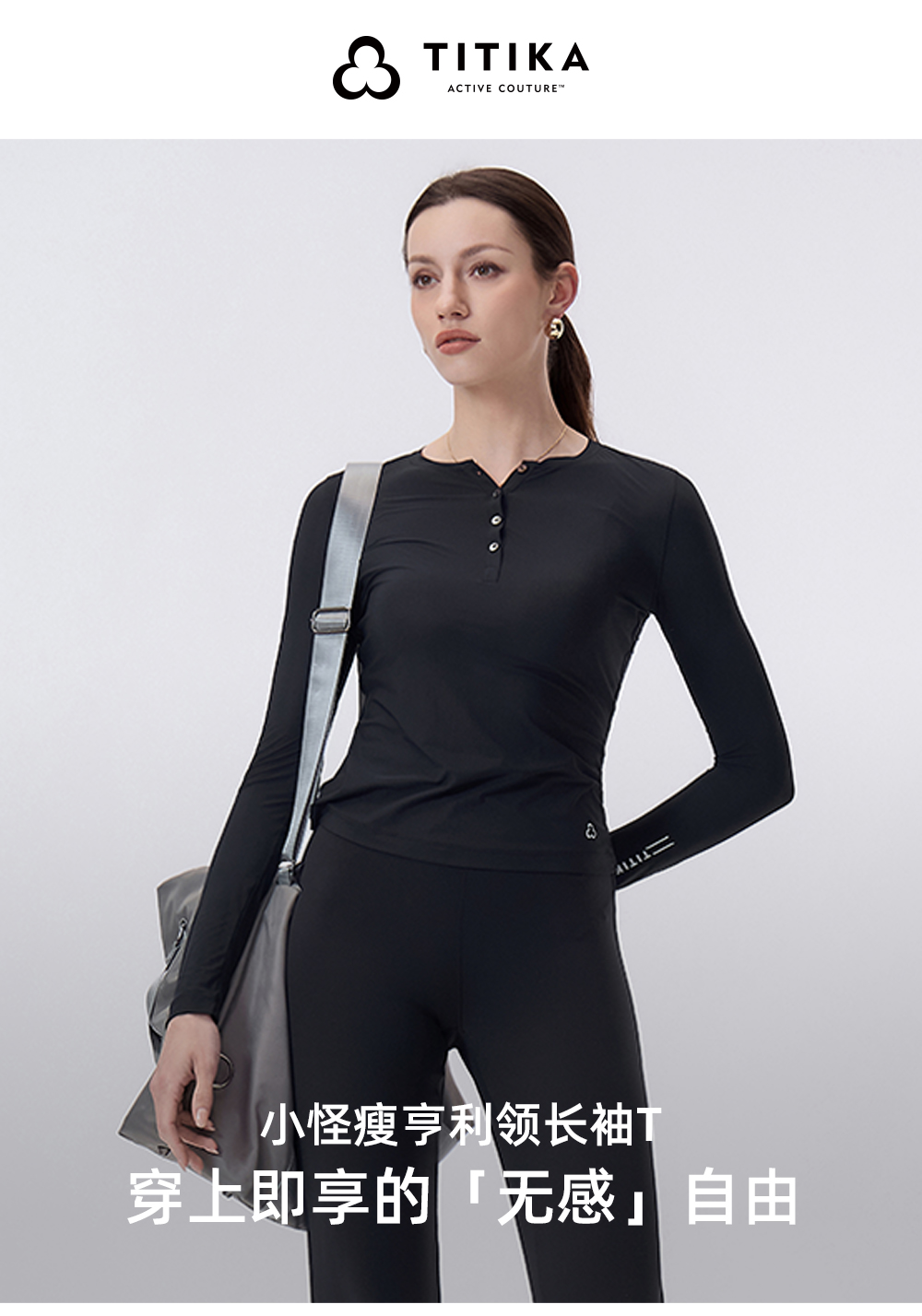 TITIKA小怪瘦亨利领长袖T恤女春秋修身长款运动休闲跑步上衣21241