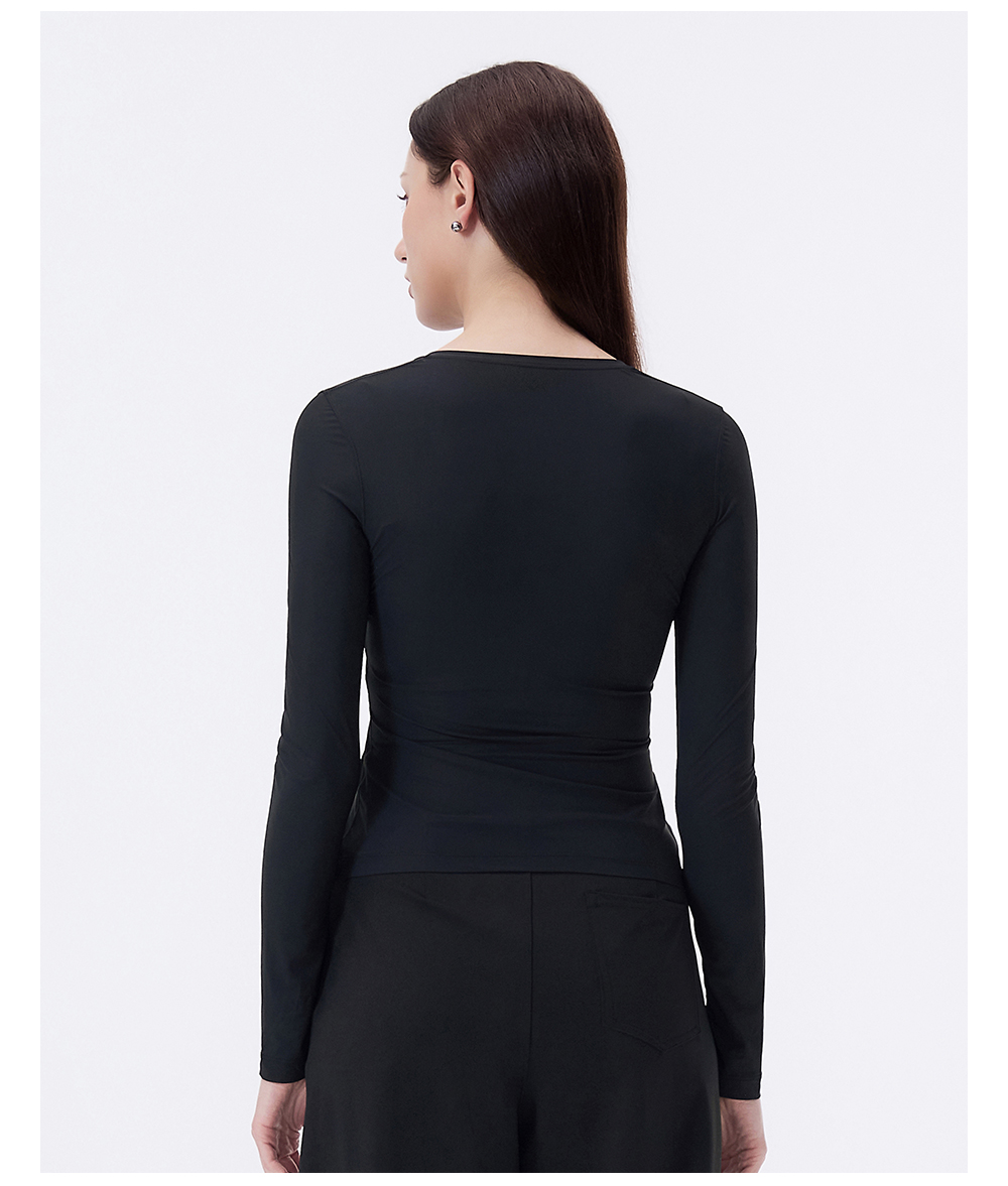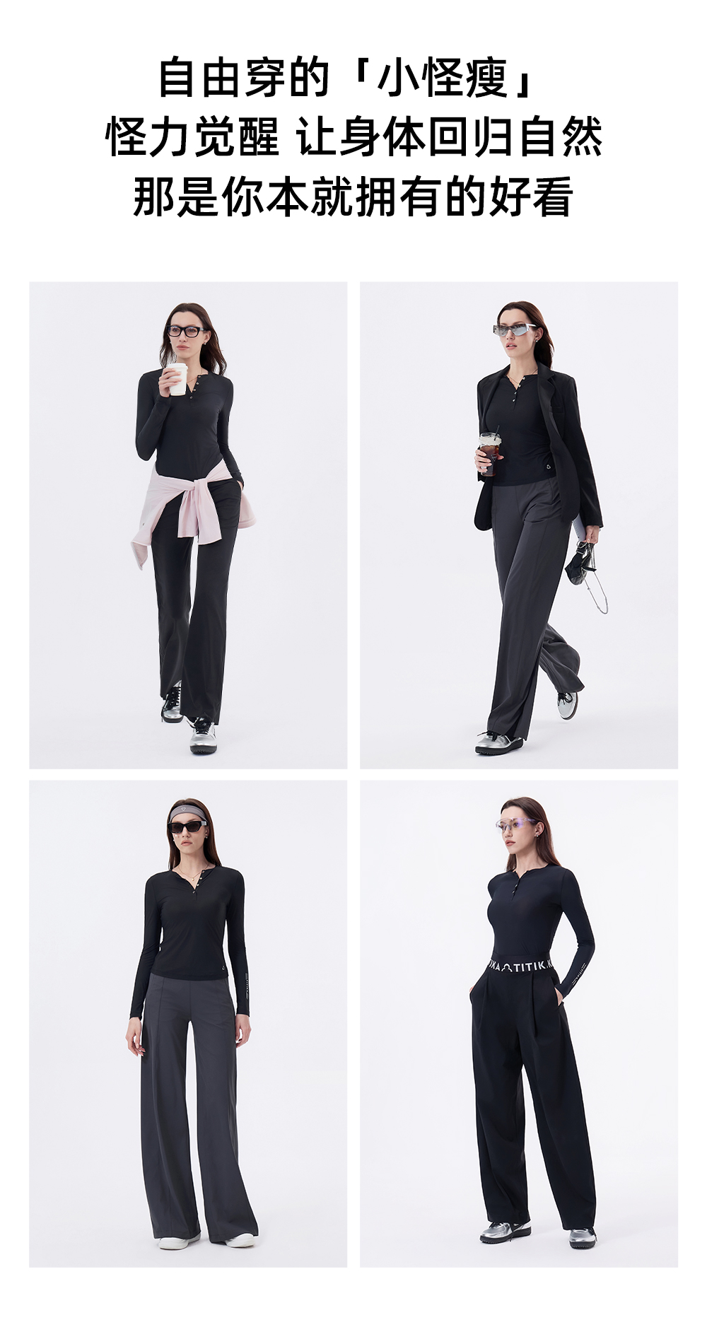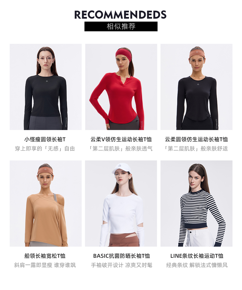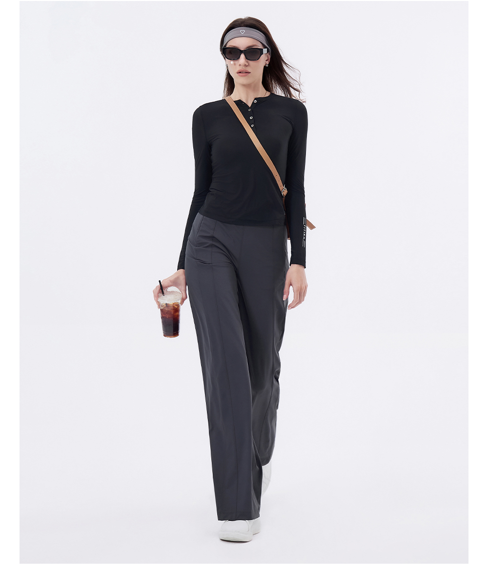 TITIKA小怪瘦亨利领长袖T恤女春秋修身长款运动休闲跑步上衣21241