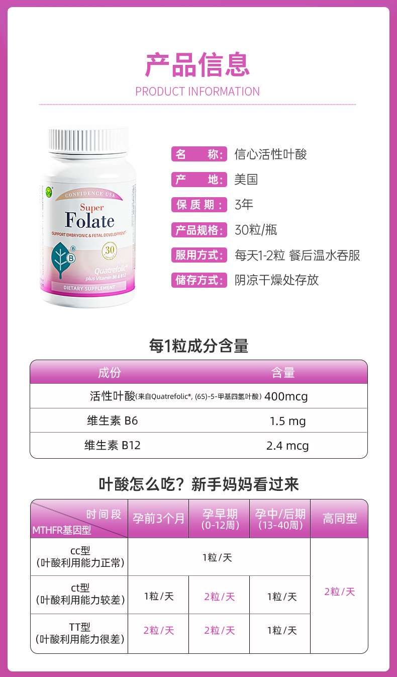 信心康乐400mcg活性叶酸孕妇叶酸孕前孕早期营养30粒/瓶