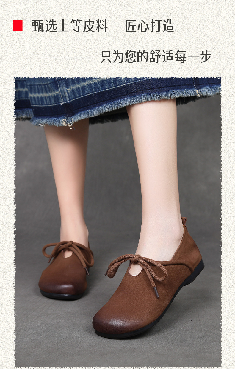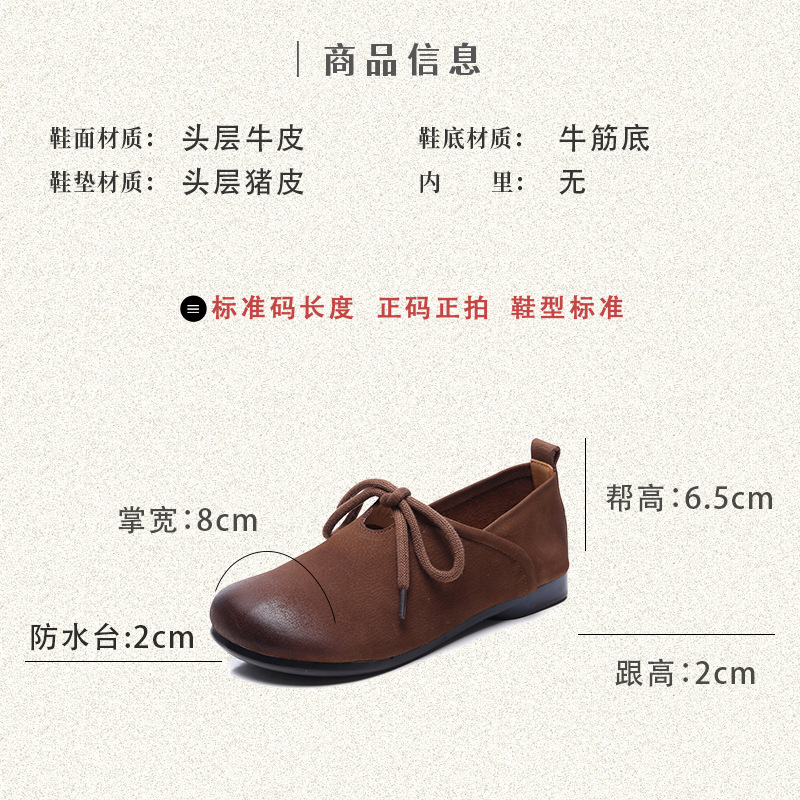 FR 85133复古单鞋防滑耐磨真皮平底休闲鞋 商品图0