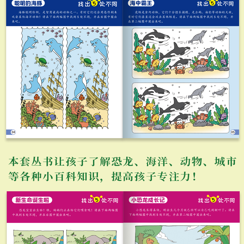 专注力训练游戏书 找不同(全8册)八大主题,趣味玩法,提升孩子专注力