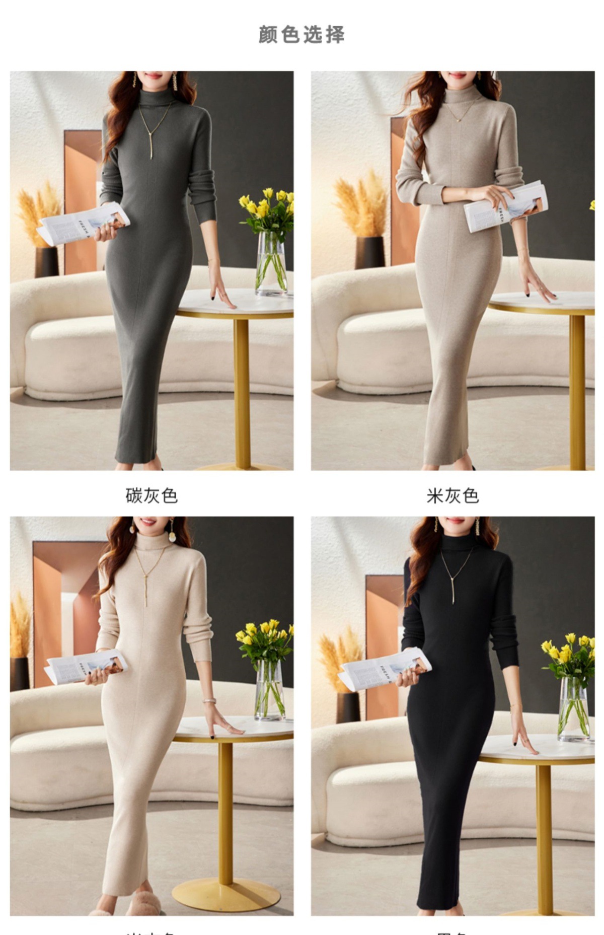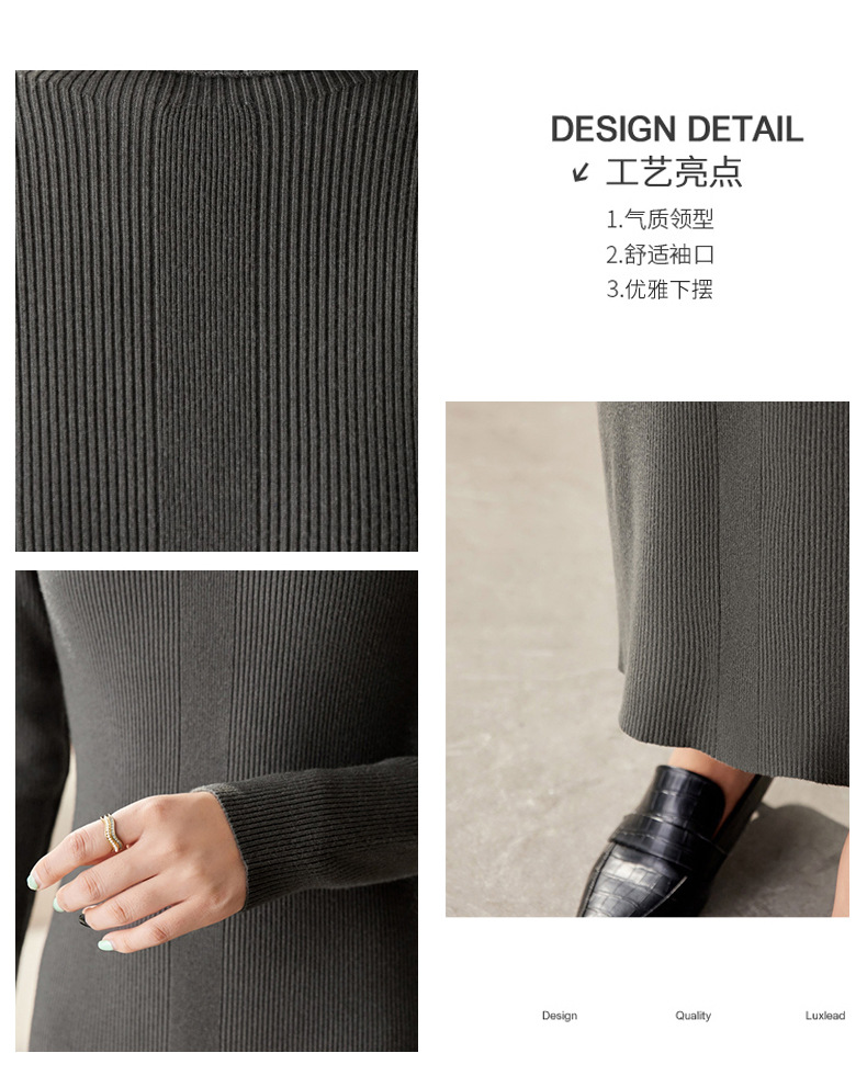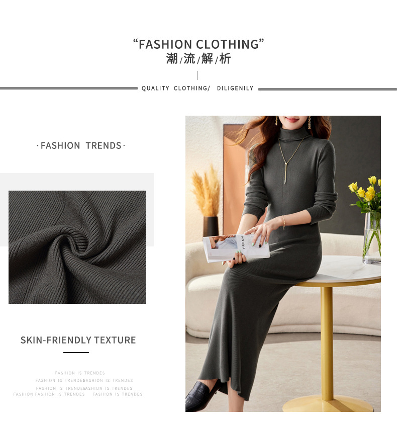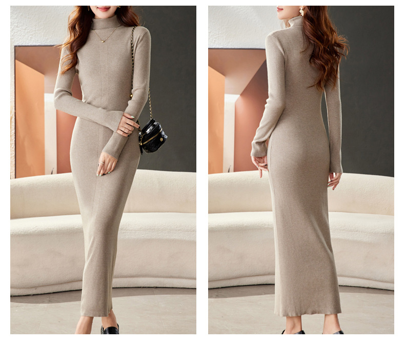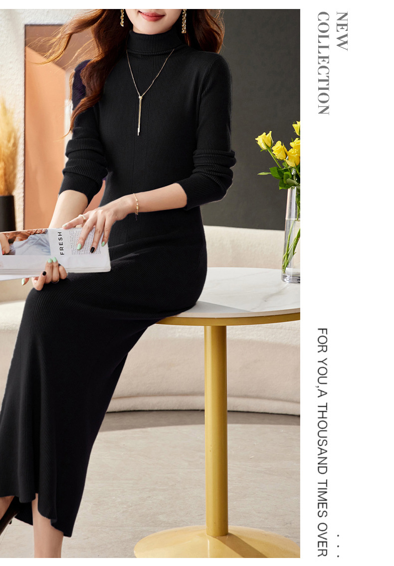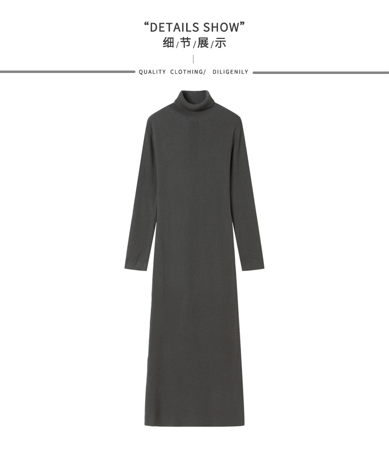 CC-16-9175秋冬高领修身显瘦特长款针织连衣裙女装配大衣打底衫毛衣裙子