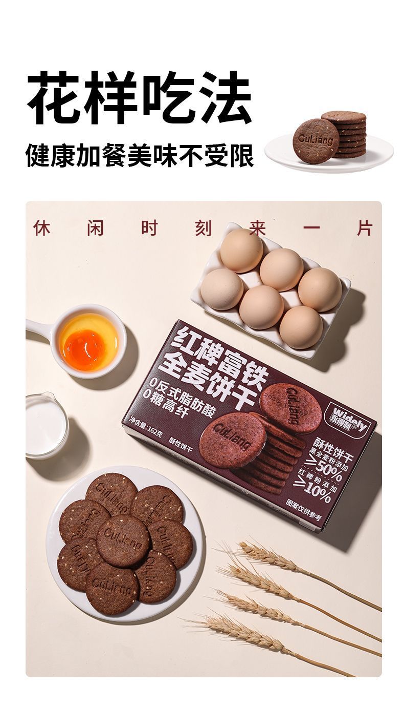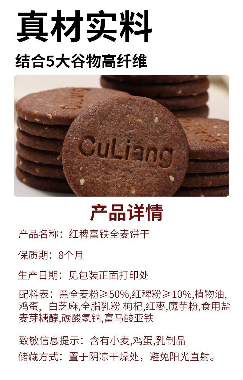 【红稗富铁全麦饼干❗吃出好气色】0糖63%铁14%叶酸含钙锌硒黑麦无糖饼干孕妇缺铁糖友零食。rh