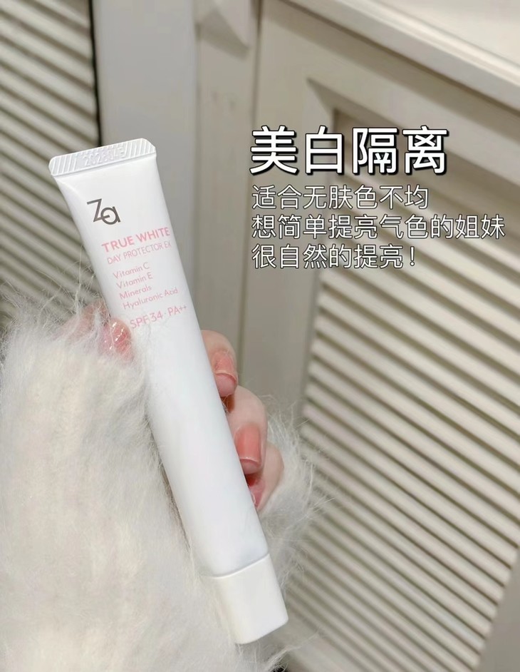 👑ZA美白防晒霜(第五代) 💦美白提亮,调和肤色,SPF34 PA++ 🌟含珍珠色亮白颗粒,令肌肤白润透亮 ✅可:隔离防晒、妆前打底、长效保湿 ❄️一支多效:美白+防晒+修颜+保湿,四合一 🌸适合:多种肤质