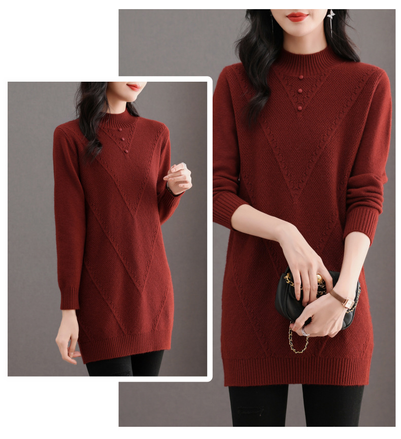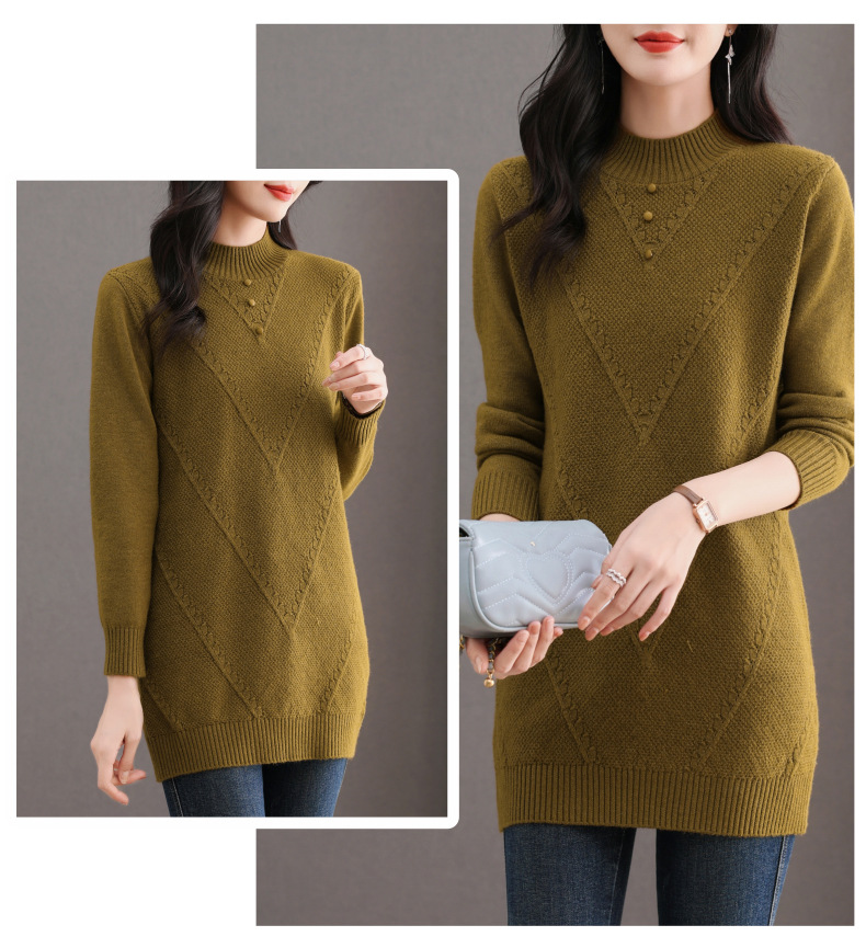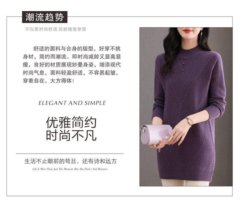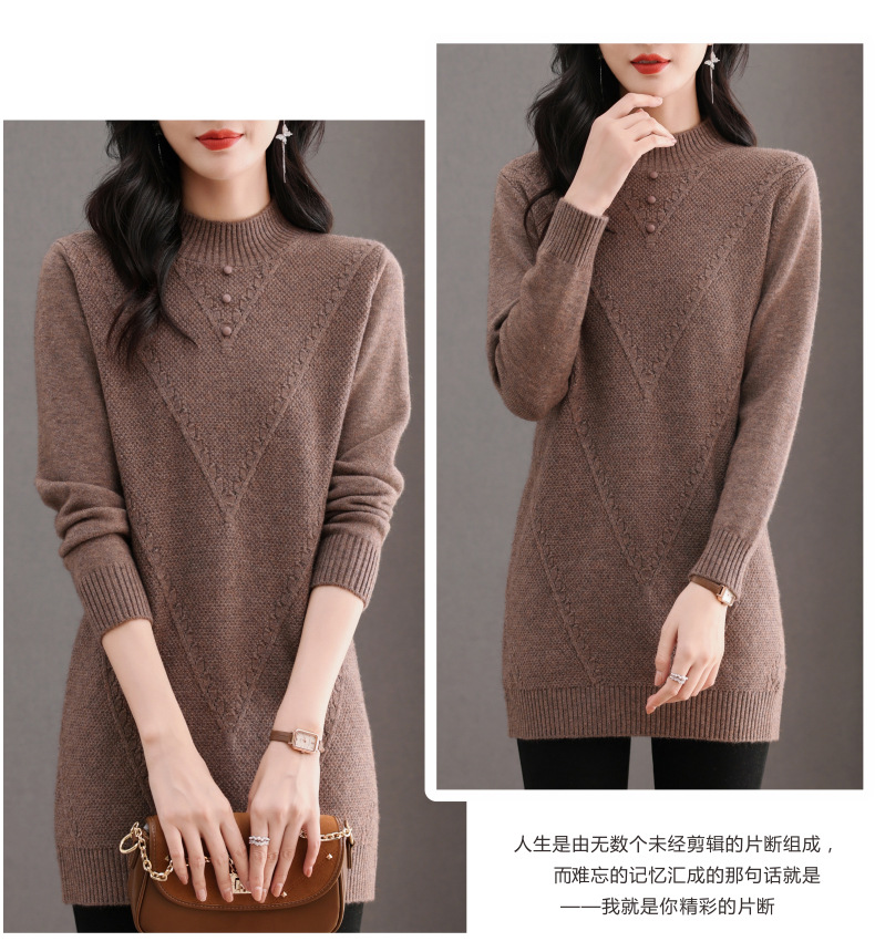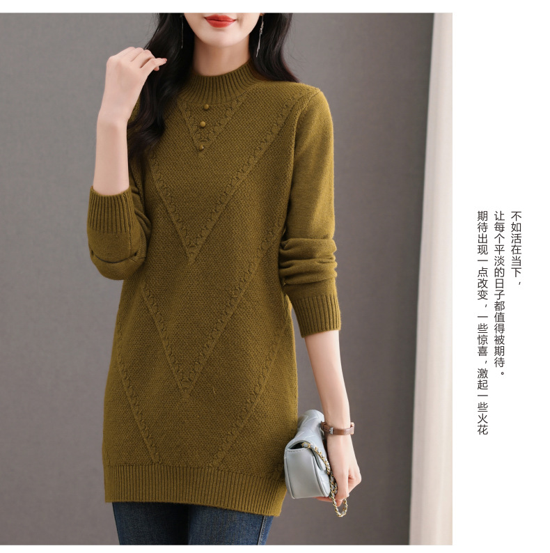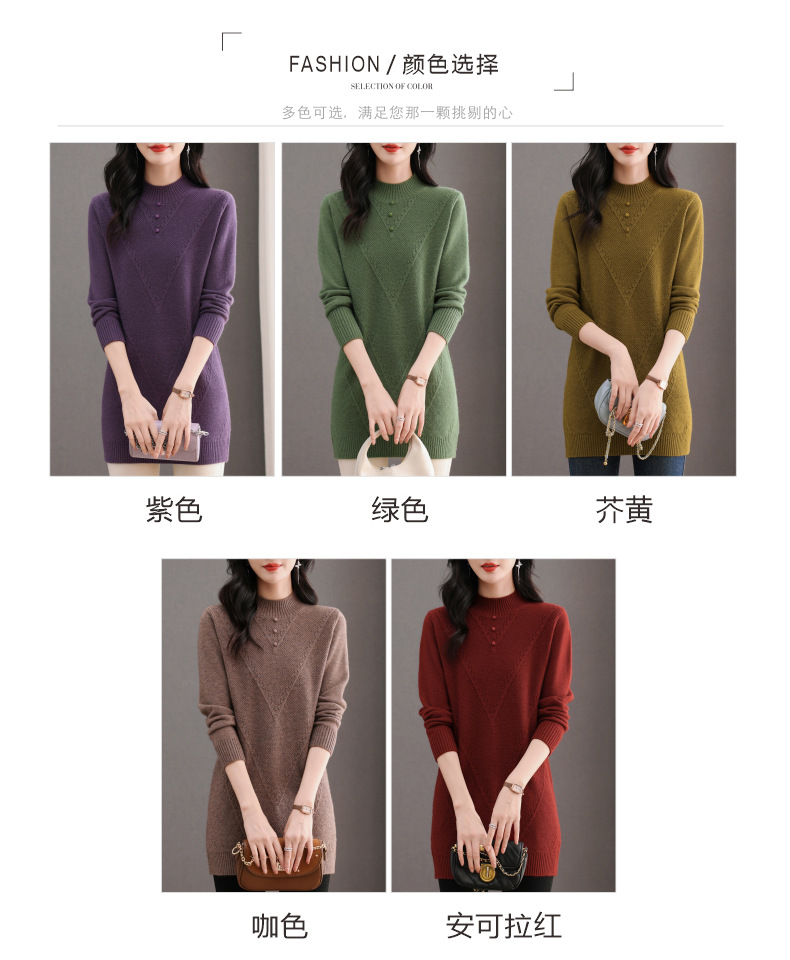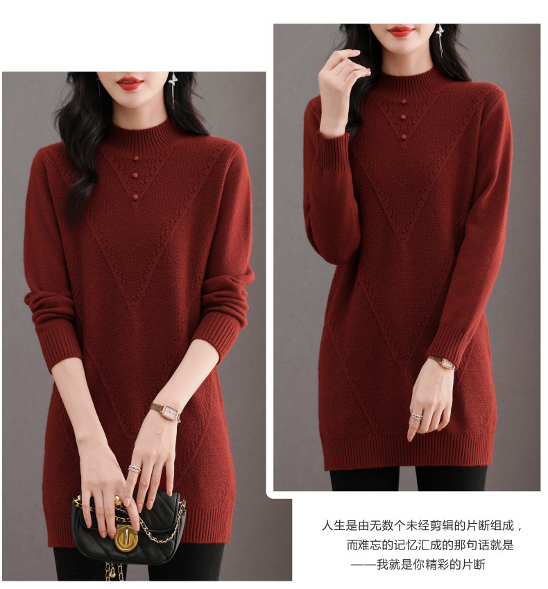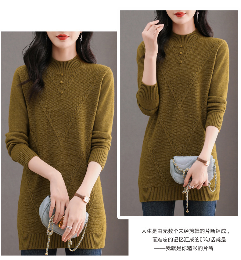 CC-103-9225中长款毛衣女遮屁股2024新款秋冬妈妈半高领内搭厚款配大衣打底衫
