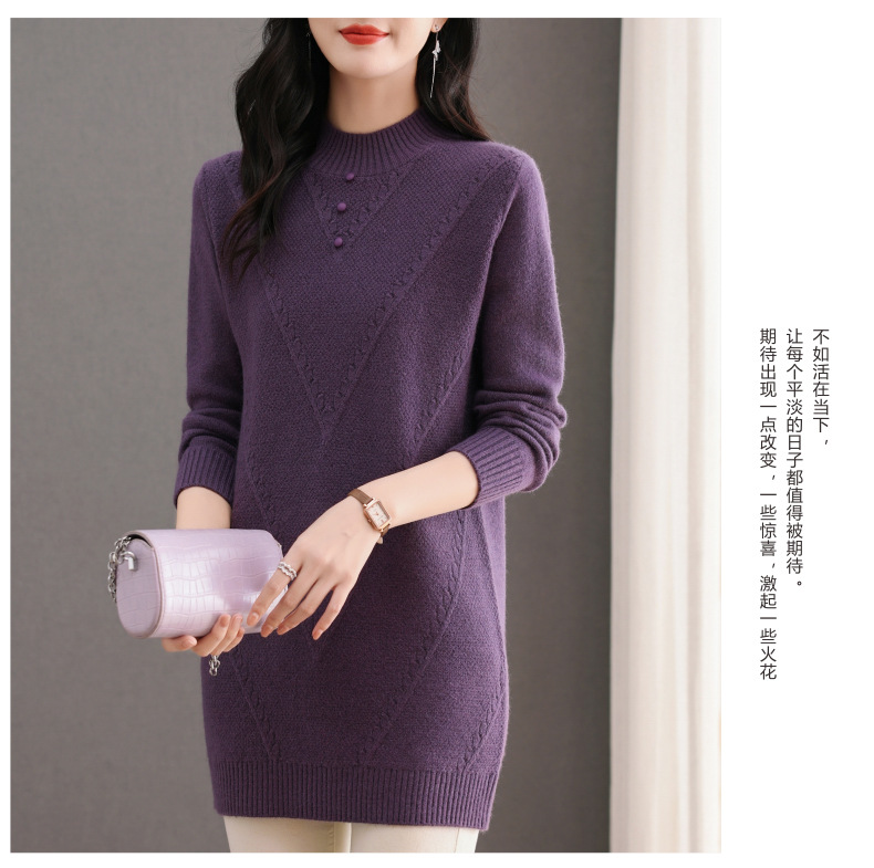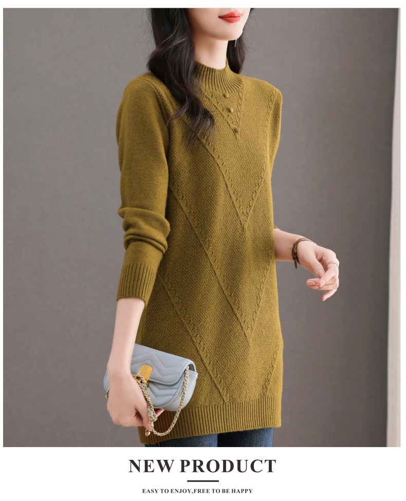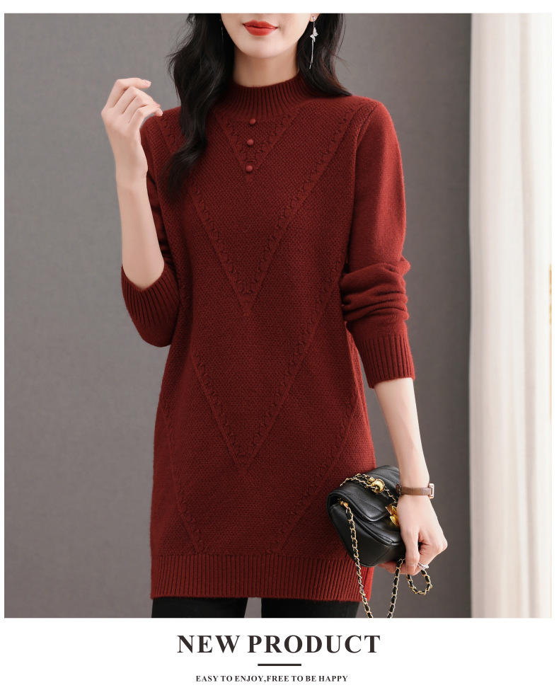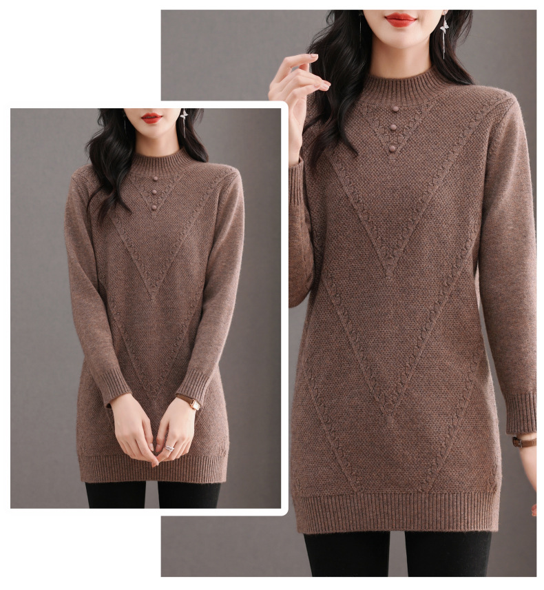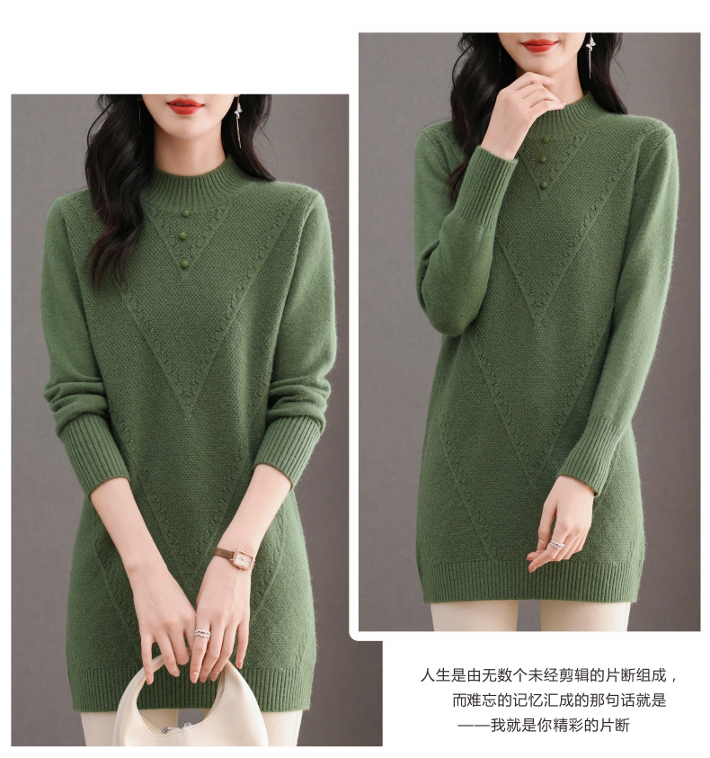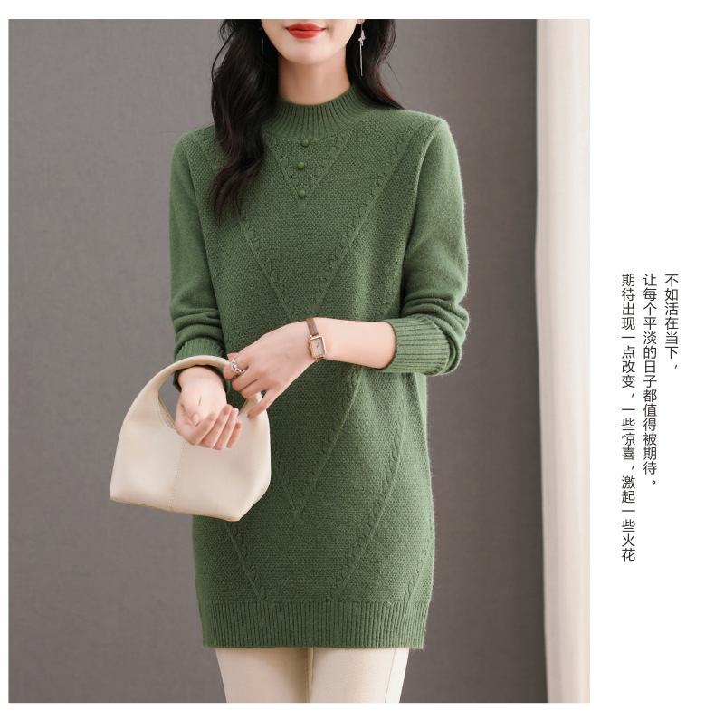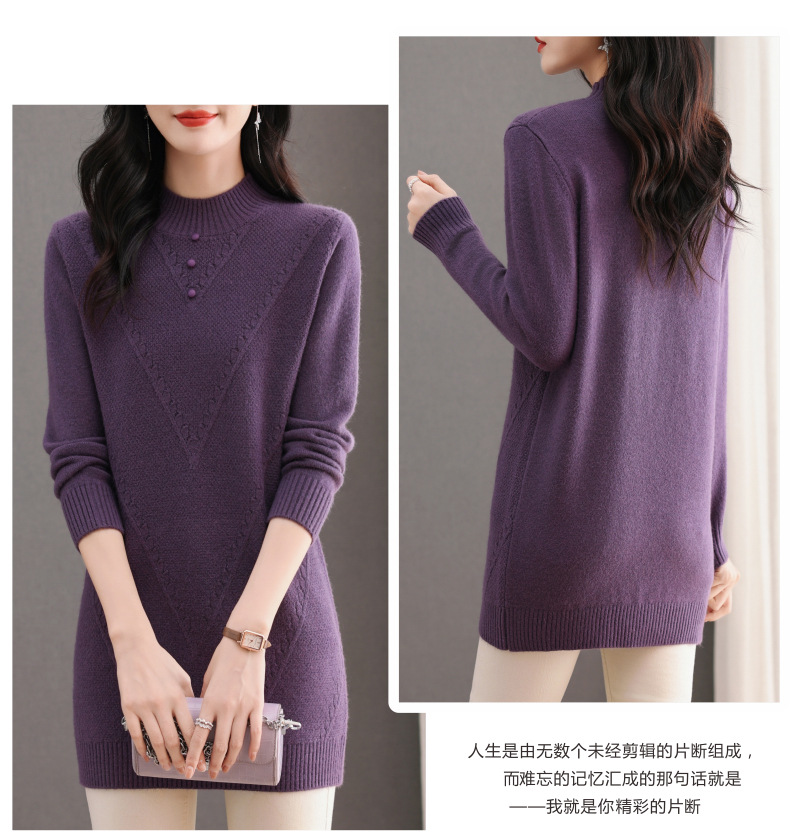 CC-103-9225中长款毛衣女遮屁股2024新款秋冬妈妈半高领内搭厚款配大衣打底衫