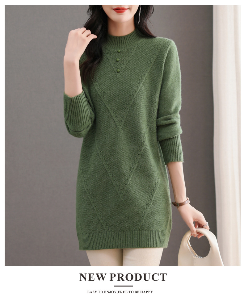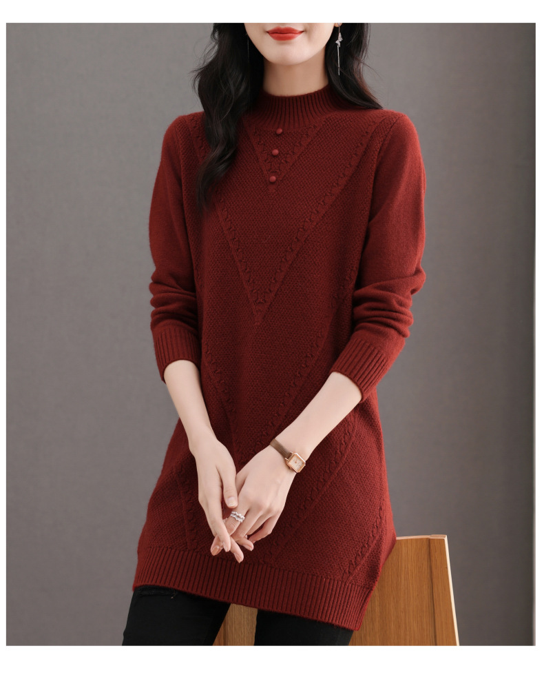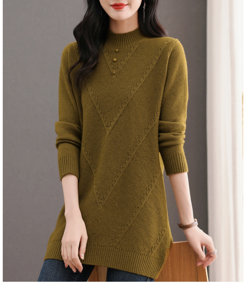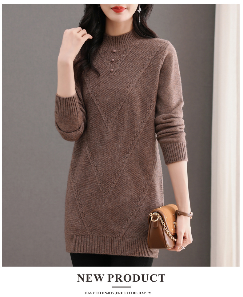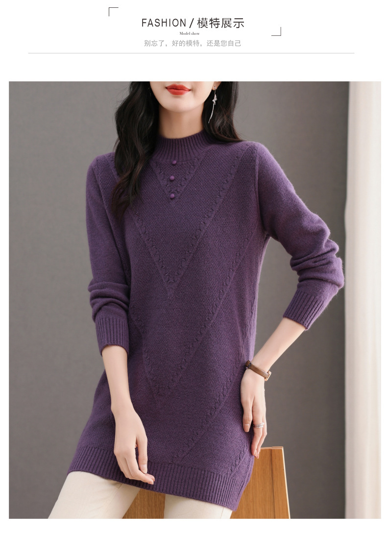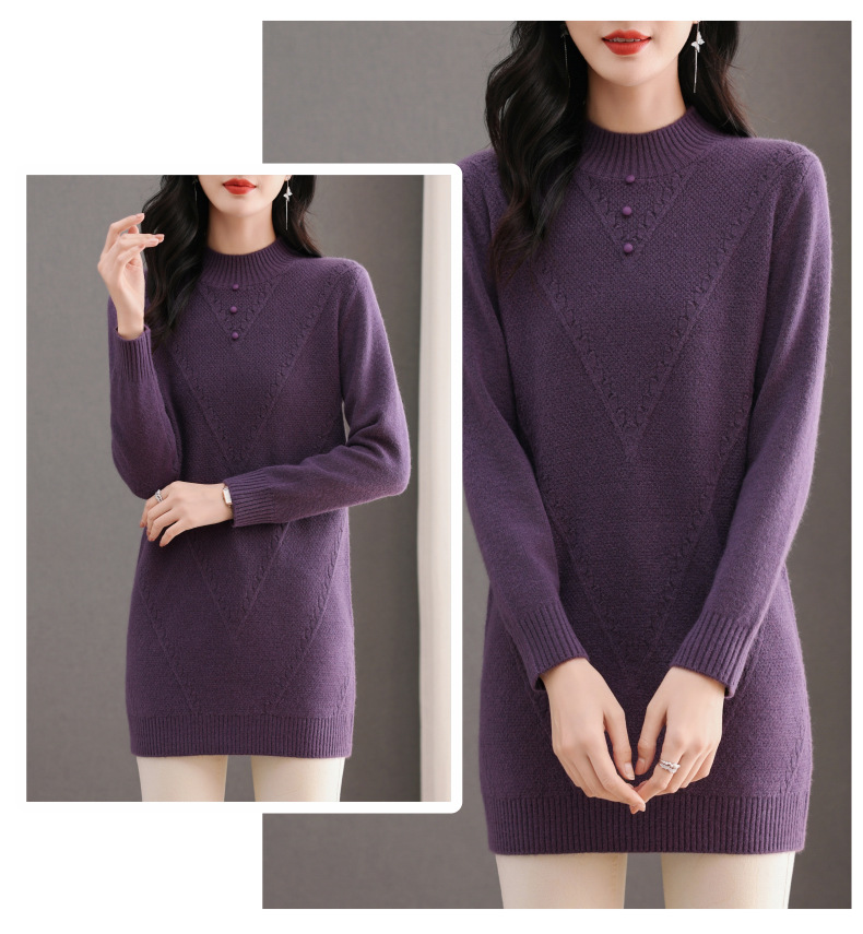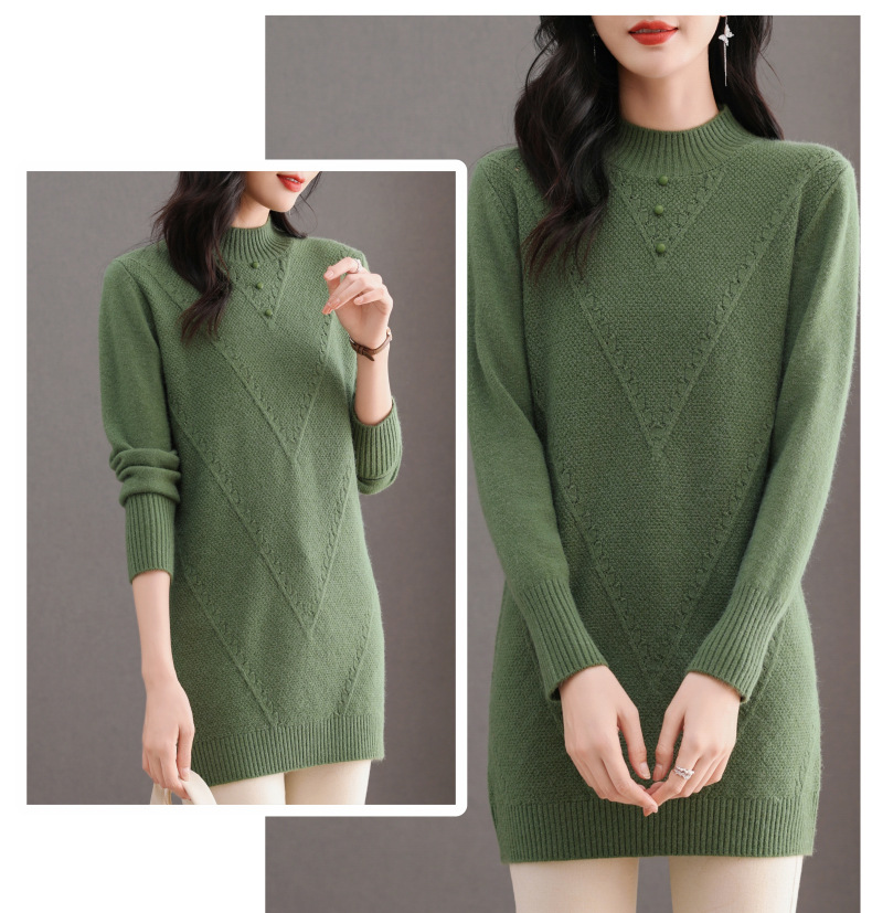 CC-103-9225中长款毛衣女遮屁股2024新款秋冬妈妈半高领内搭厚款配大衣打底衫