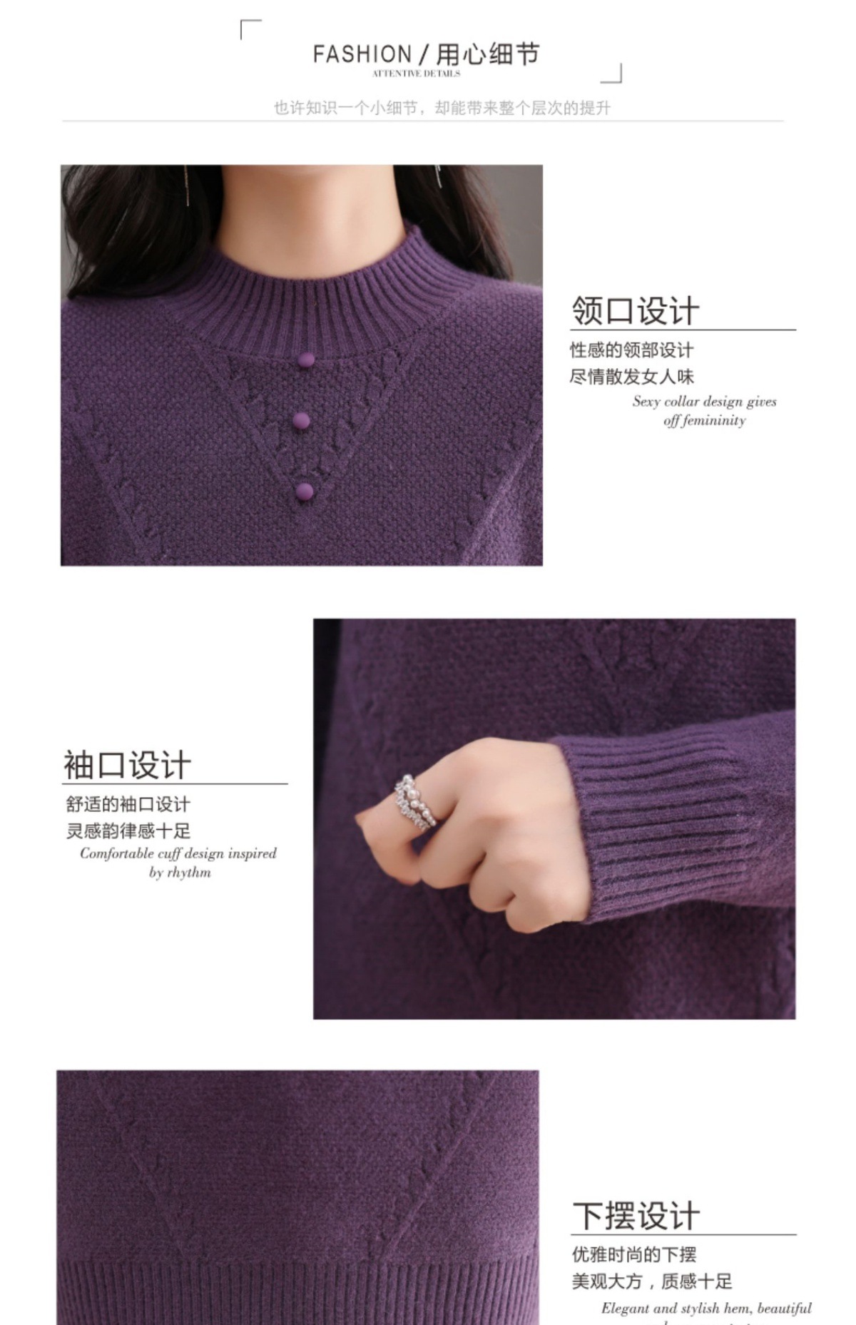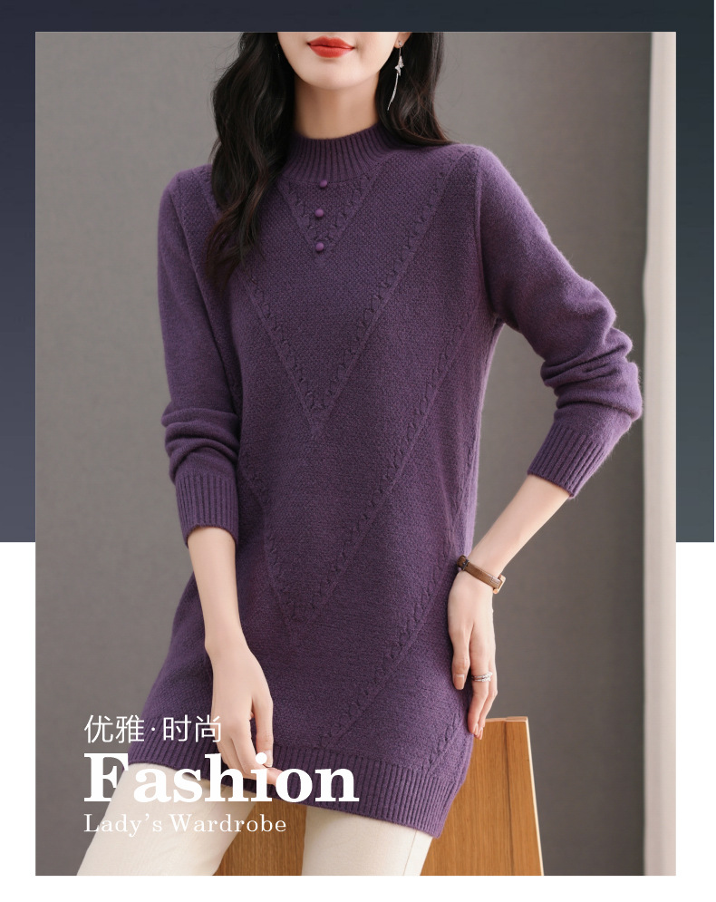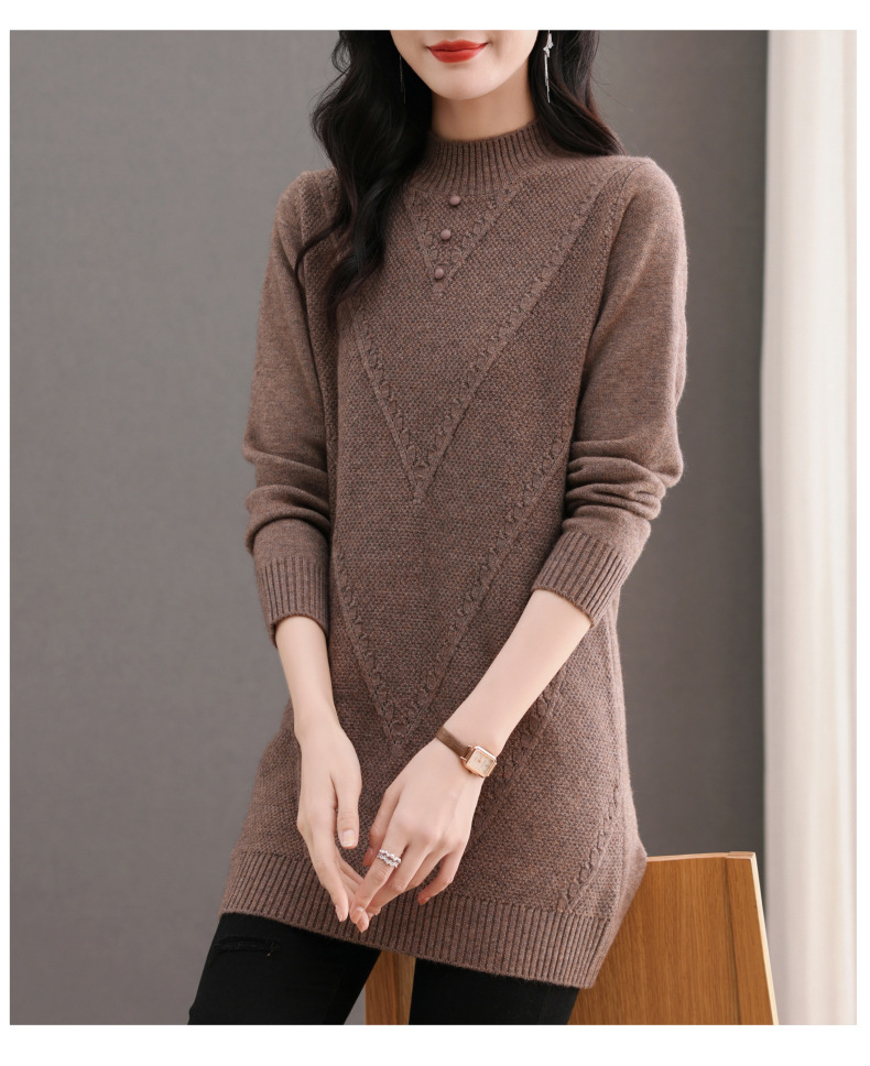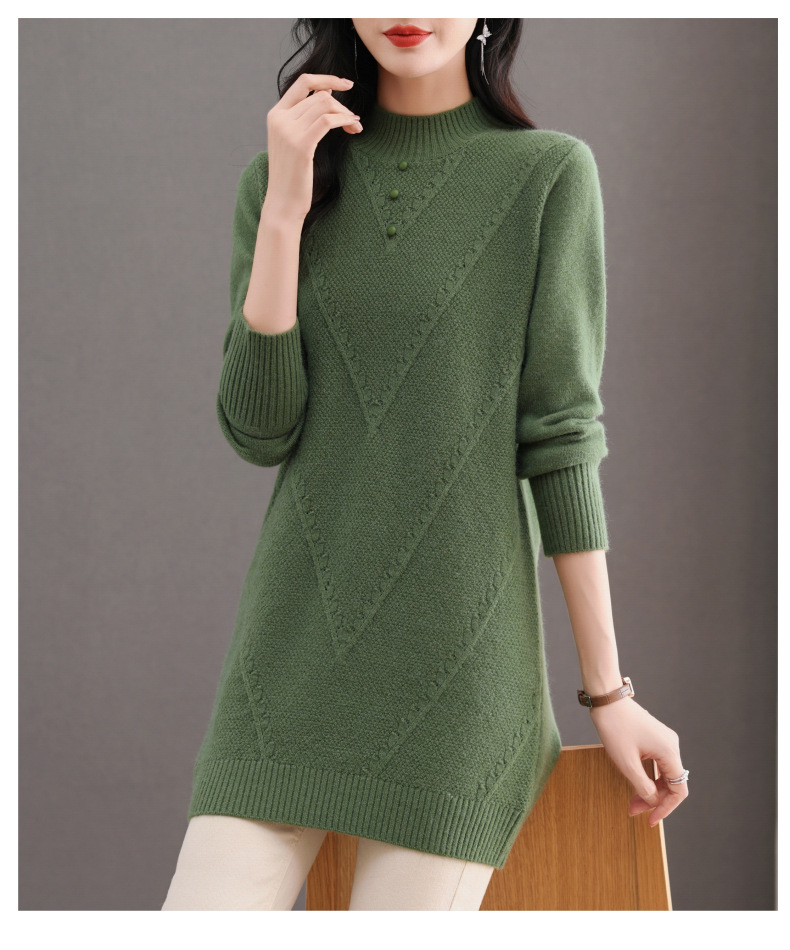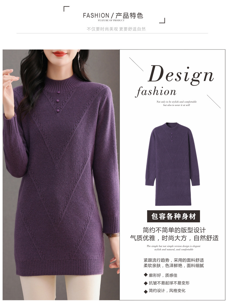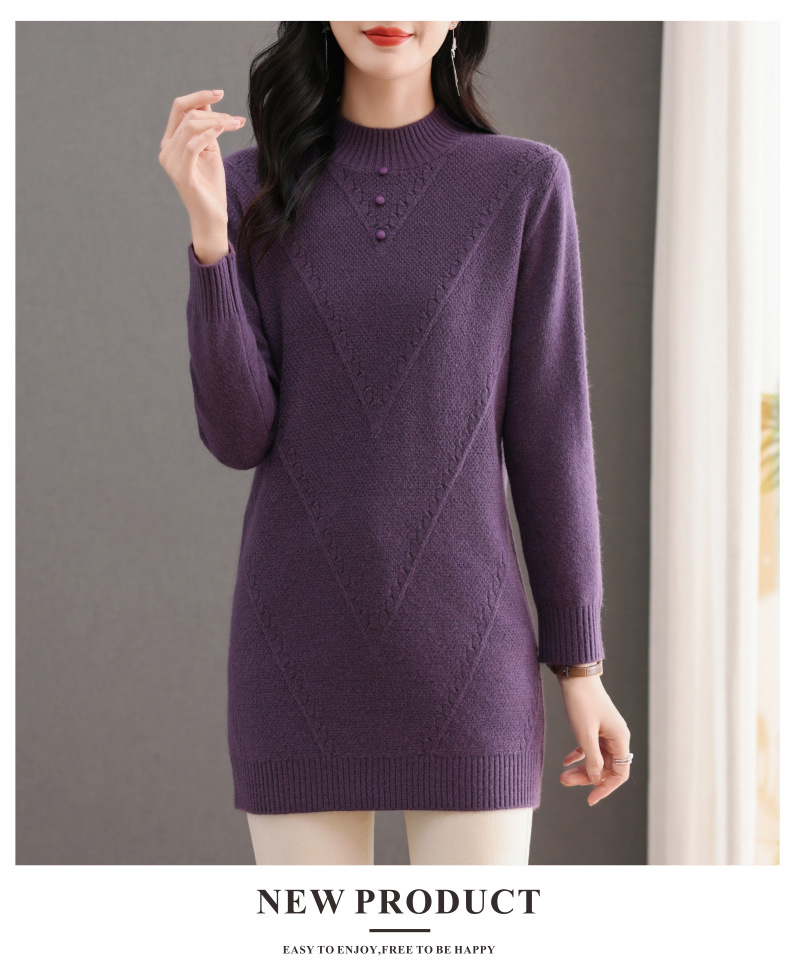 CC-103-9225中长款毛衣女遮屁股2024新款秋冬妈妈半高领内搭厚款配大衣打底衫