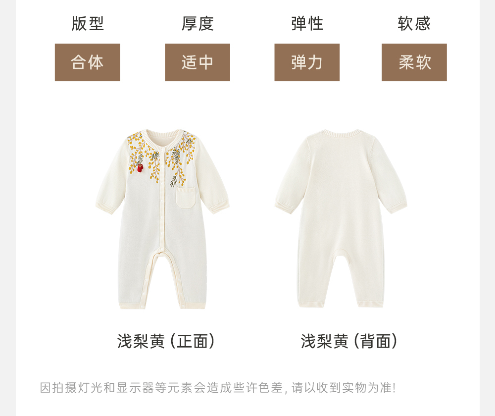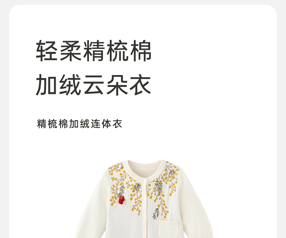 【商场同款】英氏女童连体衣秋冬长袖加绒婴儿衣服保暖新款