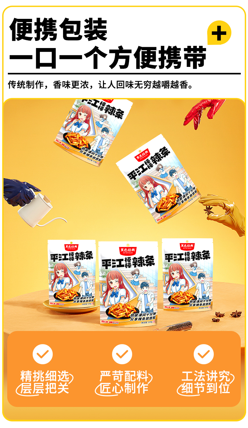 黑色经典平江辣条棒棒辣条110g/袋 味道纯正 一口一个