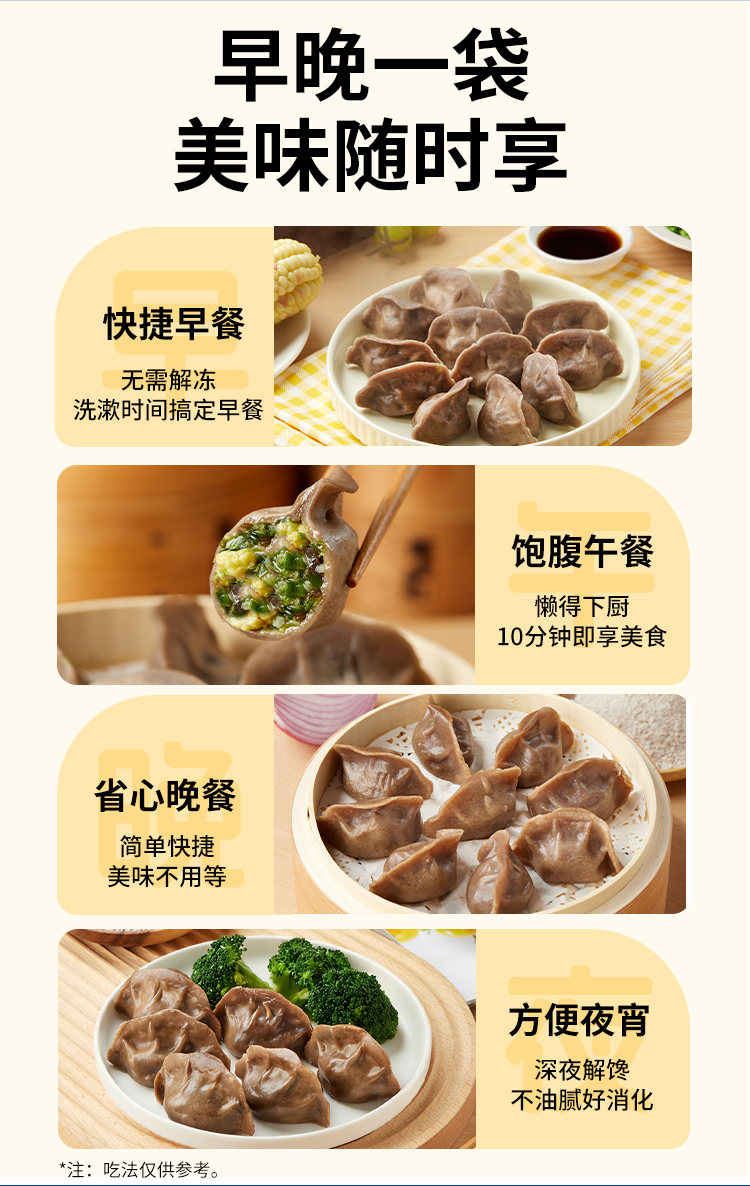 低GI黑麦荞麦牛肉大葱水饺/鸡肉包/吐司面包/素三鲜水饺