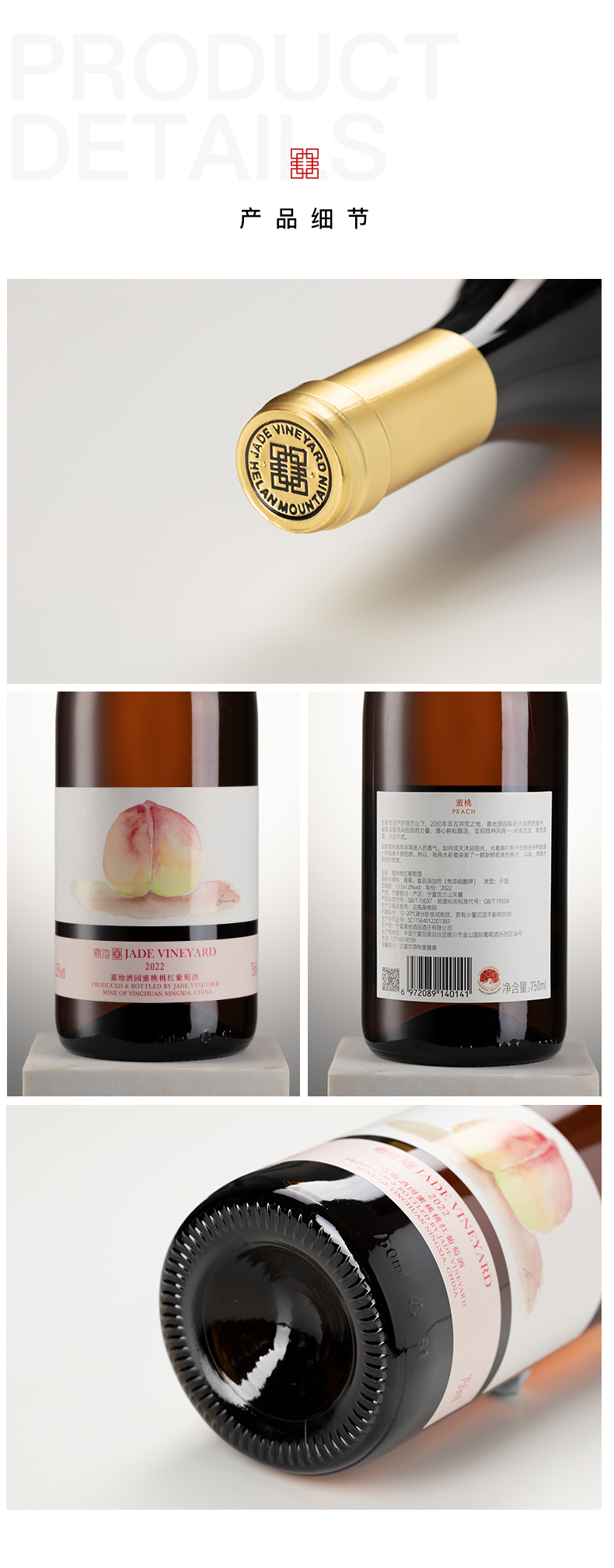 嘉地酒园旗舰店蜜桃桃红中国宁夏贺兰山东麓葡萄酒750ml