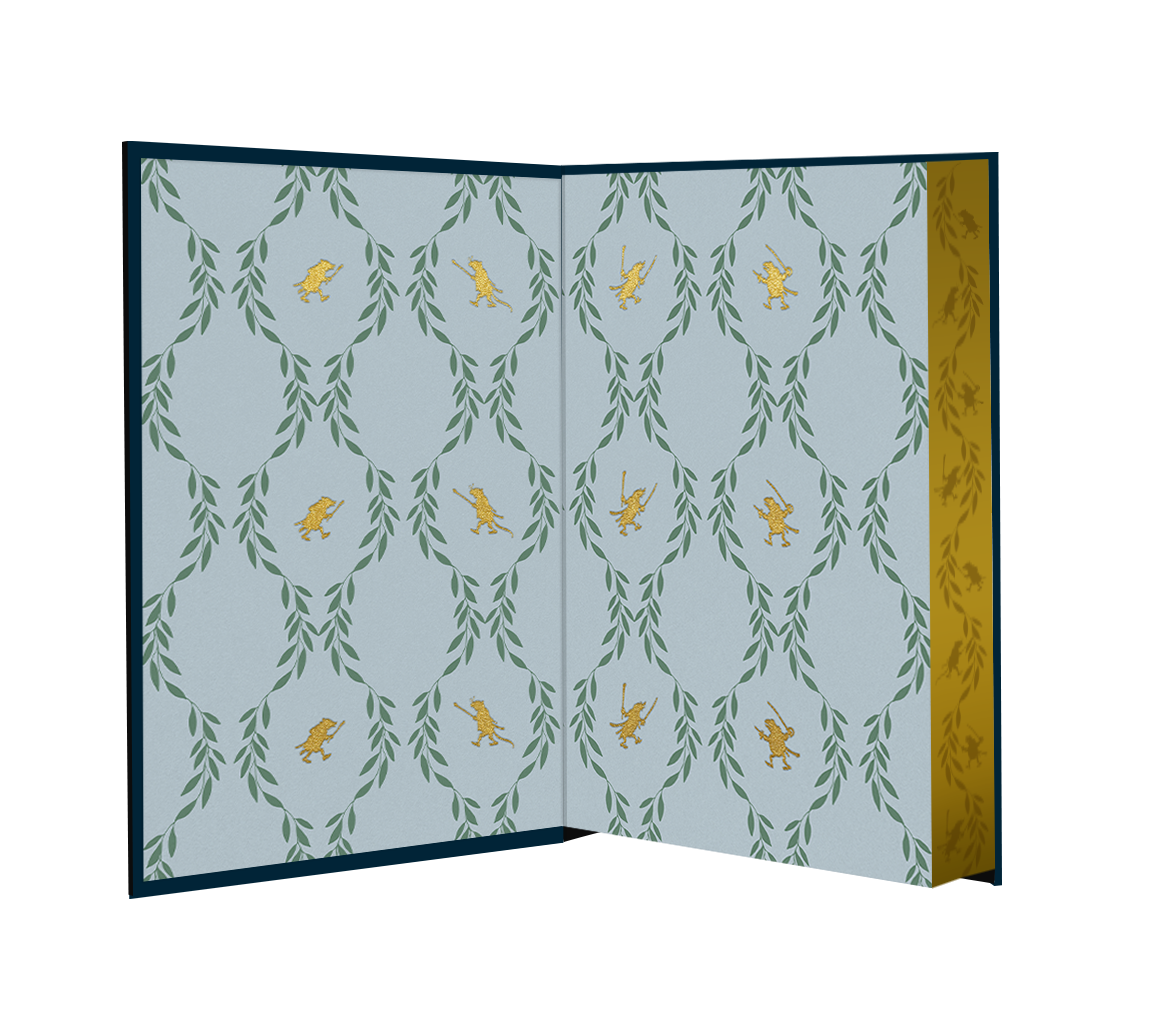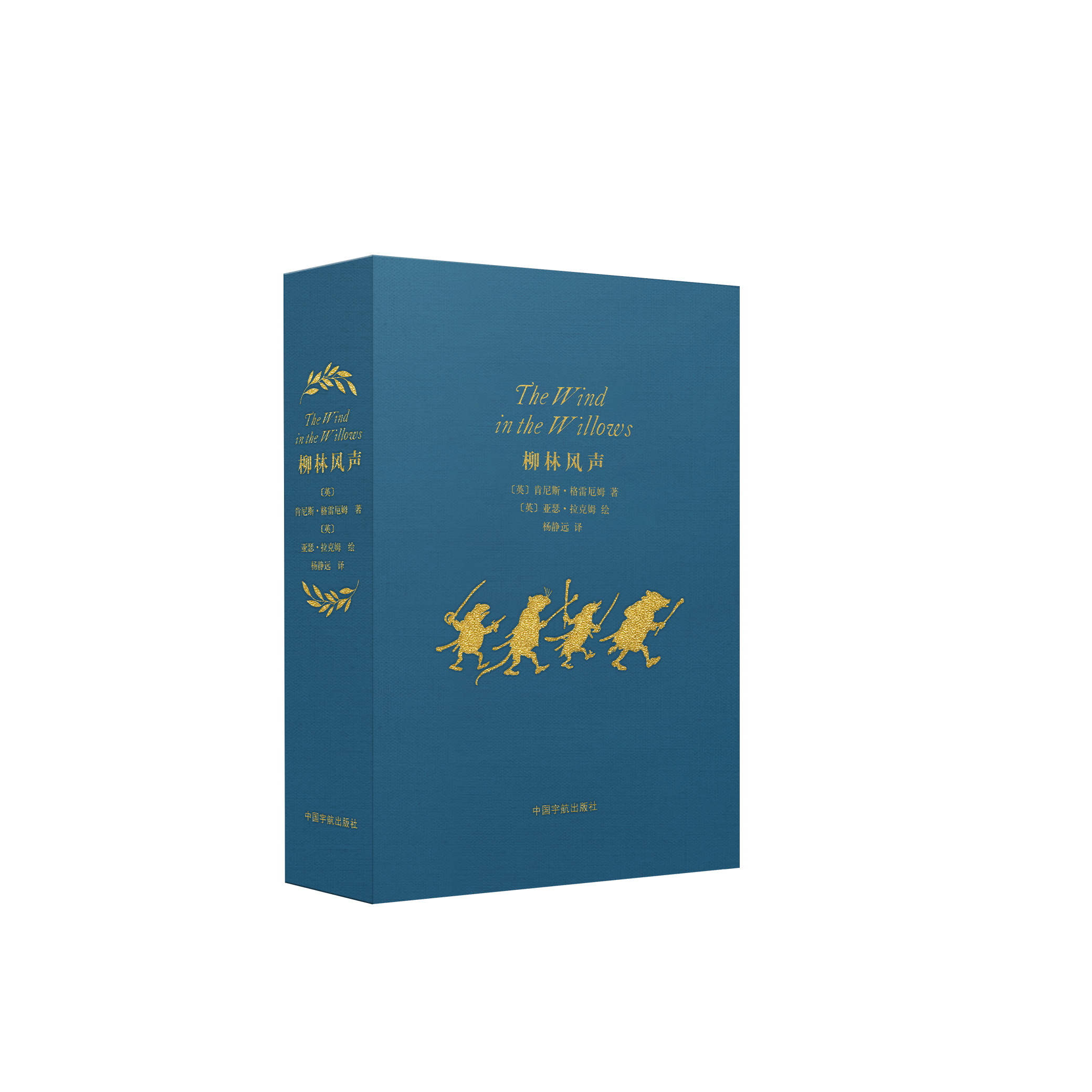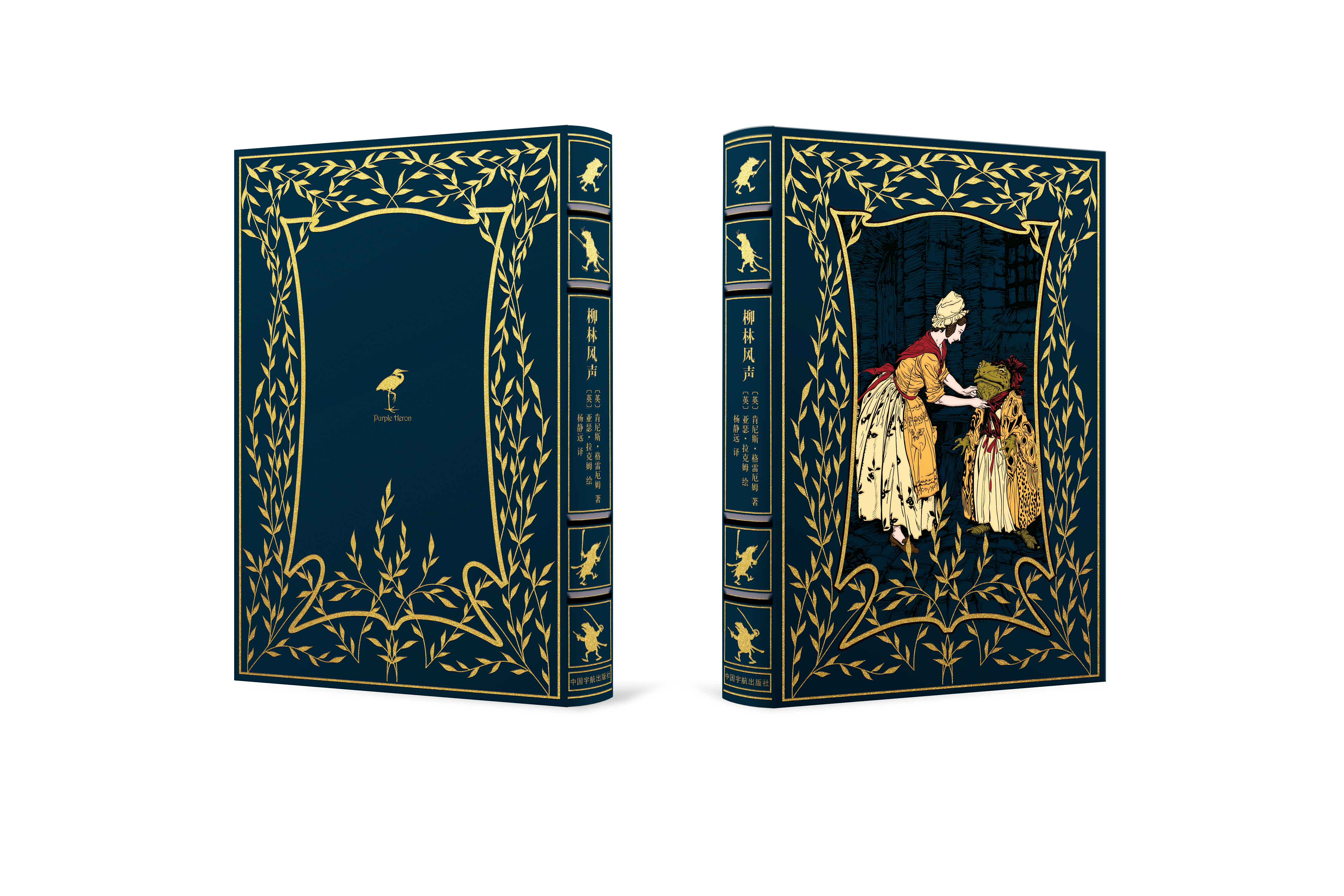 蓝色牛皮材质,封面采用烫金烫印工艺呈现蟾蜍历险记中的经典场景,32开全一册。