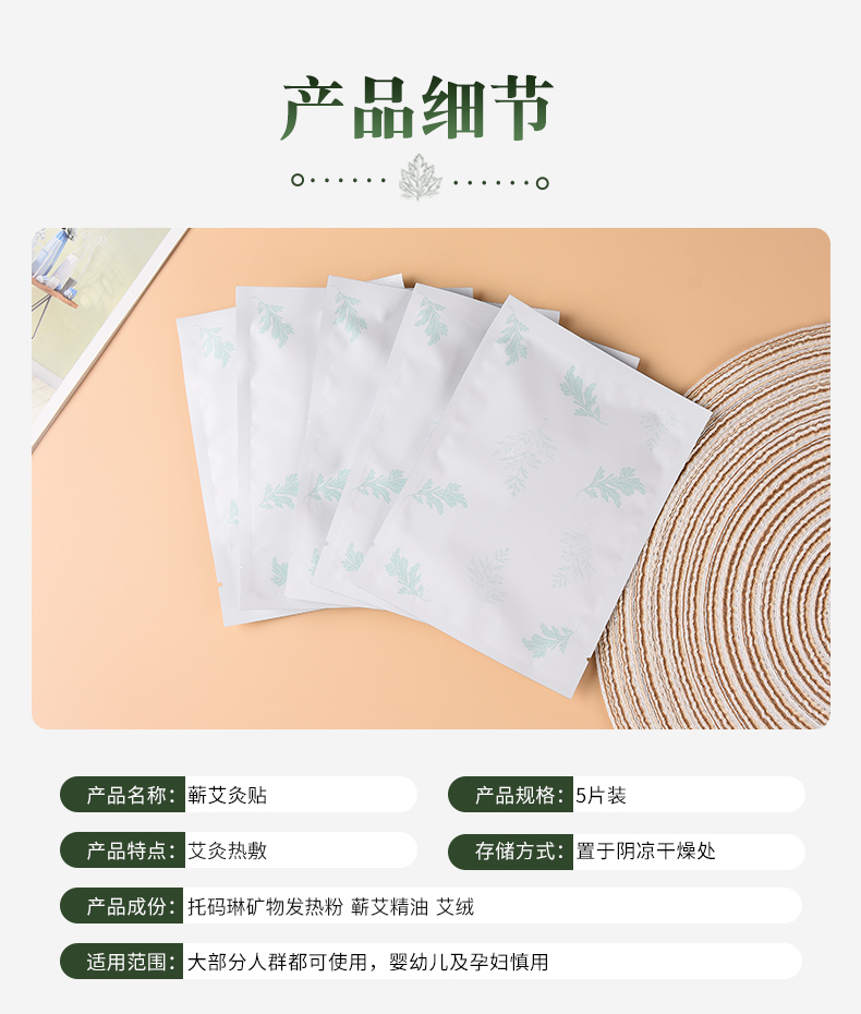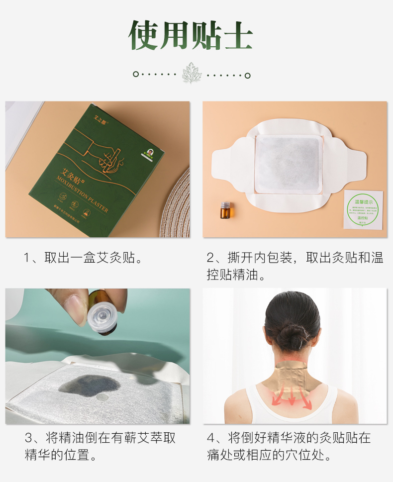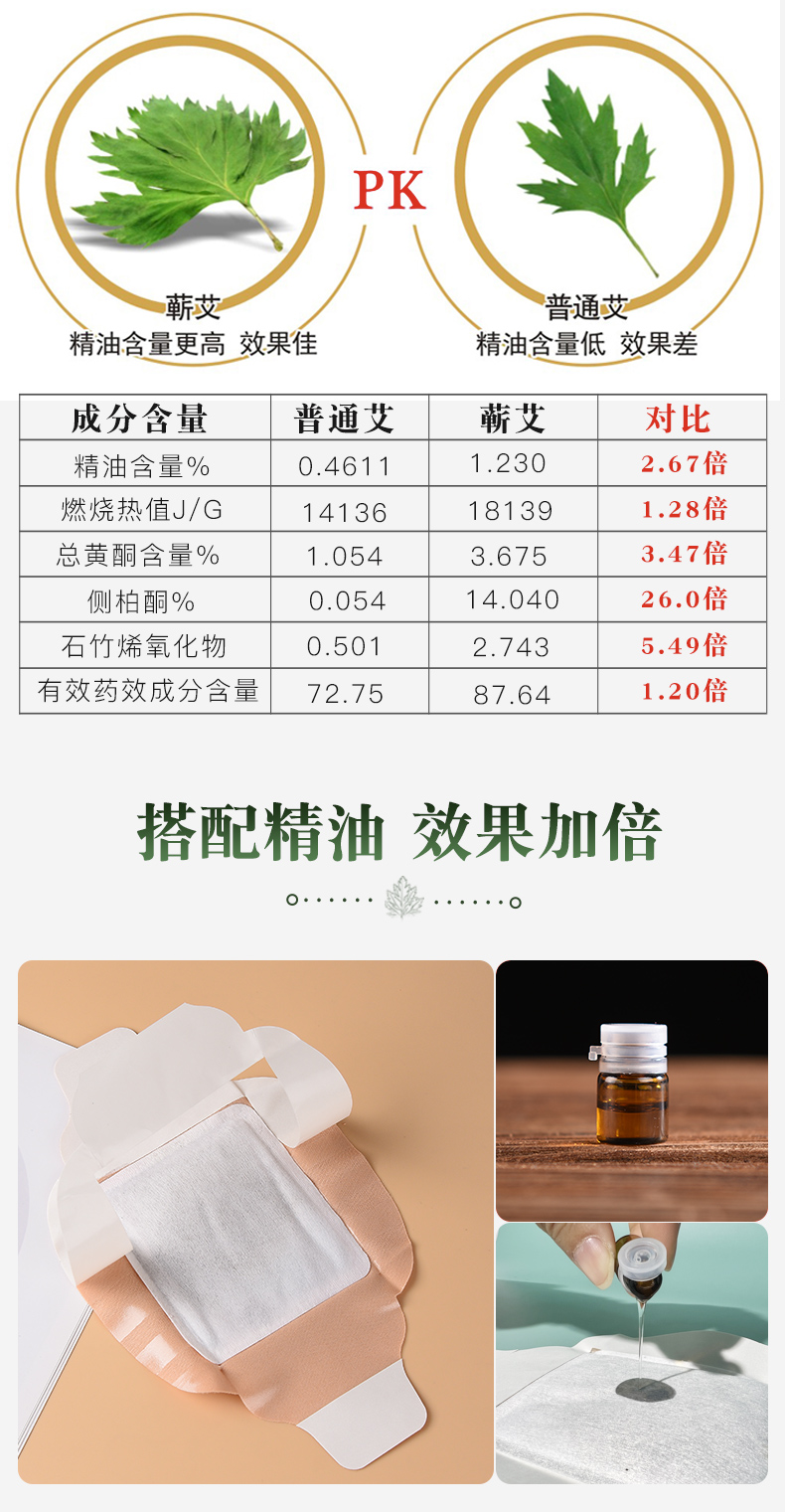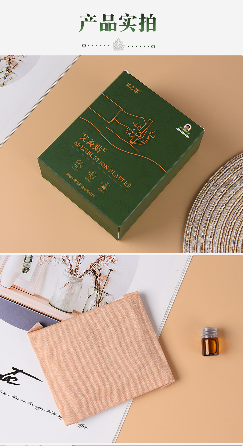 5盒装千年艾(艾之都)蕲艾灸贴每盒5片艾灸贴+5支精油合计25贴+25支精油 四翼弹力布款