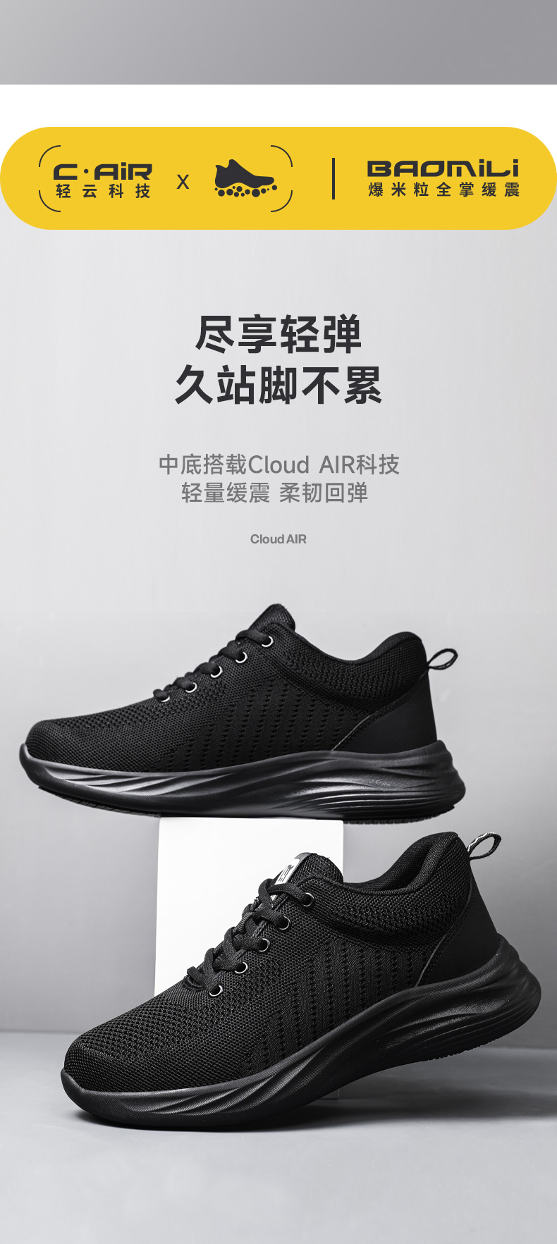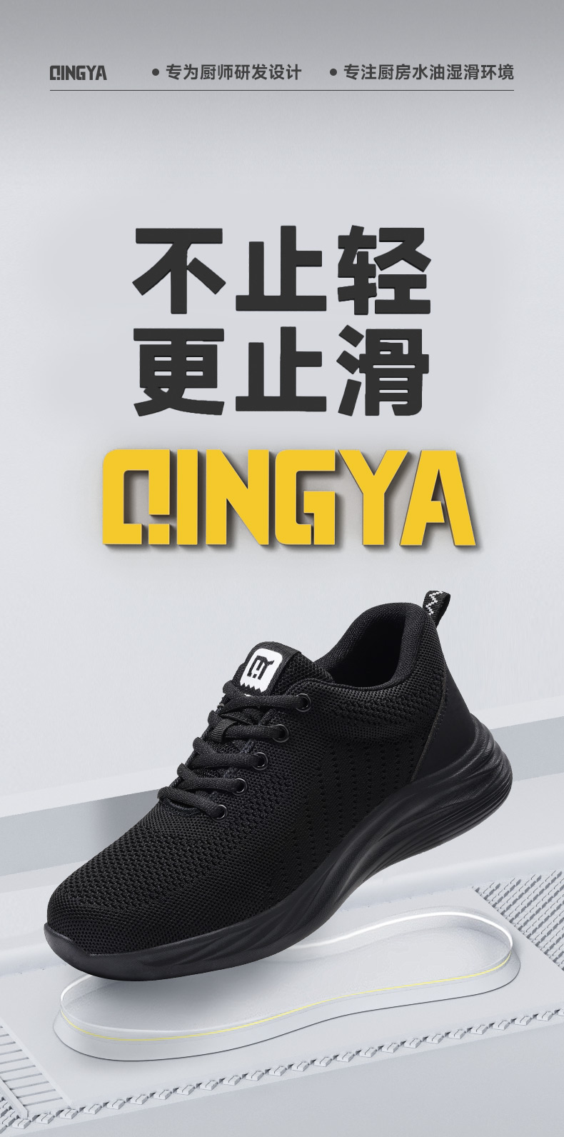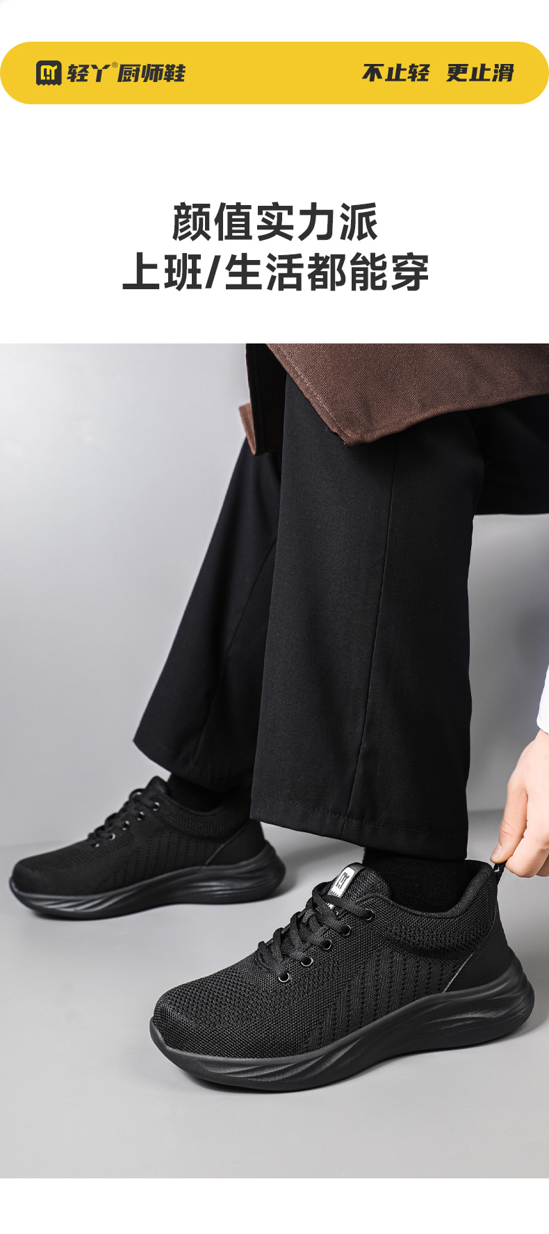 轻丫新款四季款厨师鞋防滑SRC无包头无中底实心底黑色低帮安全鞋