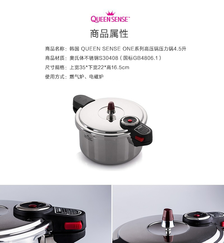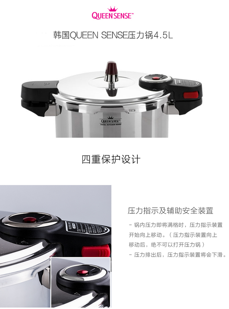 韩国原产QUEEN SENSE高压锅压力锅ONE系列4.5升