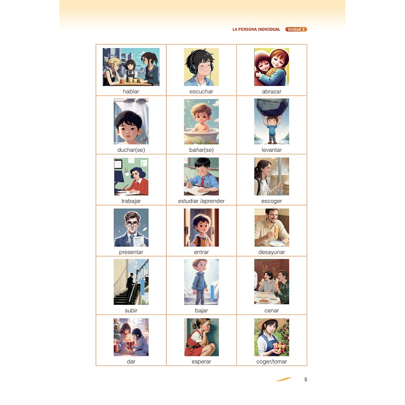 本教材针对西班牙语初学者的词汇教学用书。教材以不同的生活场景为主题,将西班牙语基础词汇进行分类和整理。通过不同形式(图片,例句,游戏,活动等)帮助学生在实际生活场景和西班牙语单词之间建立有效联系,进而提高学习单词的效率,能够在不同的语境下正确使用西班牙语单词。本教材分为十六章,主要涵盖了日常生活、学习、工作、娱乐、科技、文化等方面的主题内容。每一章涵盖一个主题内容。每章分为两个部分,第一个部分通过图片、简单的西班牙语词汇和例句等方式解释西班牙语词汇。第二个部分通过练习题、游戏和活动等方式帮助学生理解和巩固该章节词汇。此外,该教材同时融入中国传统文化和西班牙语国家的文化。在每章的词汇讲解部分,将中西方文化以词汇为桥梁,放在同一个平台进行比较。在每章的练习部分,利用不同的方式帮助学生用西班牙语讲好中国故事。