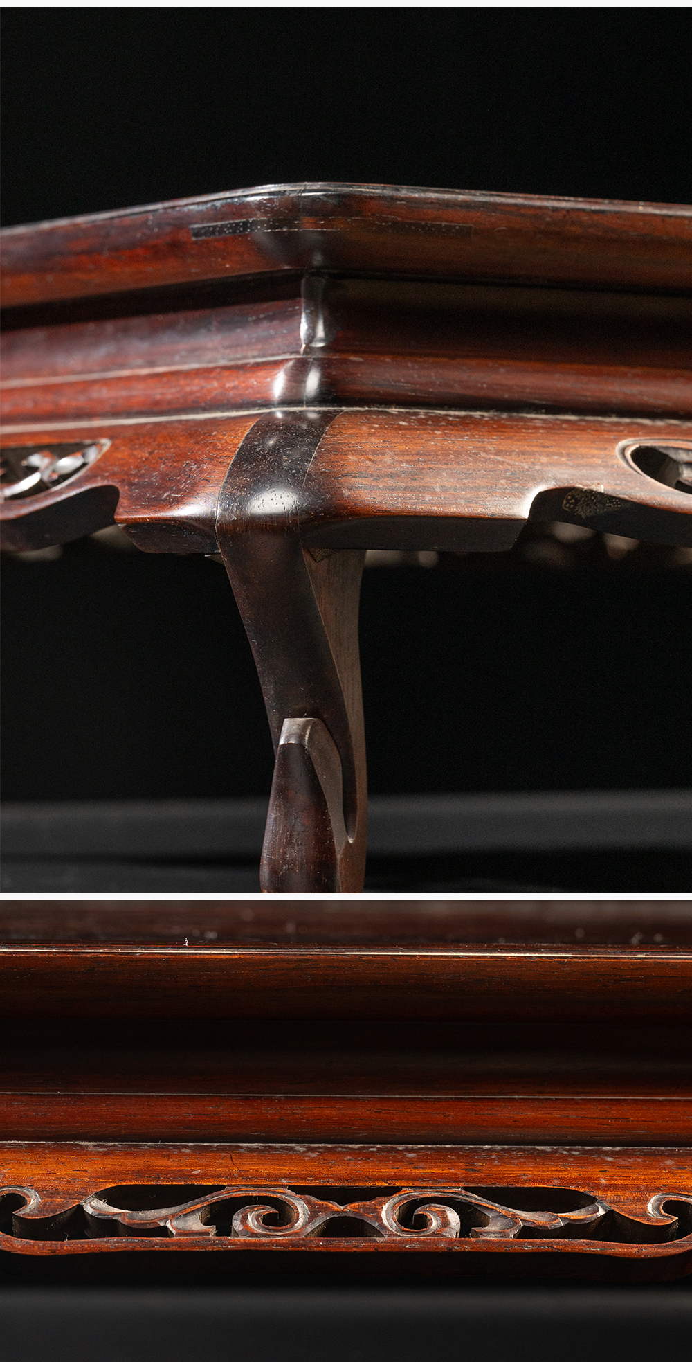 清 红木嵌瘿木百衲镶六角锦地画桌