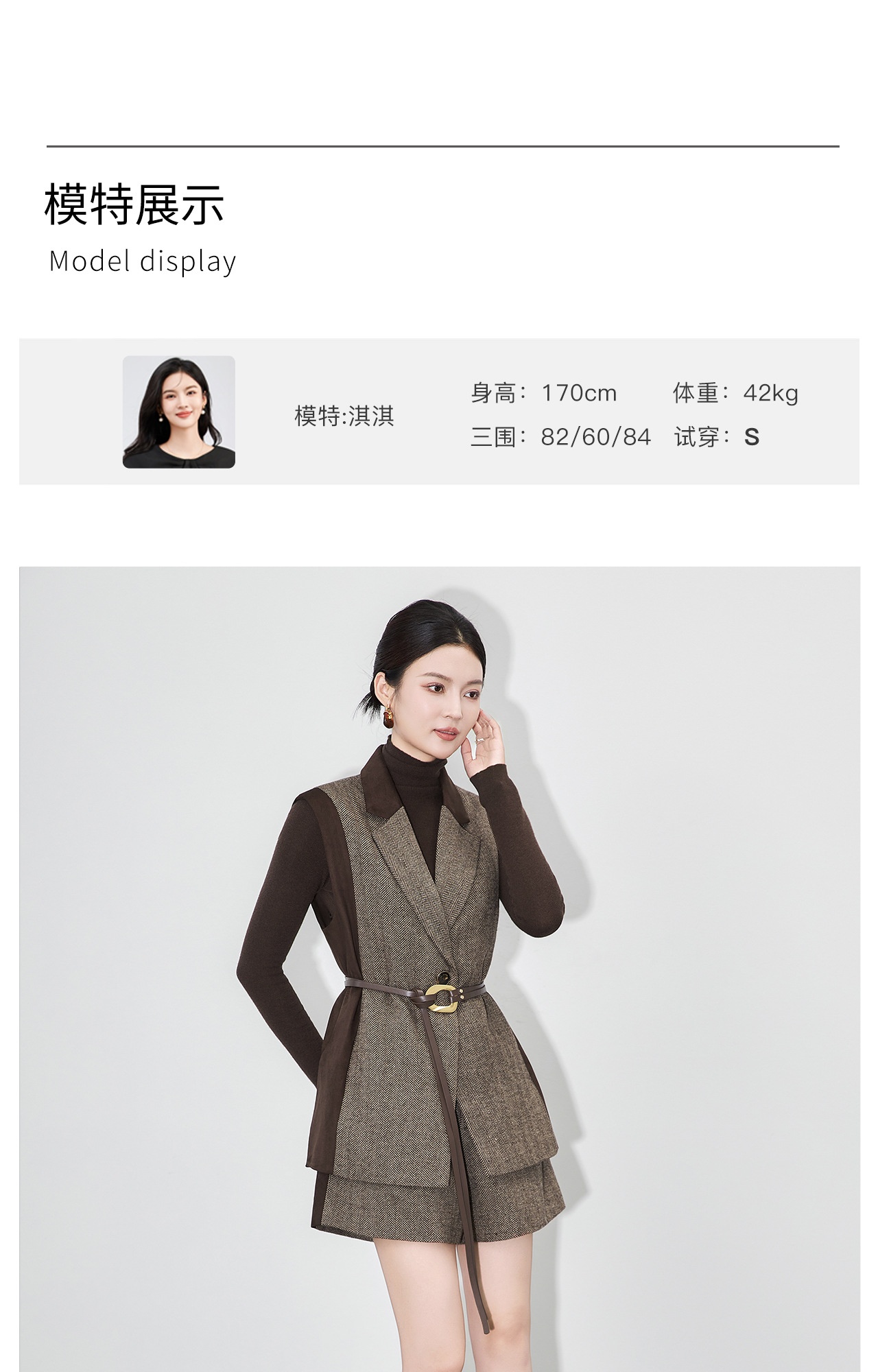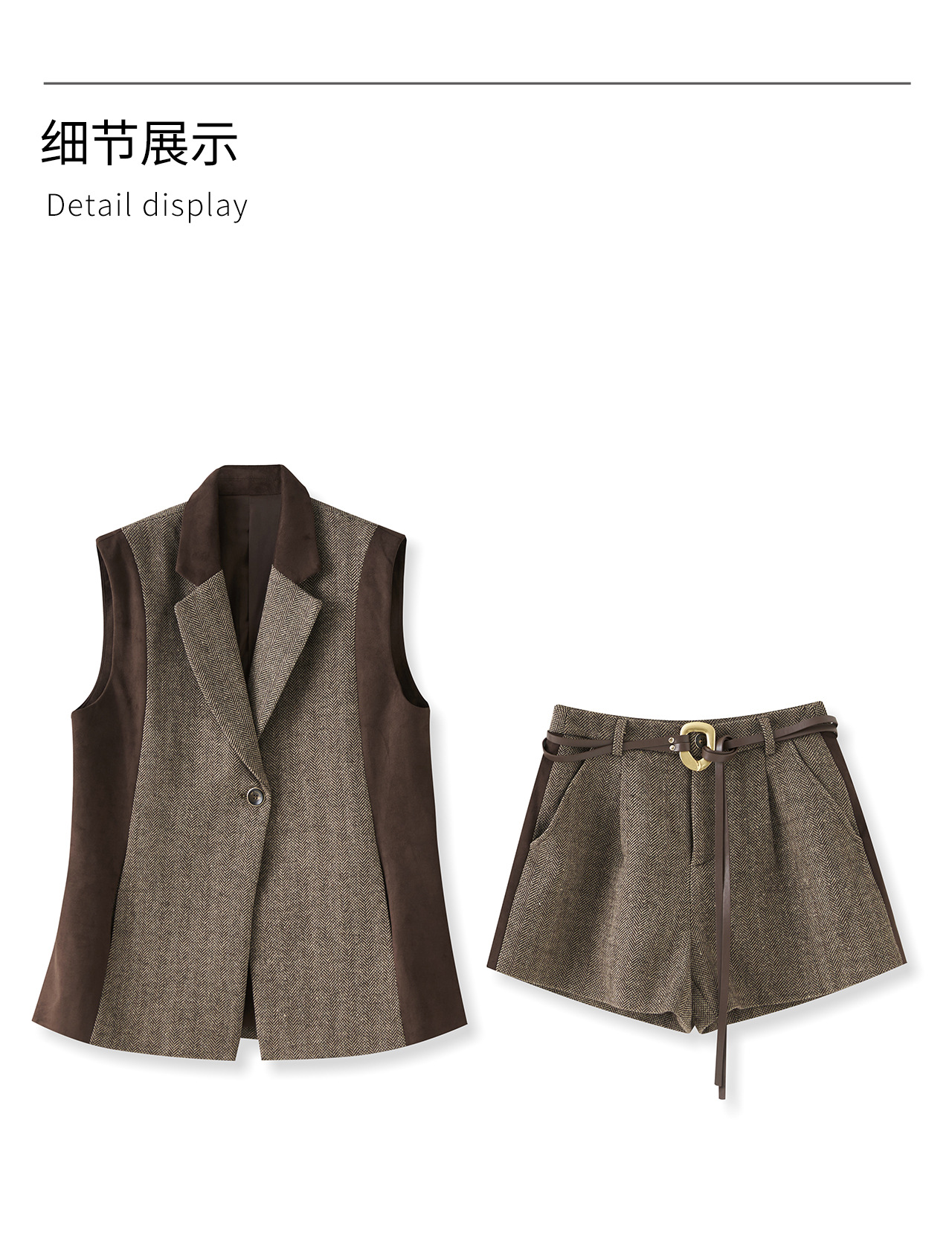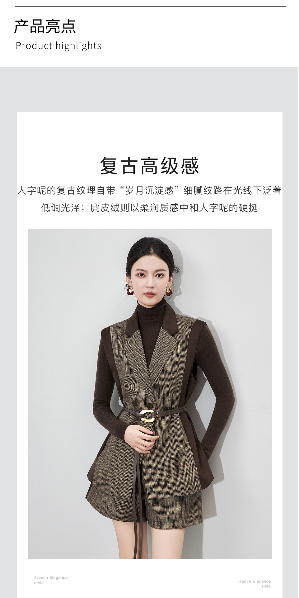 「高货wl」全新升级【铂金会员395/天猫529/差价134】(99117)洛诗琳2025秋季设计感毛呢拼接西装马甲阔腿短裤两件套