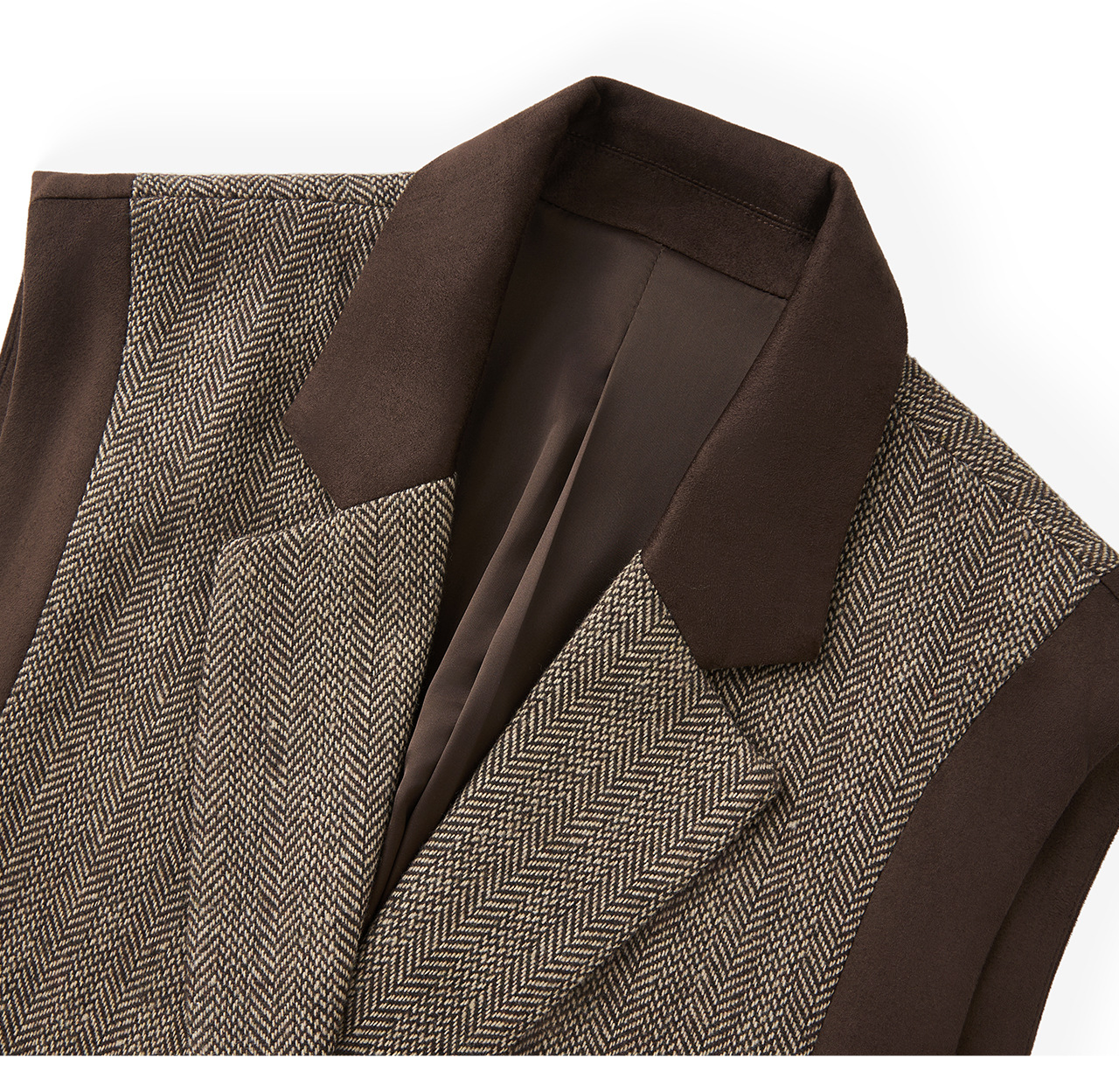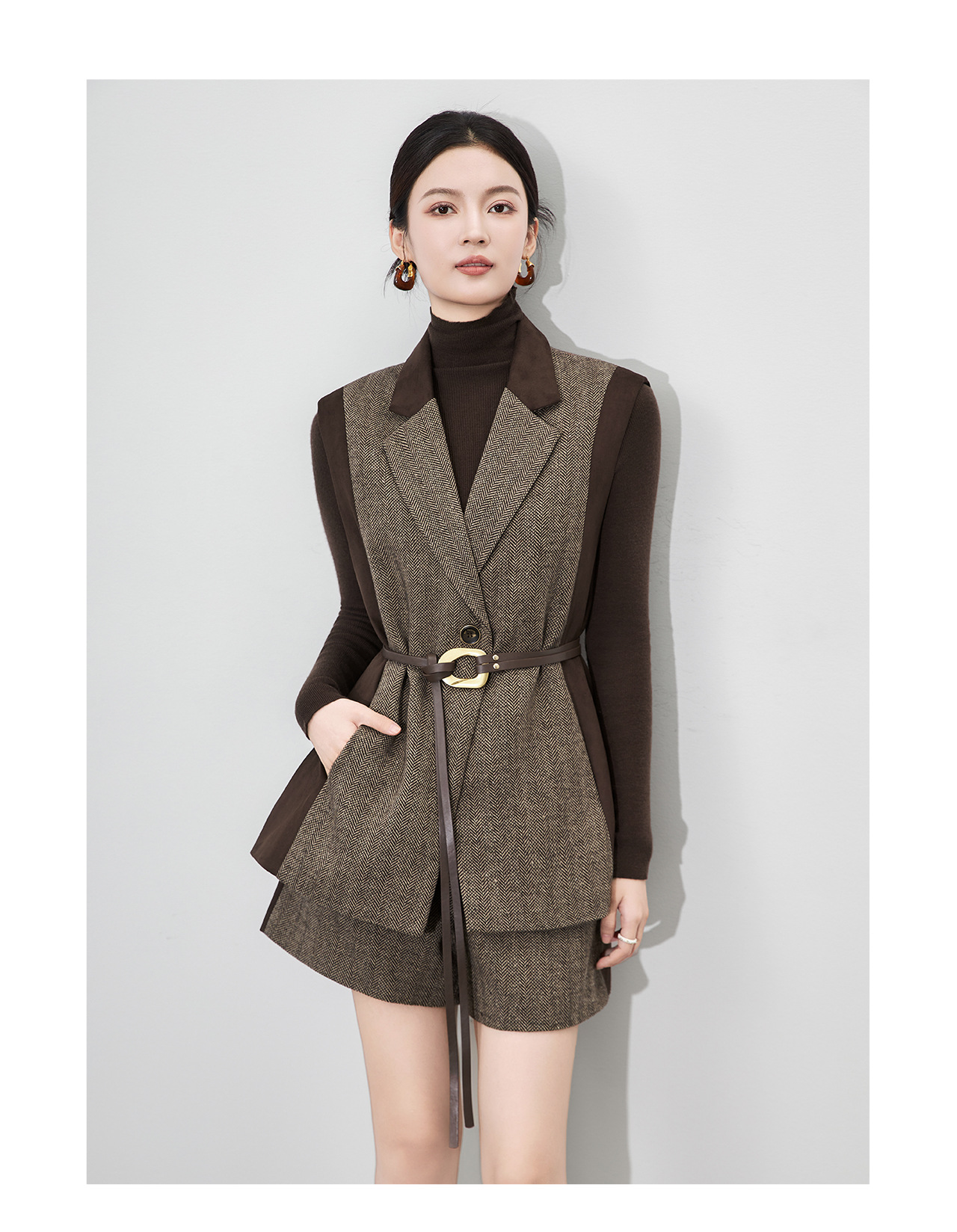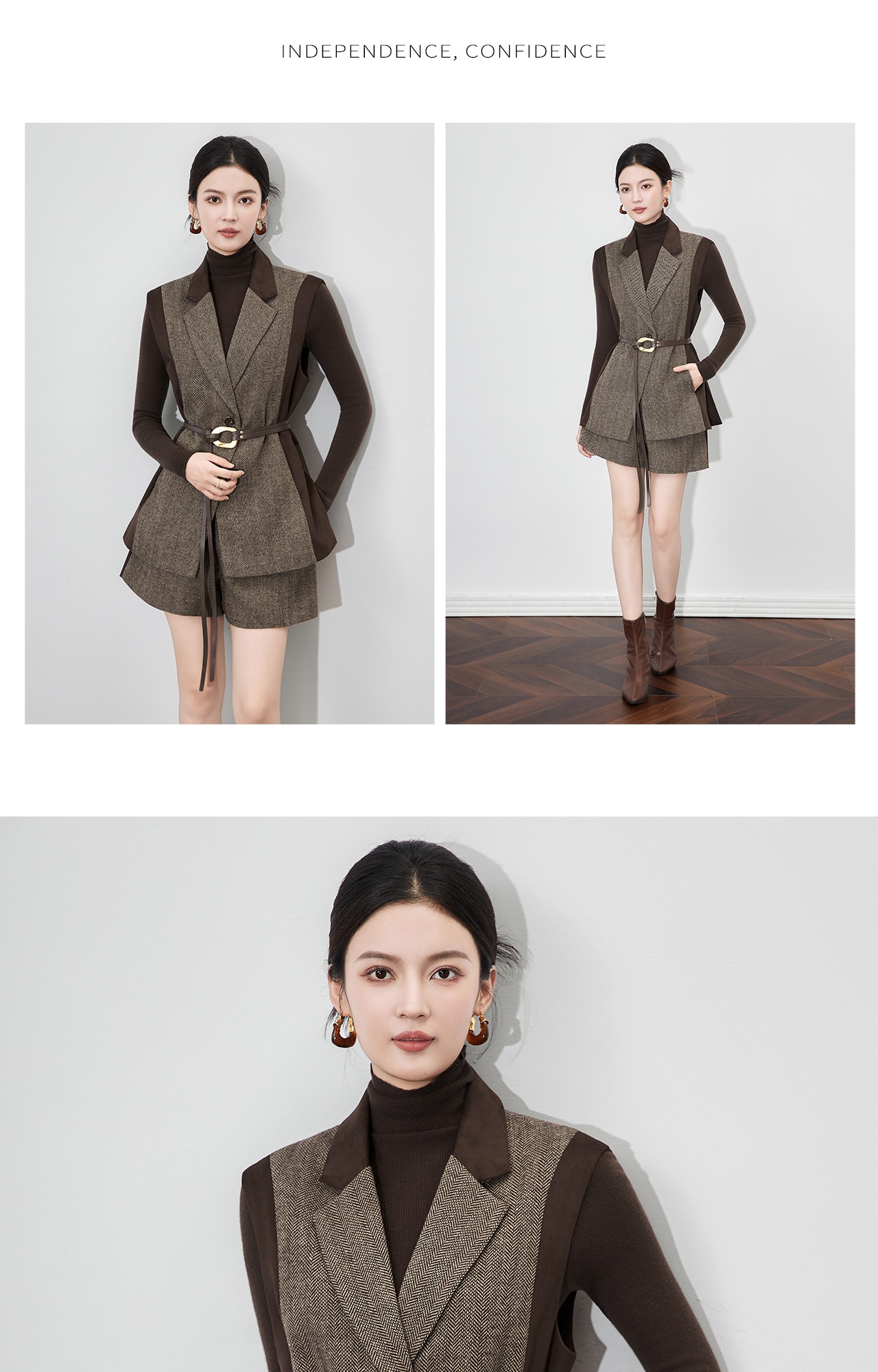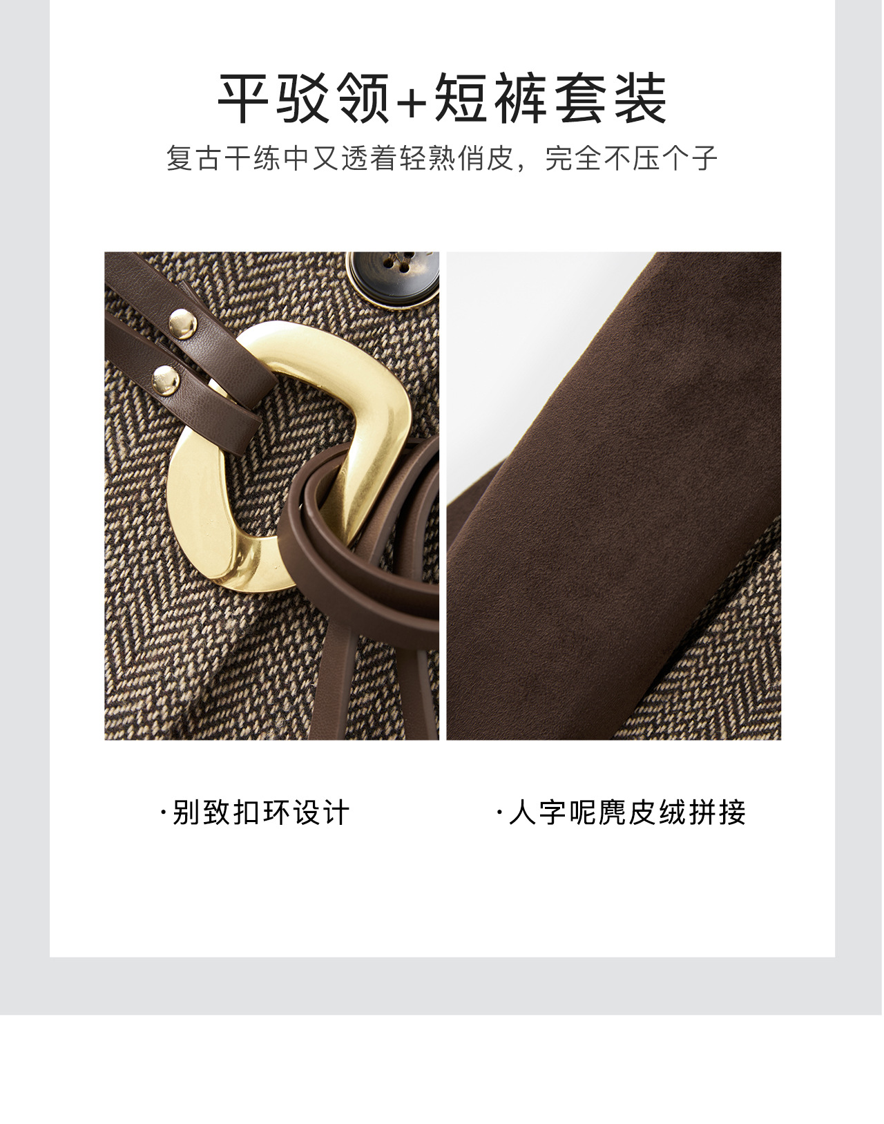 「高货wl」全新升级【铂金会员395/天猫529/差价134】(99117)洛诗琳2025秋季设计感毛呢拼接西装马甲阔腿短裤两件套
