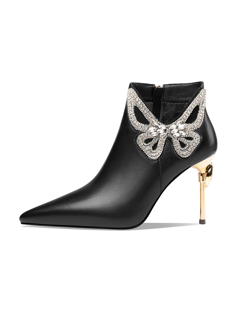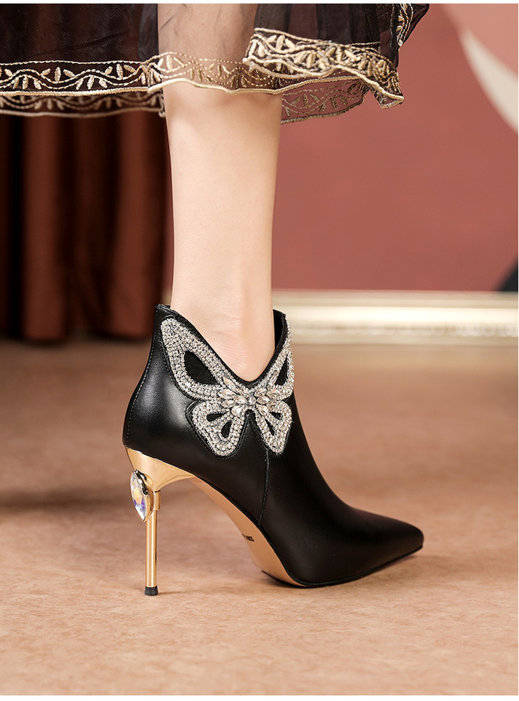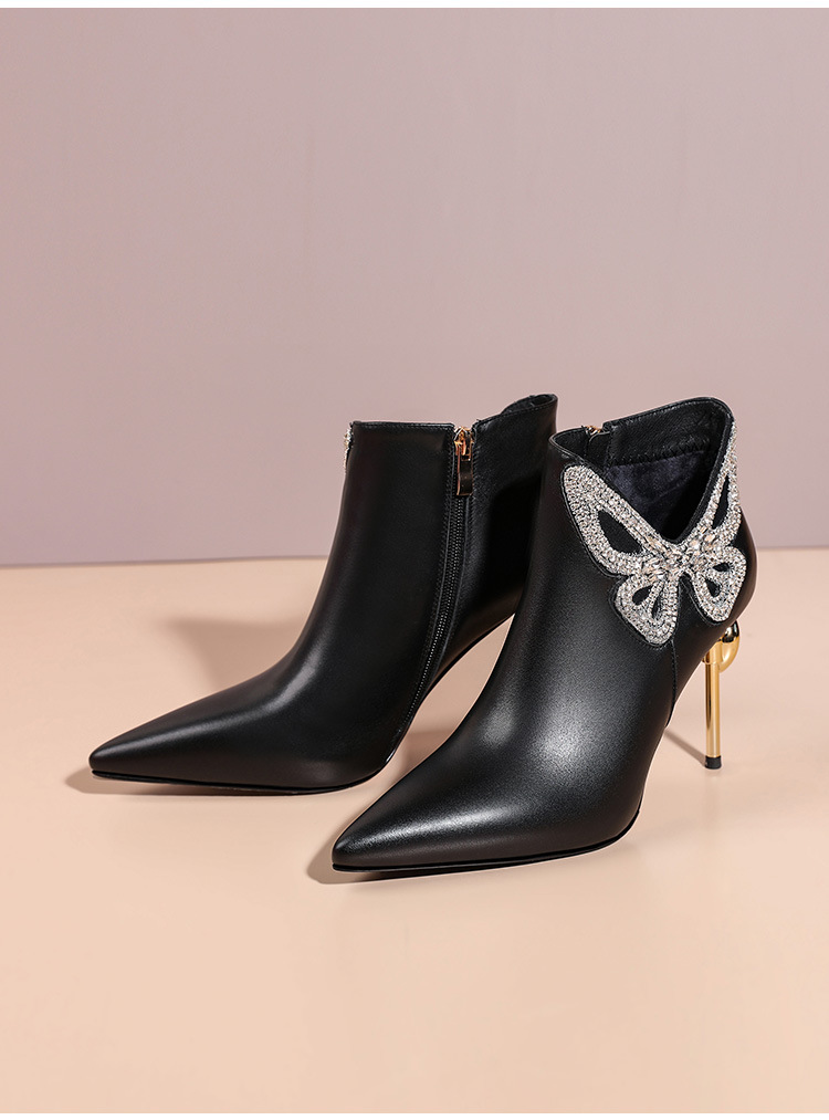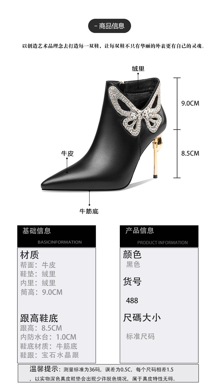 OLD488ddd新款时尚气质尖头蝴蝶水砖细高跟侧拉链短靴