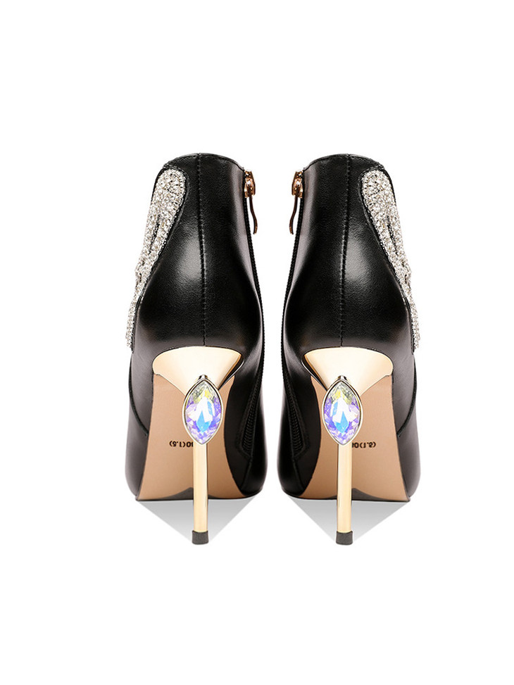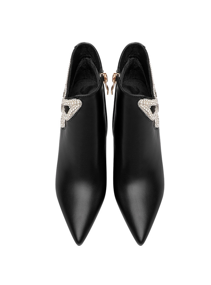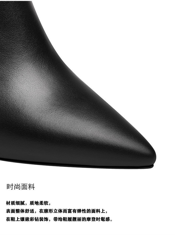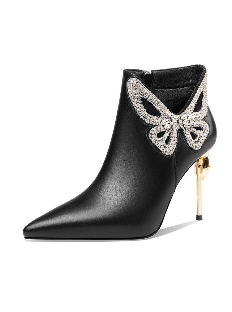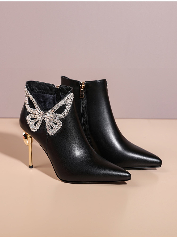 OLD488ddd新款时尚气质尖头蝴蝶水砖细高跟侧拉链短靴
