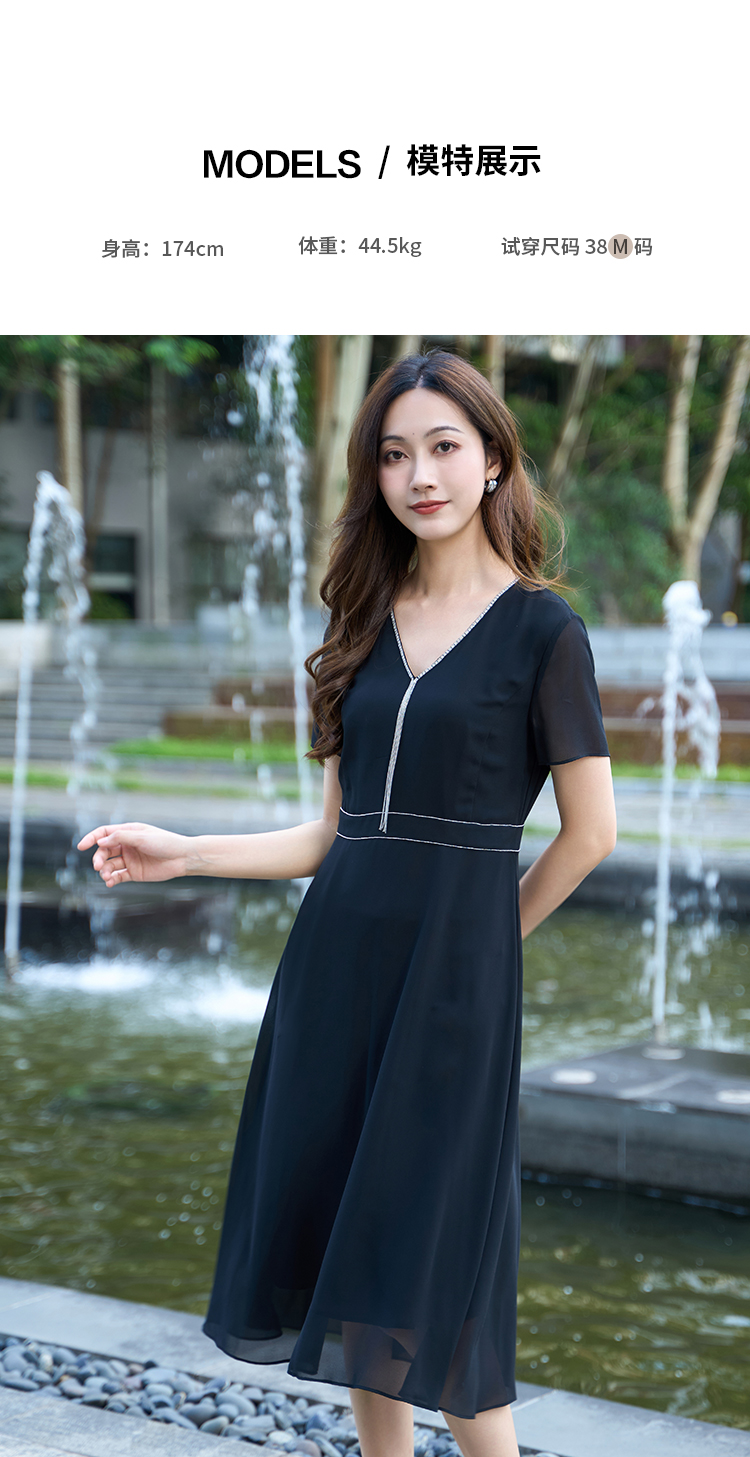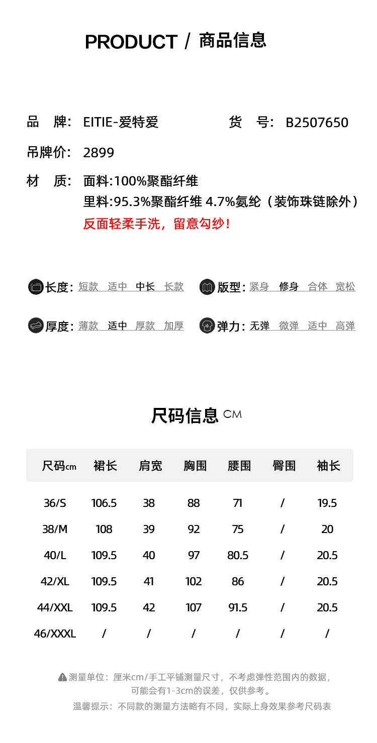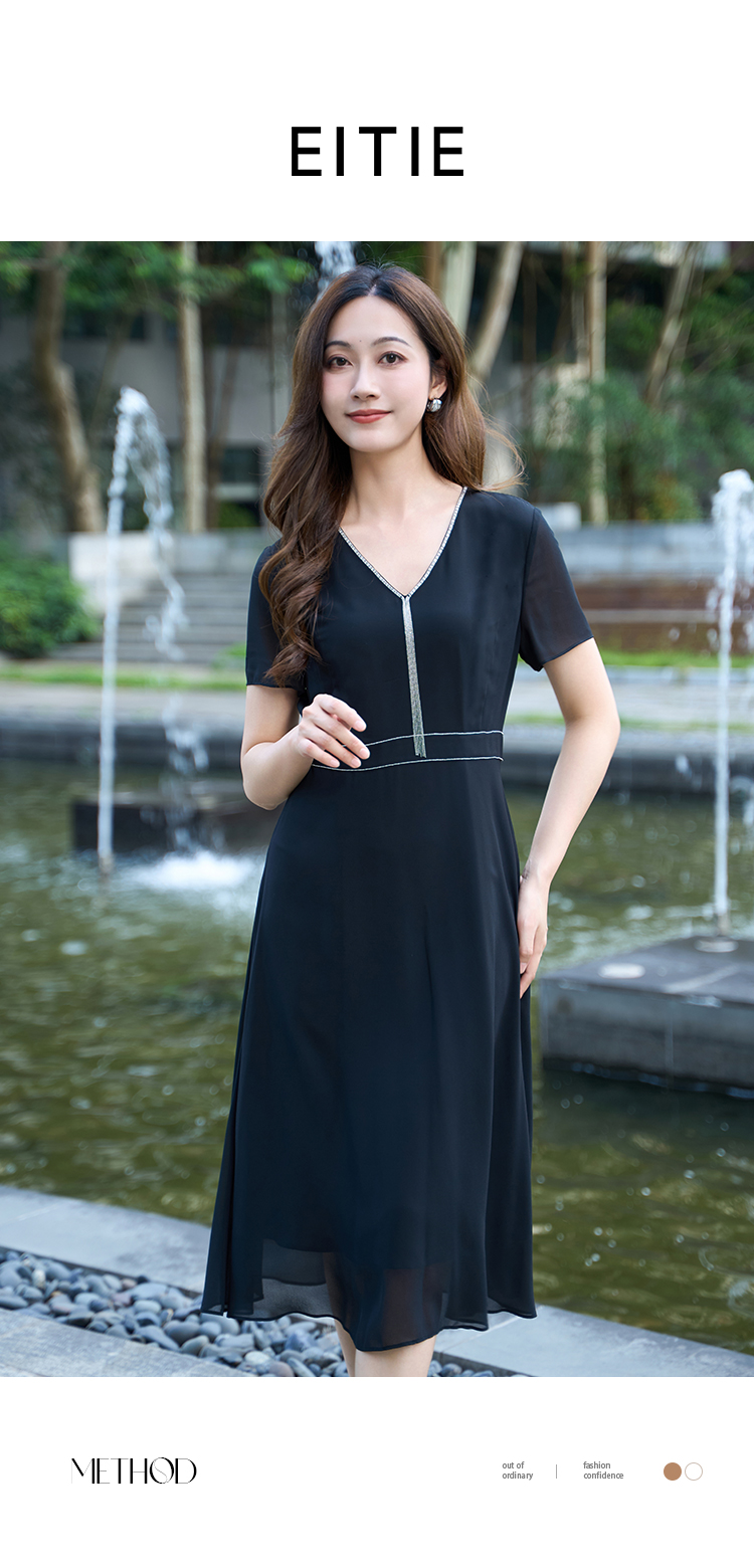 【流苏链条连衣裙】EITIE爱特爱V领优雅气质高腰礼服夏季新款B2507650