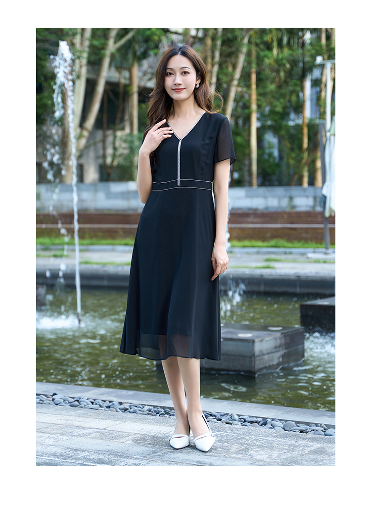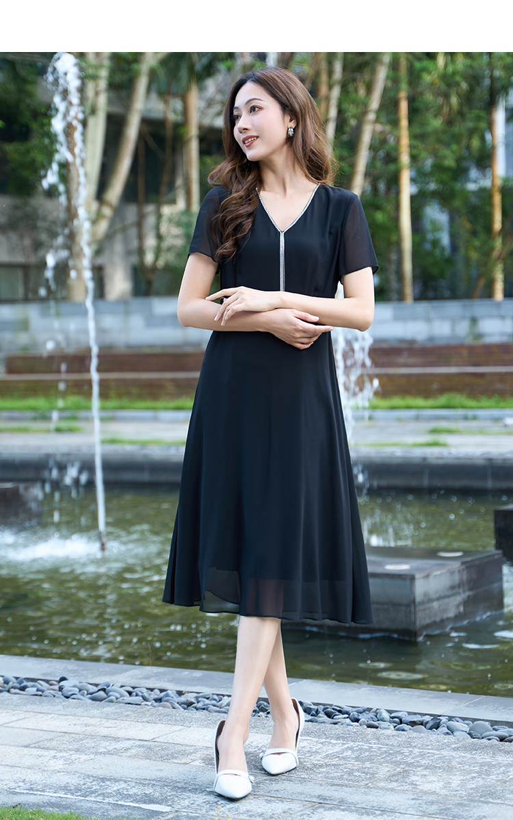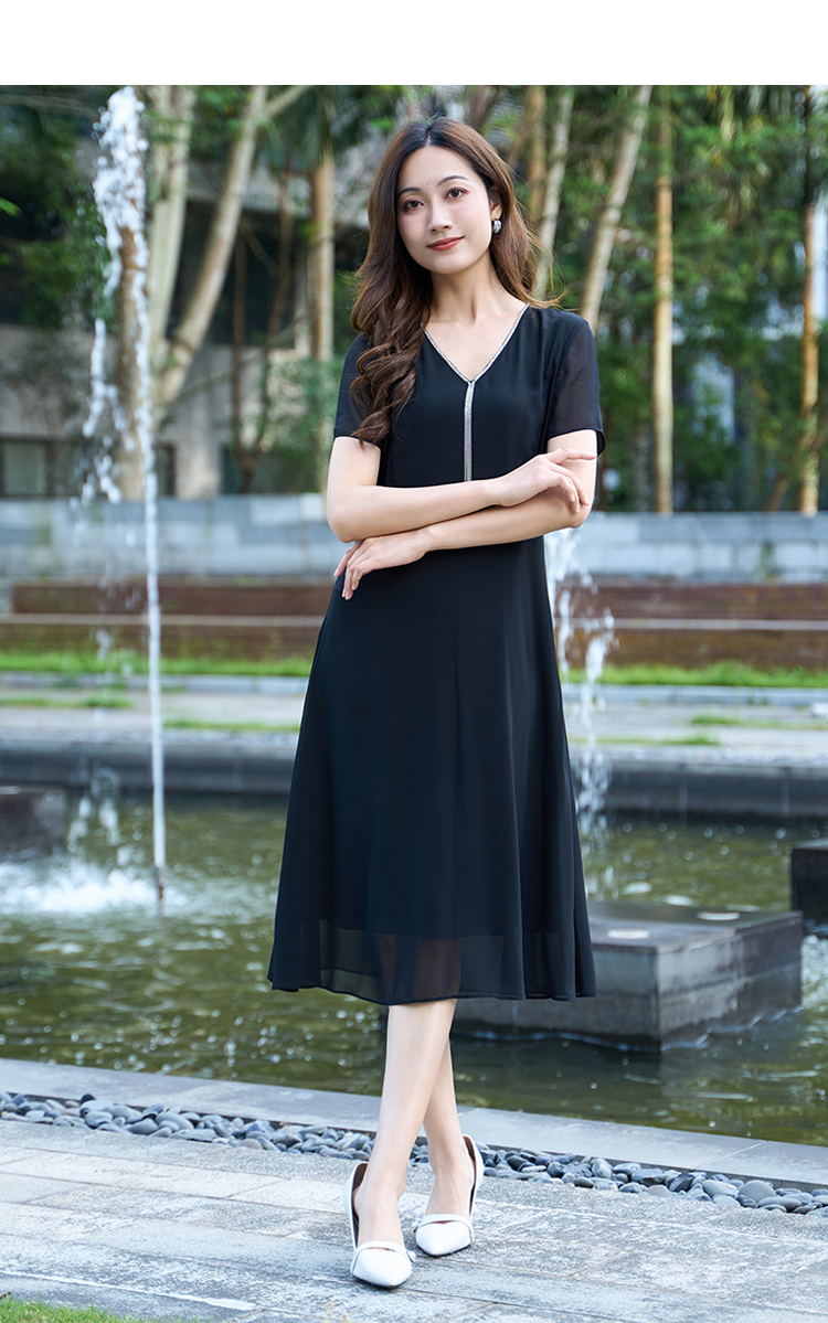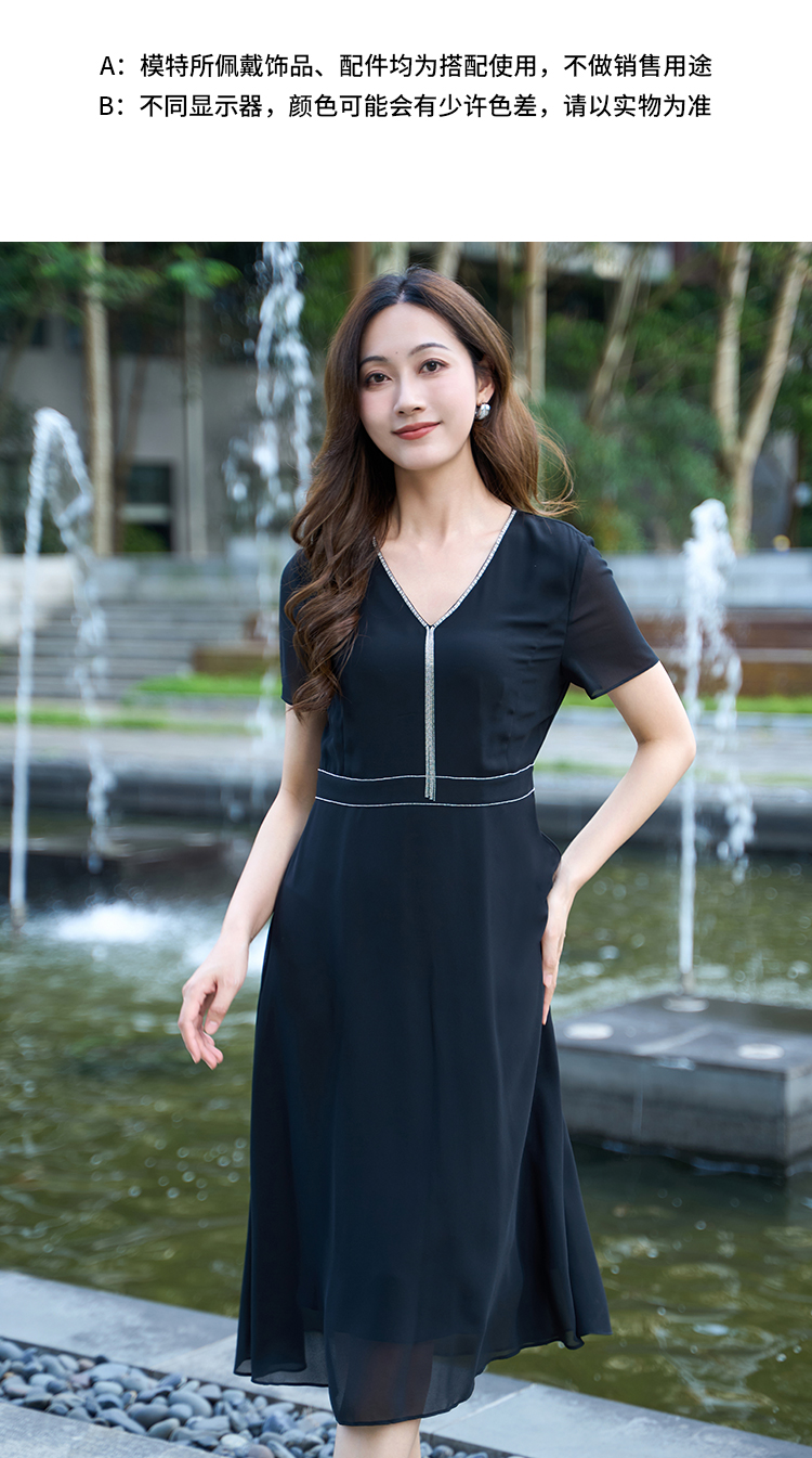 【流苏链条连衣裙】EITIE爱特爱V领优雅气质高腰礼服夏季新款B2507650