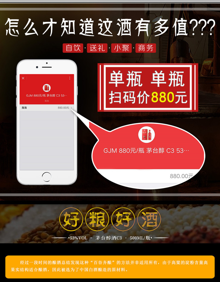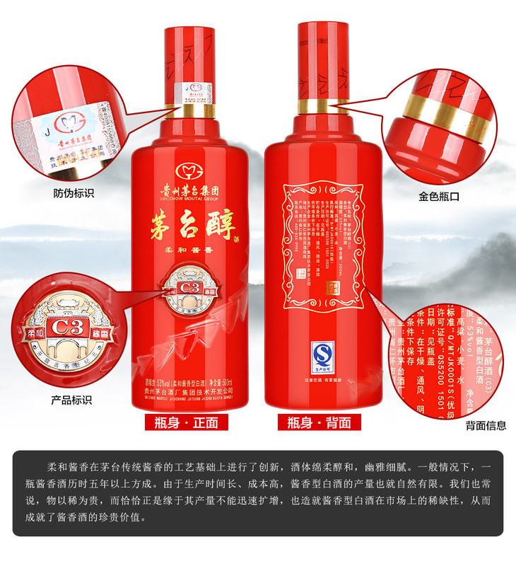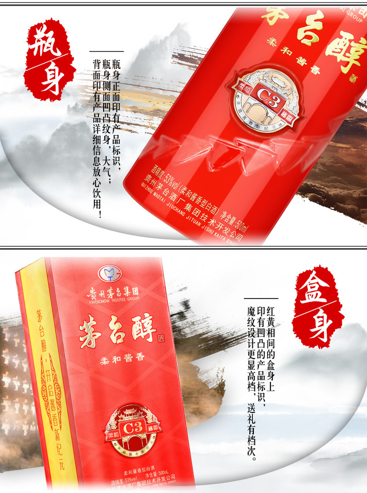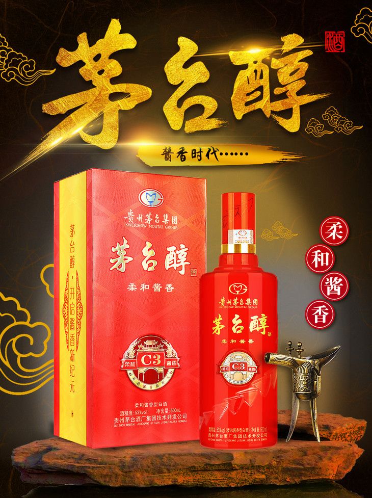 【推荐】贵州茅台集团 茅台醇C3柔和酱香型白酒 53度 500ml*6瓶