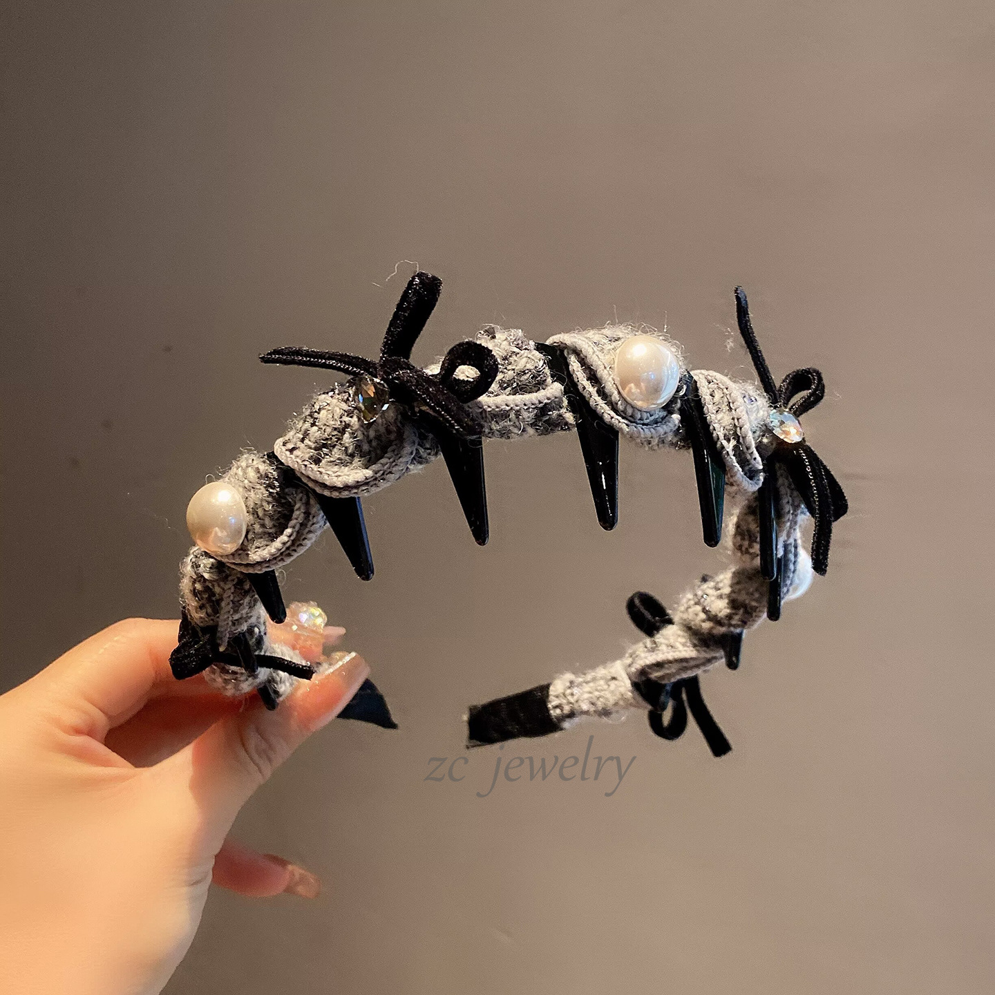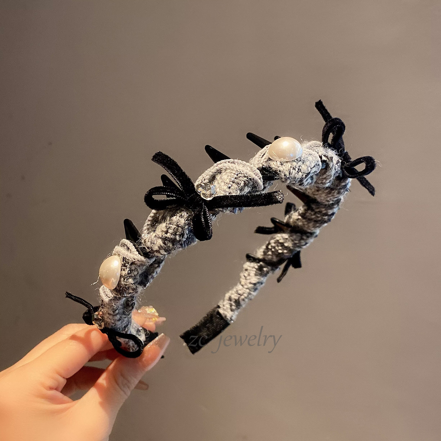丁摩 韩国东大门小香ins珍珠闪钻蝴蝶结发箍女时尚高颅顶外出发卡5ZF-293