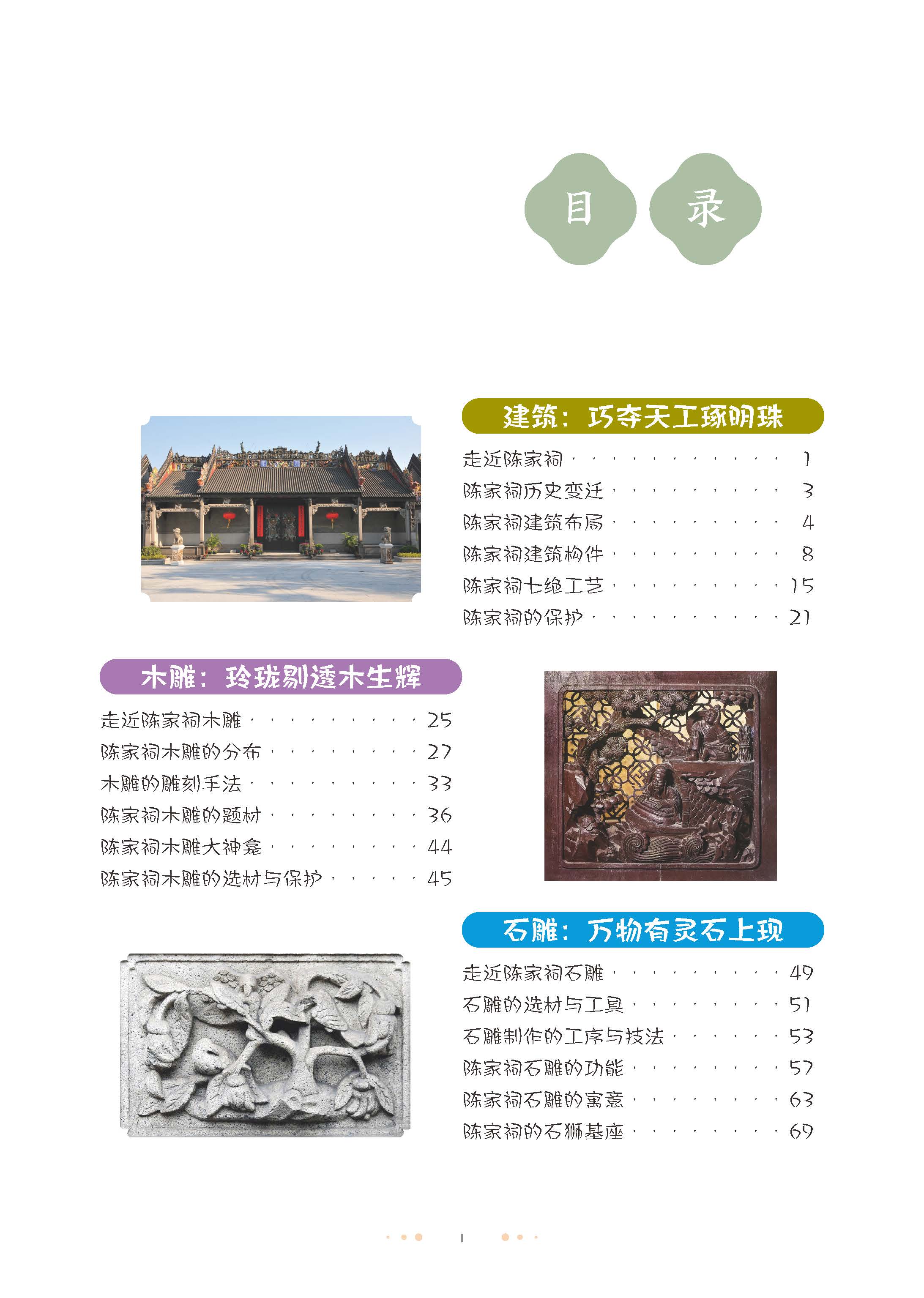 本书以陈家祠装饰工艺为核心内容,分建筑、木雕、石雕、砖雕、陶塑、灰塑、广彩、广绣、剪纸9个主题, 以图文并茂、 生动有趣的叙述方式, 陪伴公众走近传统建筑, 探秘民艺匠心, 领略岭南传统文化的独特魅力。