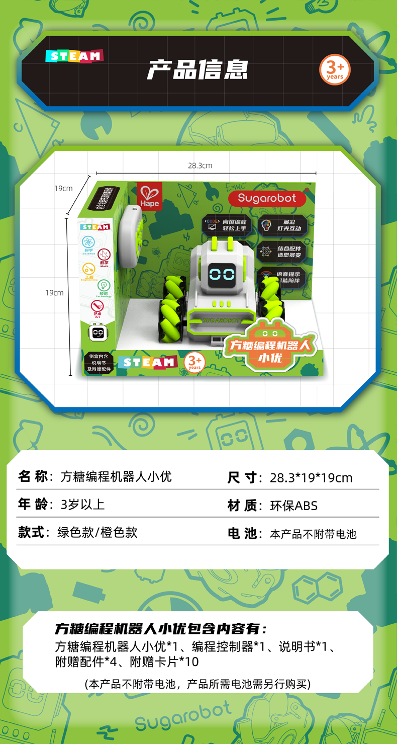 Hape方糖机器人儿童早教益智玩具编程启蒙智能STEAM教育男女孩3岁