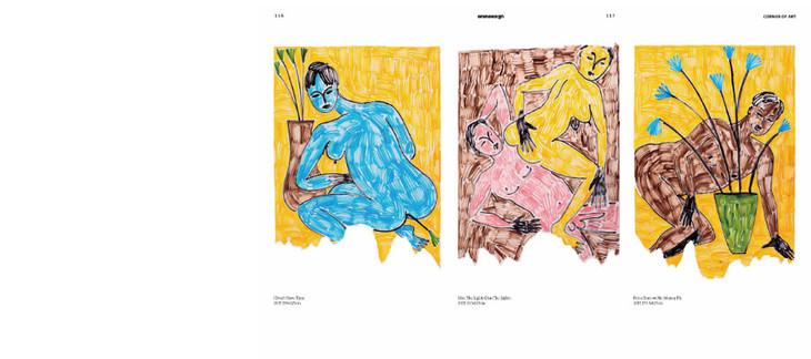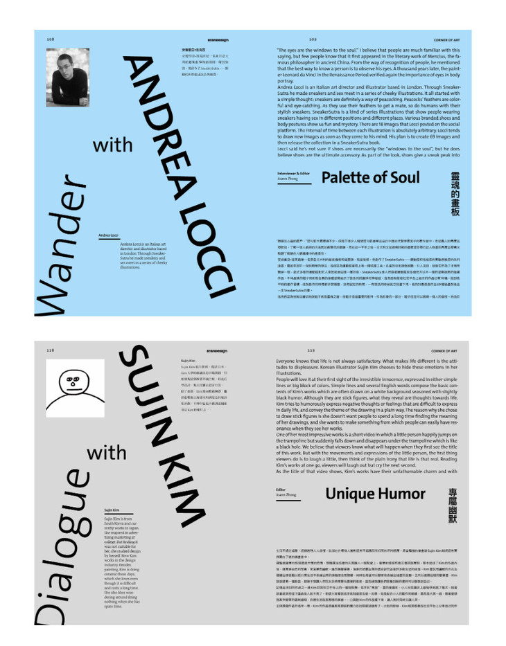 不仅如此在当下不少年轻、前卫的艺术家采访和作品我们也收录在其中,比如:自带流量的河井美咲,ins人气插画师Sujin kim,还有广为人知的瓜生太郎,等等.....他们给大家呈现了不一样的思潮与态度。
