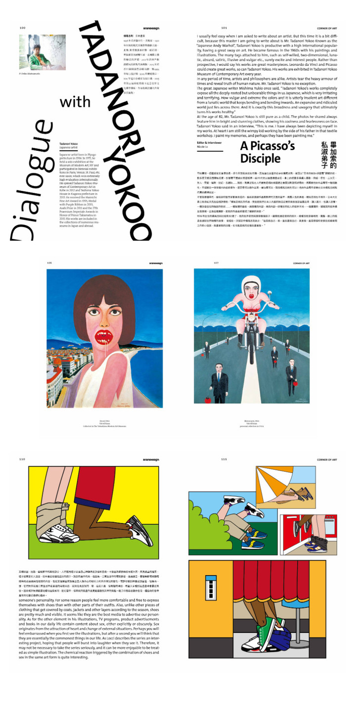 《BranD》No.42:“Nice To Meet Art 你好,艺术”,这一期呈现了众多艺术家的出色作品,例如:被冠以“日本的安迪-沃霍尔”的横尾忠则,始终前沿的“波点女王”草间弥生,万人爱戴的村上隆。在艺术市场生存非常艰难,要想在这其中获得一席之地就更加不容易,这些艺术家为年轻一代树立了榜样,他们通过不断思考、坚持做自己,终于获得属于自己的天地。