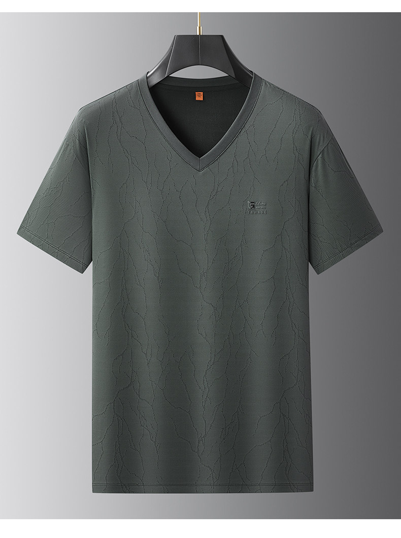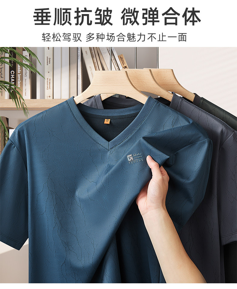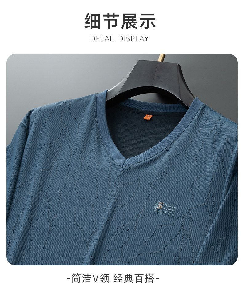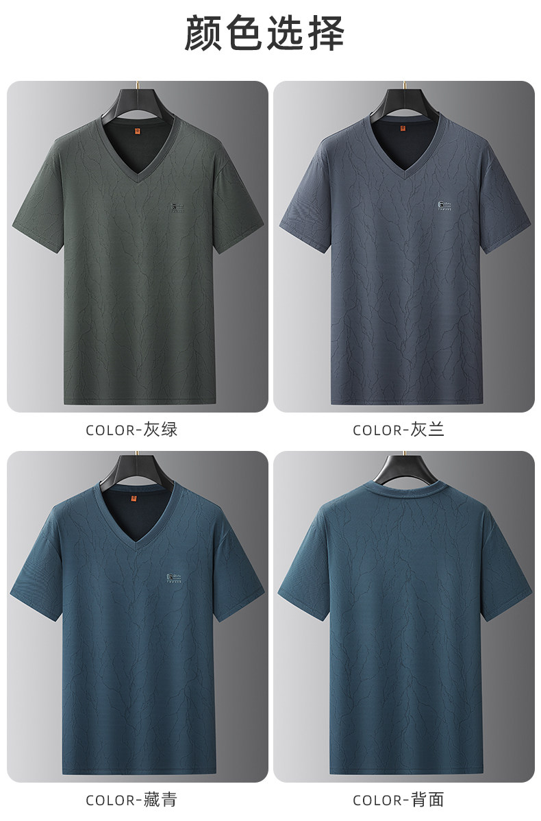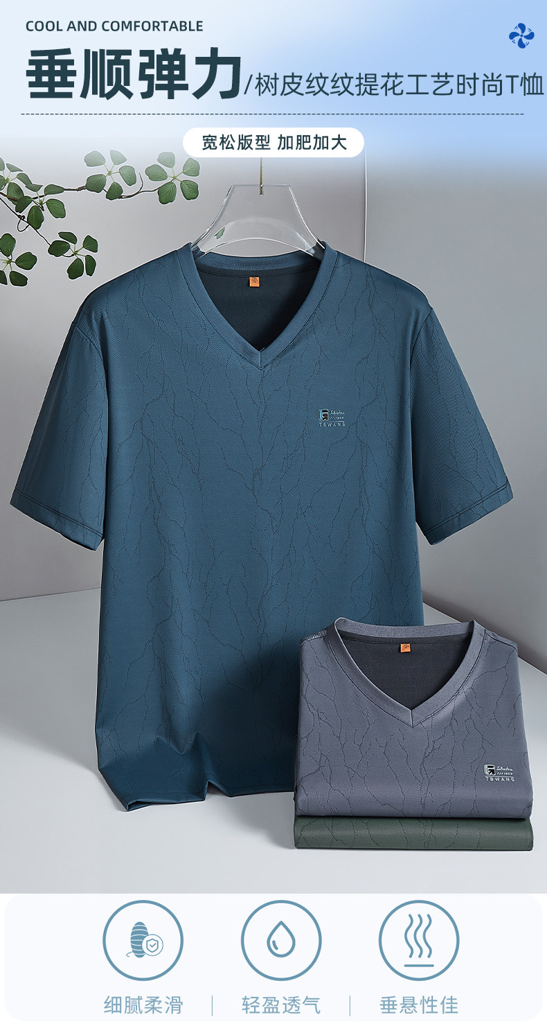 【DWP】大依优型大码男装夏季冰丝V领短袖T恤透气休闲商务百搭上衣男士