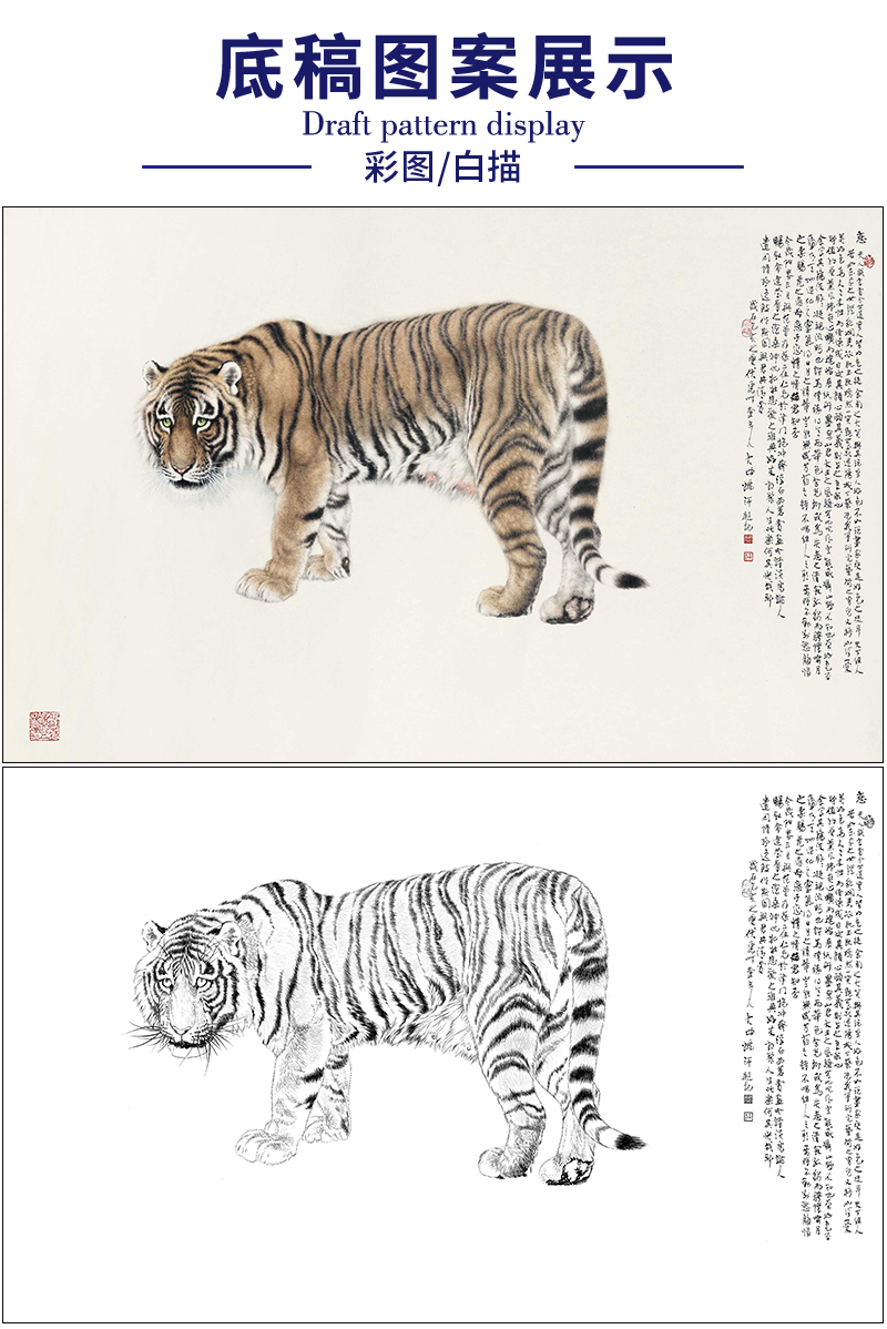 冯大中 老虎 工笔画白描底稿《恋》动物临摹勾线高清打印稿DZ15
