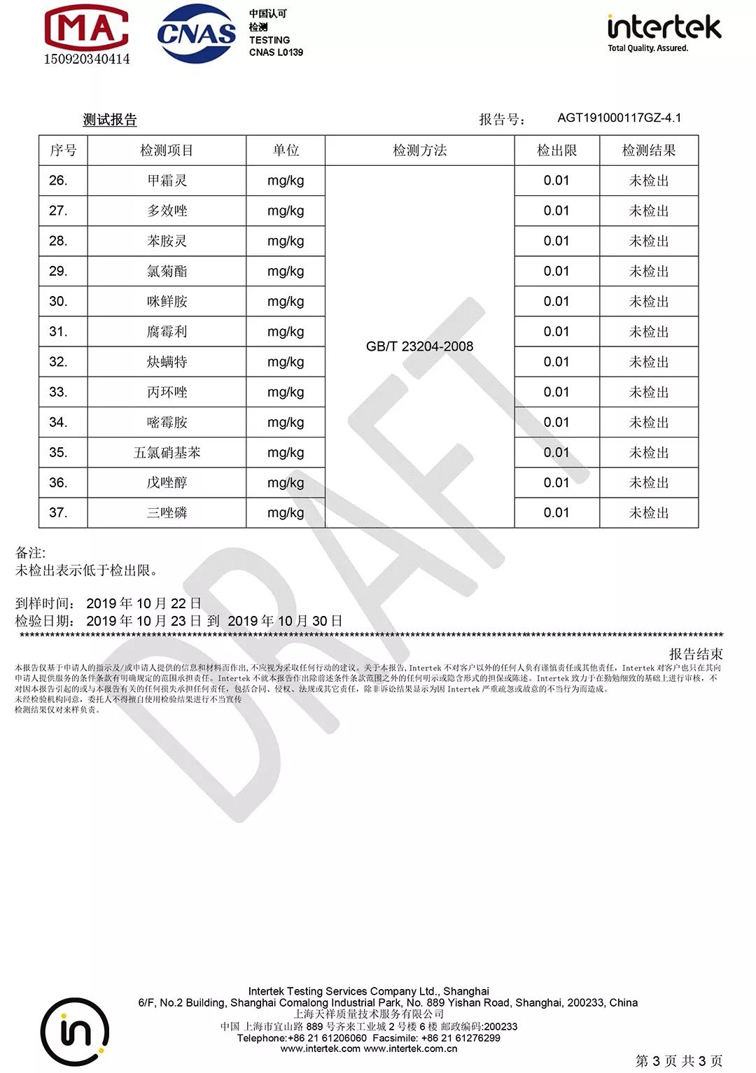 经权威机构检测合格,农残检测全部未检出