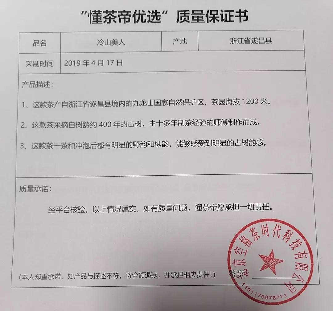 懂茶帝质量保证书,点击可查看大图