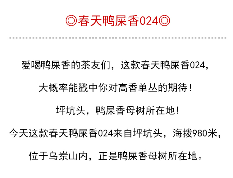 茶香记 春天鸭屎香024坪坑头好原料 好工艺 绵柔顺口春日品饮宜藏宜喝