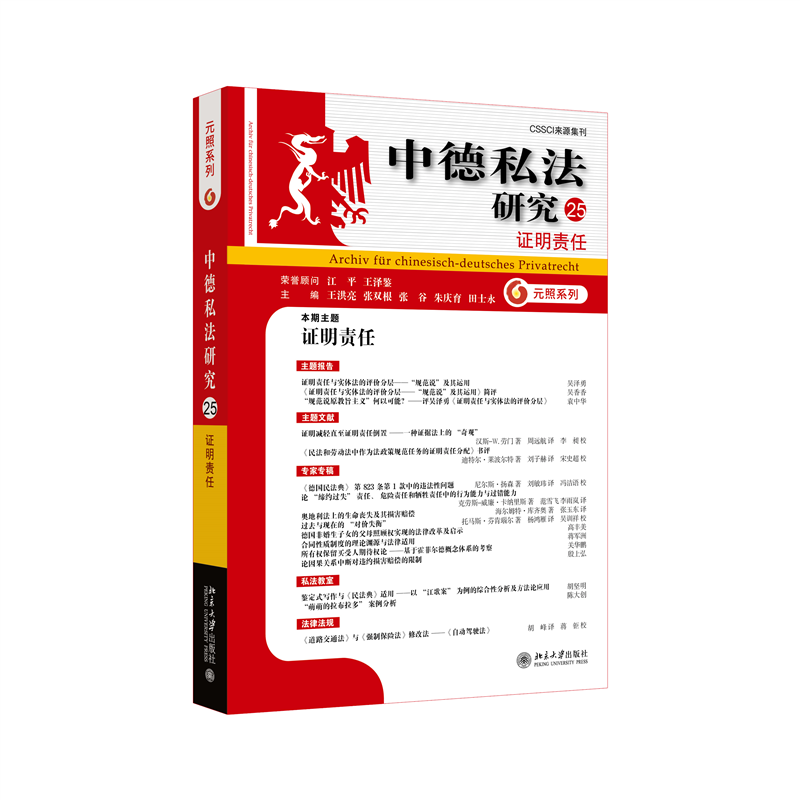 本卷为《中德私法研究》第25卷。 本卷主题为证明责任,旨在推进民法学证明责任的本土教义学建构,促进实体法与程序法之间的交流。第一部分为主题报告,共收纳三篇文章,一篇为主题报告《证明责任与实体法的评价分层——“规范说”及其运用》,另外两篇为对前述主题报告的评议文章。第二部分为主题文献,围绕前述主题报告,组织了两篇相关比较法文献的翻译,选材以经典、贴合为标准,分别为《证明减轻直至证明责任倒置——一种证据法上的“奇观”》《〈民法和劳动法中作为法政策规范任务的证明责任分配〉书评》,旨在进一步深化证明责任方面的研究。第三部分为专家专稿,包括《〈德国民法典〉第823条第1款中的违法性问题》《过去与现在的“对价失衡”》《 论“缔约过失”责任、危险责任和牺牲责任中的行为能力与过错能力》《合同性质制度的理论渊源与法律适用》等。第四部分为“法律法规”,收纳《德国自动驾驶法》。