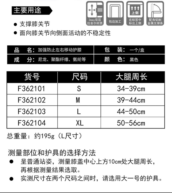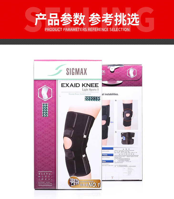 【日本进口SIGMAX】重度护膝EXAID KNEE LTS 3黑色透气男女运动日本进口日本护具品牌Sigmax 加强防止左右移动护膝 EXAID KNEE Light Sports3