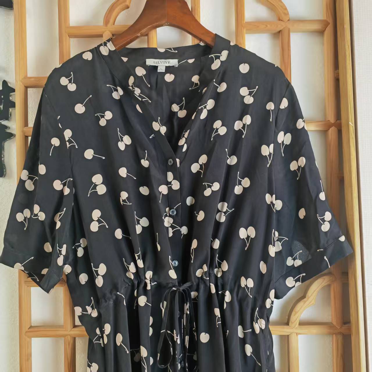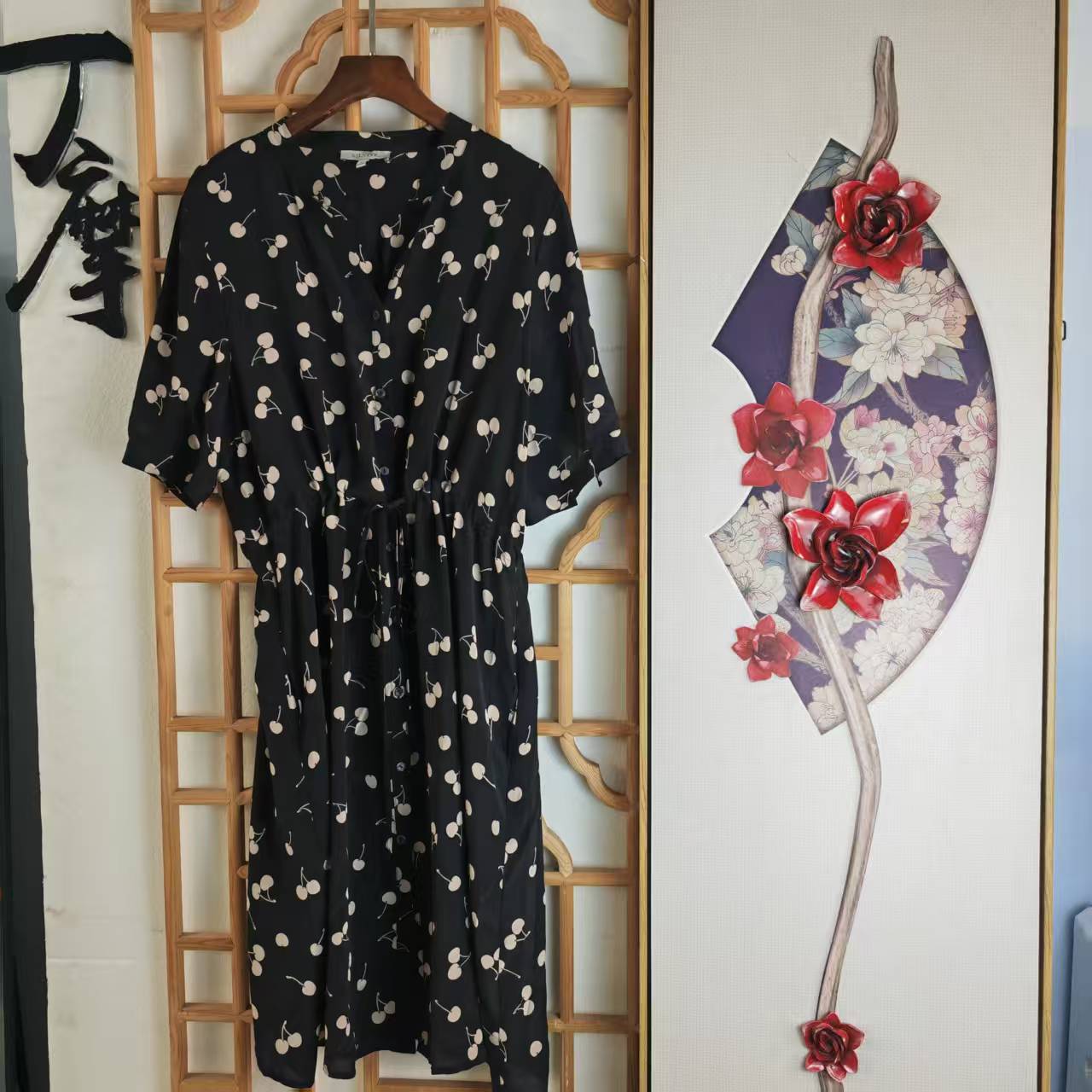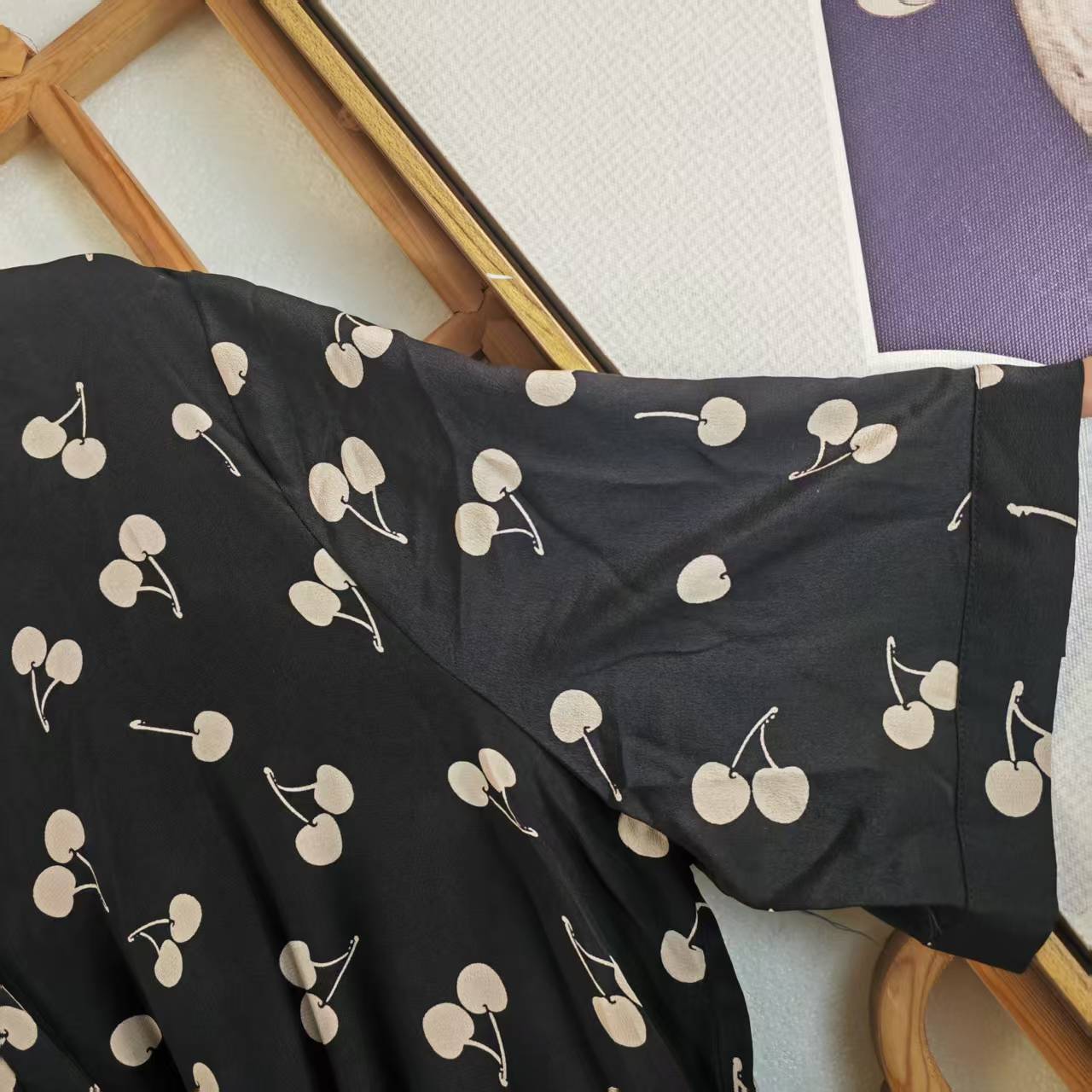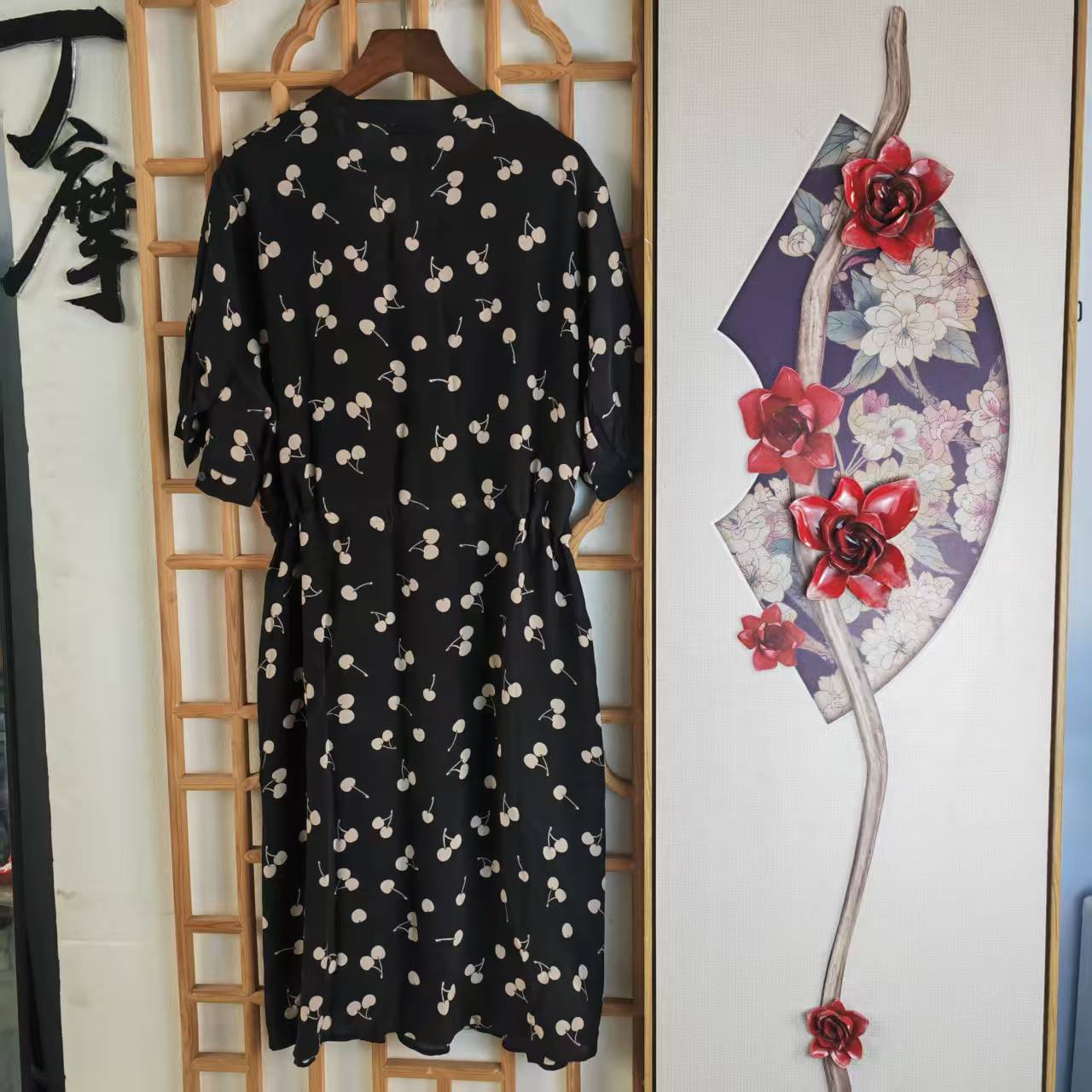 仅一件!【低价清仓】L码 樱桃印花桑蚕丝减龄系带收腰显瘦连衣裙ZFYY020