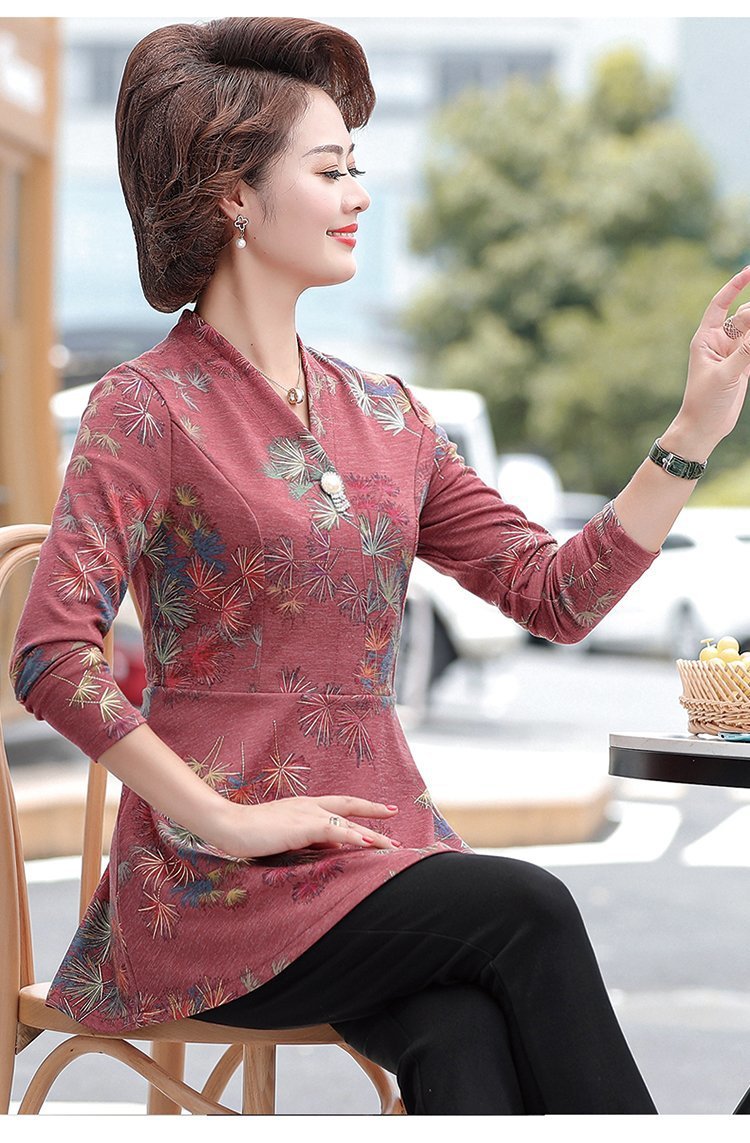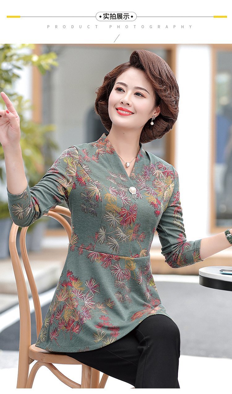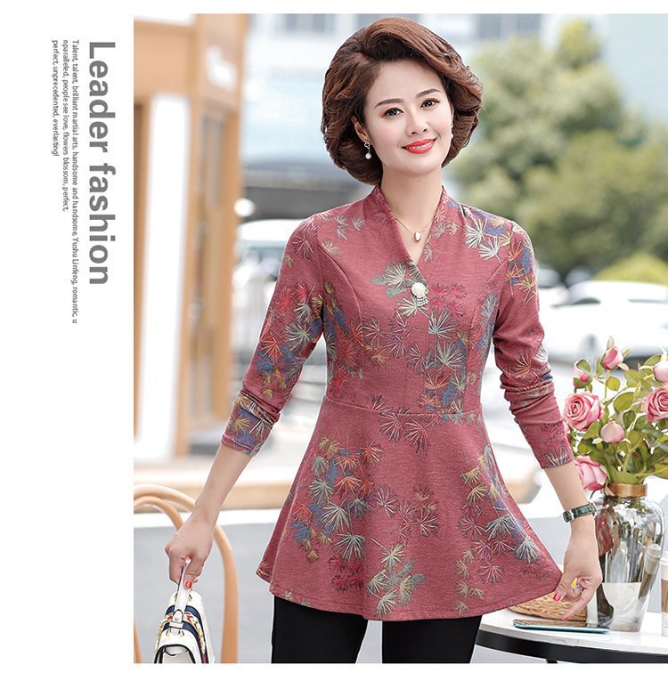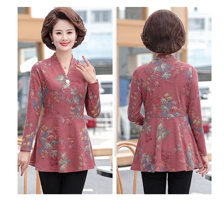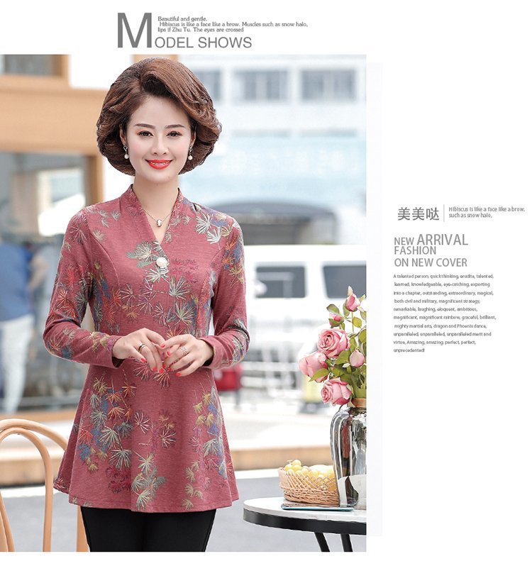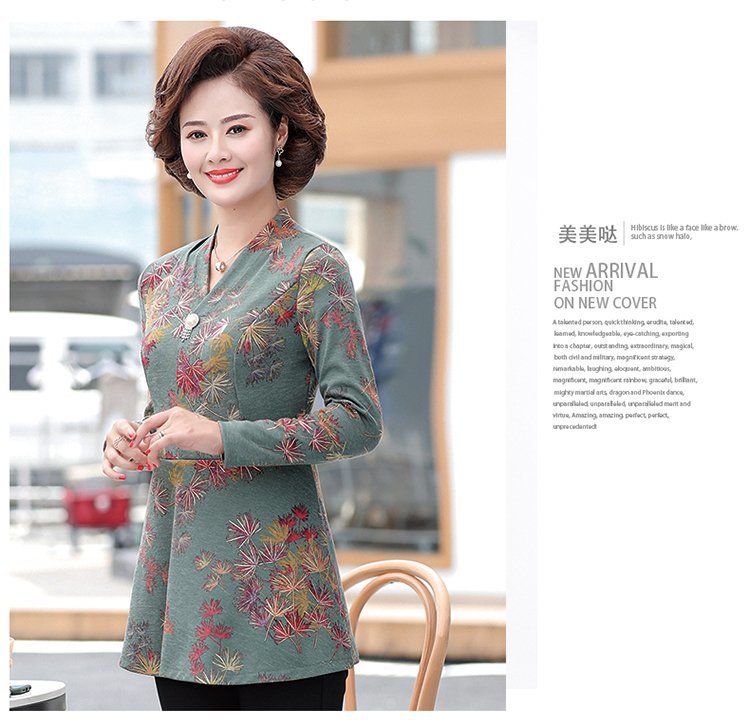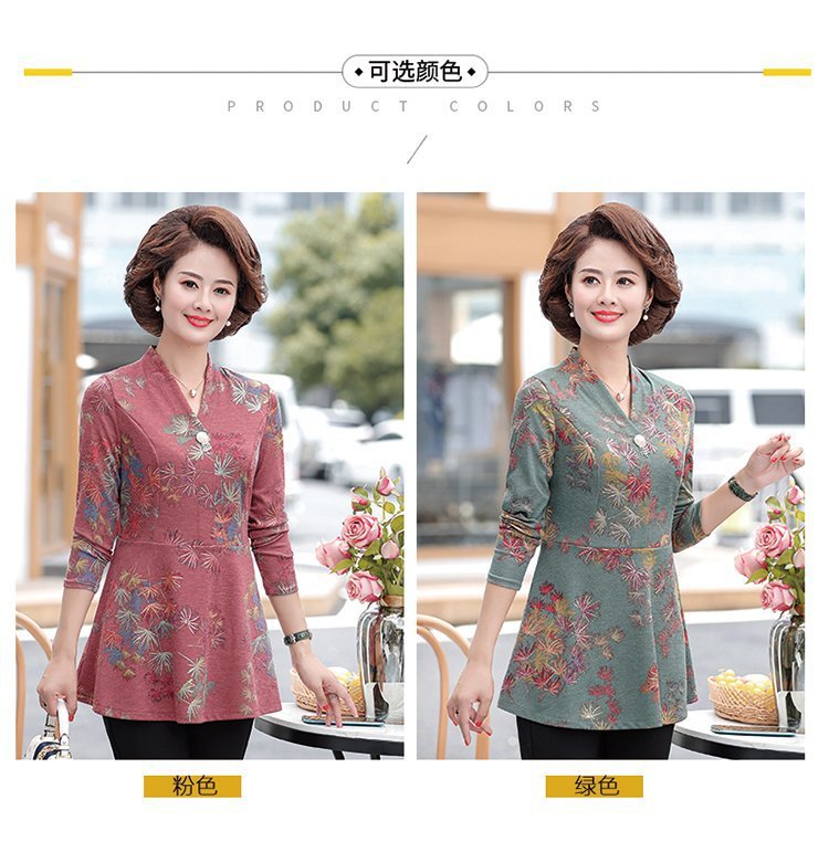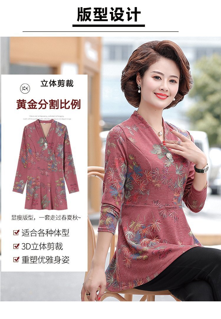 MM-BH26140中老年女装春秋新品T恤洋气中年妈妈宽松大码打底衫韩版显瘦上衣