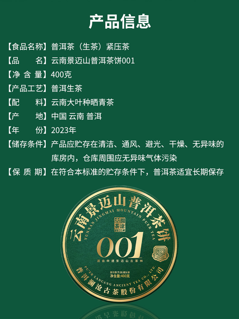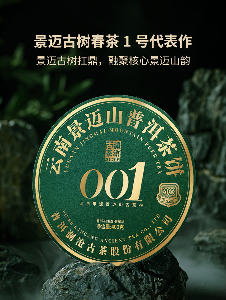澜沧古茶2023年001景迈古树茶普洱茶生茶七子饼茶叶400g